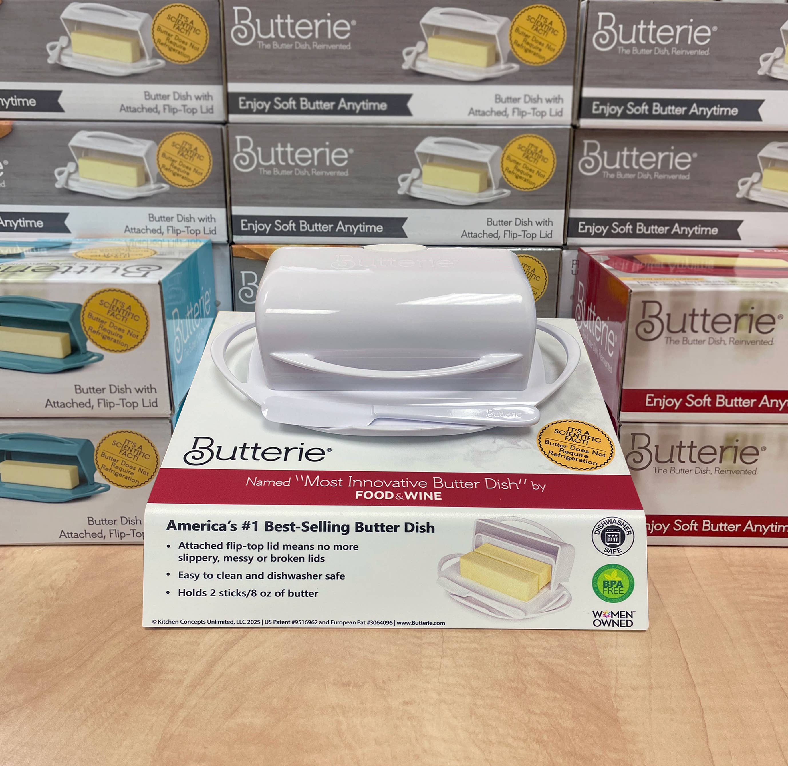 My name is Joelle and I’m the inventor of Butterie, the flip-top butter dish. Growing up in Los Angeles, I always thought butter needed to be refrigerated. But several years ago, after accidentally leaving the butter out overnight, I realized it was so much better at room temperature. It was soft, easy to spread, and tasted delicious. However, once I decided to keep my butter on the counter, I started using a butter dish and I quickly determined they're an unacceptable mess. Butter on the lid, butter on my counter, butter on my hands, butter smooshed in the dish, and I thought, "a simple flip-top lid would solve all these problems.” Although I'd never manufactured anything before, I was determined to reinvent the butter dish. And today I am proud to report that Butterie has become America’s #1 best-selling butter dish. Butterie has won multiple awards, including “Most Innovative Butter Dish” by Food & Wine Magazine, “Most Practical Butter Dish” by Serious Eats and “Best Overall Butter Container’ by America’s Test Kitchen. Since the highly successful launch of our famous flip-top butter dish, I've created a variety of unique, problem-solving kitchen products, including an oil dispenser the controls the flow of oil with absolute precision, a tub butter knife, and a handy silicone spatula. Butterie's gorgeous color-coded packaging is easy to merchandise and makes a wonderful gift. Add the Butterie family of product to your store and watch them fly off the shelf!