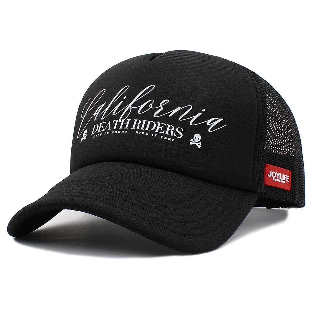 Sunset at Venice Beach, California. The sun sets over the palm trees on the horizon as the sky turns reddish. A group of young people walks along the promenade. Their blonde hair bleached by salt and sun, their feet covered in sand. They head with their surfboards towards a van while enjoying the unique feeling of having a fresh fruit juice after a long day in the sun. A smile on their lips. Their laughter echoes... Welcome to Joylife! Joylife Company © American inspired caps