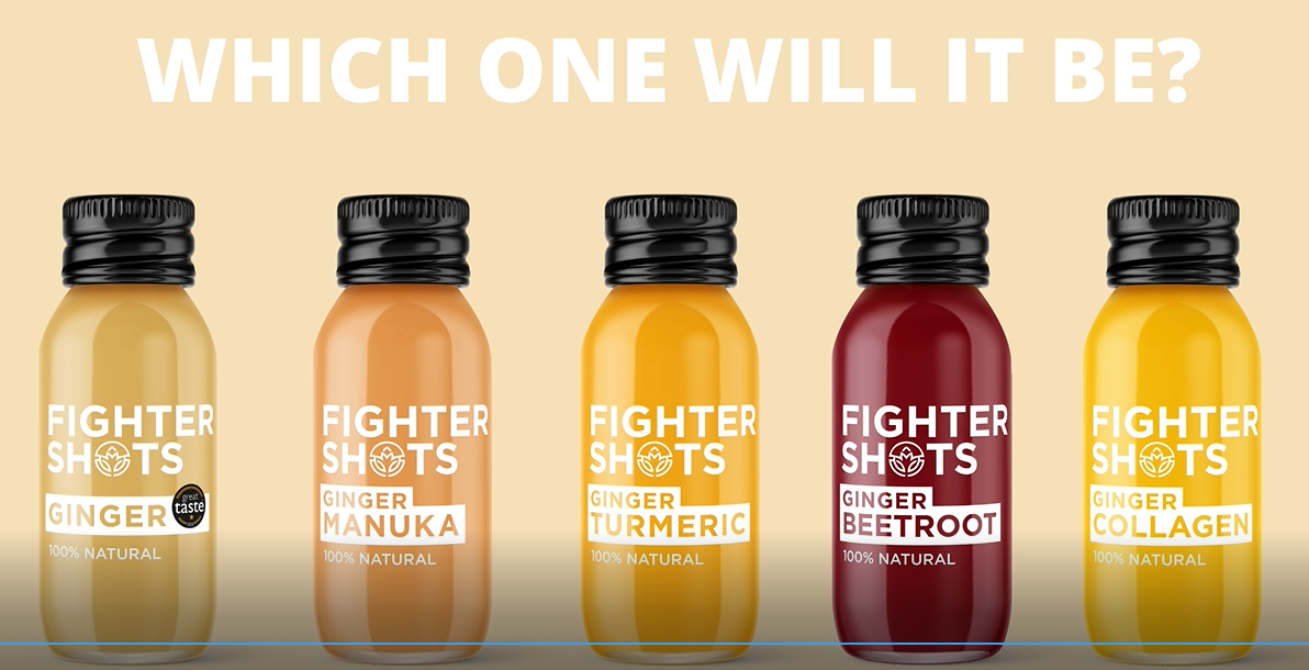 About Fighter Shots We are a UK based brand, with wellness drinks designed to give consumers the boost they’re craving. As winners of the 2020 and 2022 Great Taste Awards, we deliver a delicious range of products designed to boost immunity, reduce fatigue, and promote skin and joint health. We choose the highest quality ingredients. Our Peruvian ginger and turmeric come from organic producers and our pure and Manuka honeys are proudly supplied by Hilltop Honey. We use glass bottles and aluminium caps to ensure no harmful chemicals leach into our drinks. We are based in London, and our production takes place in several factories across the UK and Poland. Take one shot whenever it suits your schedule and feel the incredible health benefits throughout the day. Because health doesn’t have to be complicated.