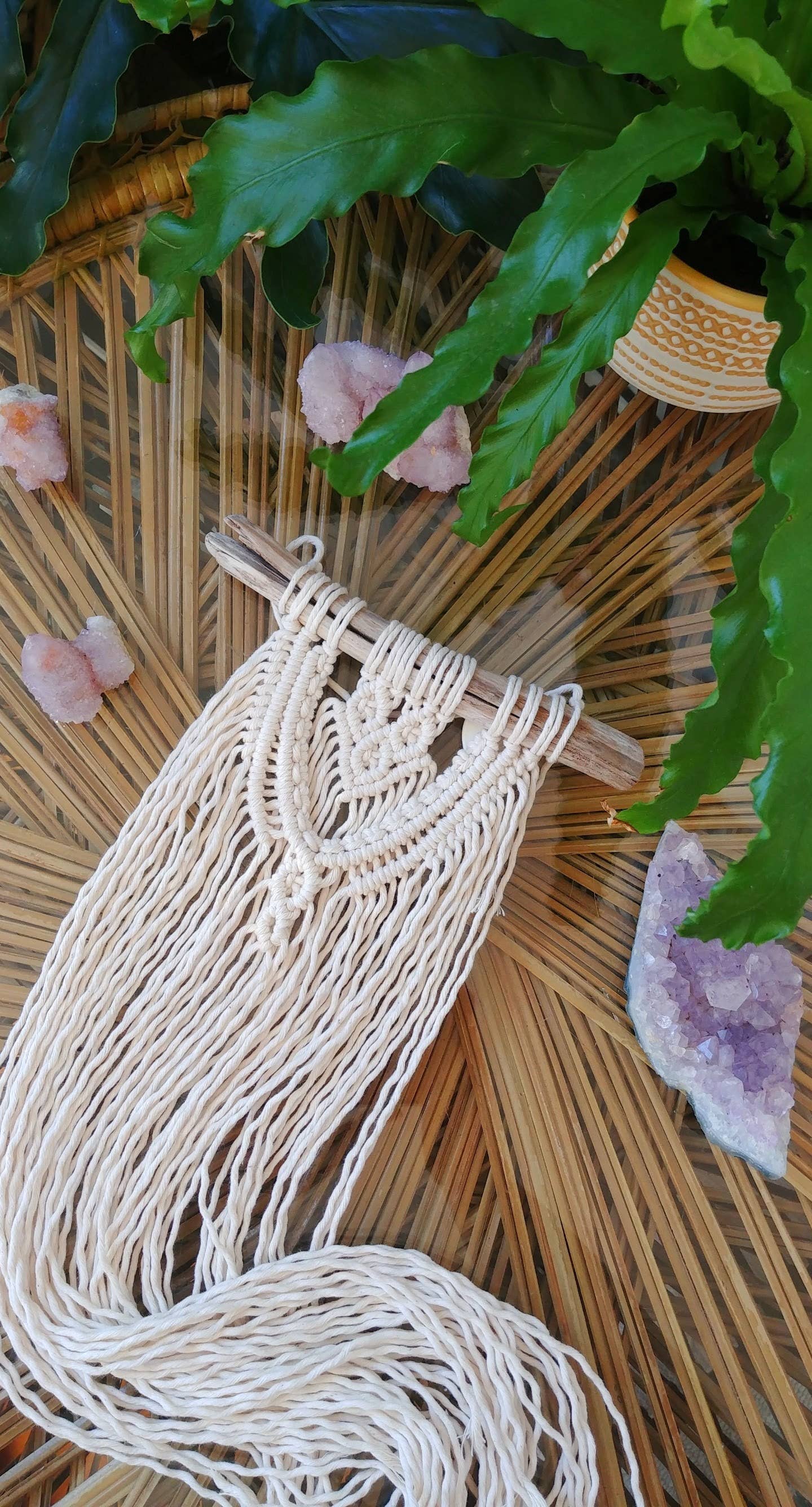 The name "Terra & Twine" is a direct representation of the art that I produce, the name stemming from the materials themselves: earth & fiber. Inspired by an intense passion to create and an insatiable love for sharing, I decided partner with small shops in local communities to share my work and host DIY courses. Distance may hinder my ability to physically drop off your order or host a workshop together but with these positively charged textiles adorning your shop walls, I will be there in spirit - cheering you on everyday! Packing supplies are all re-usable or compostable. Lead time is approximately 3-5 weeks depending on the size of your order.