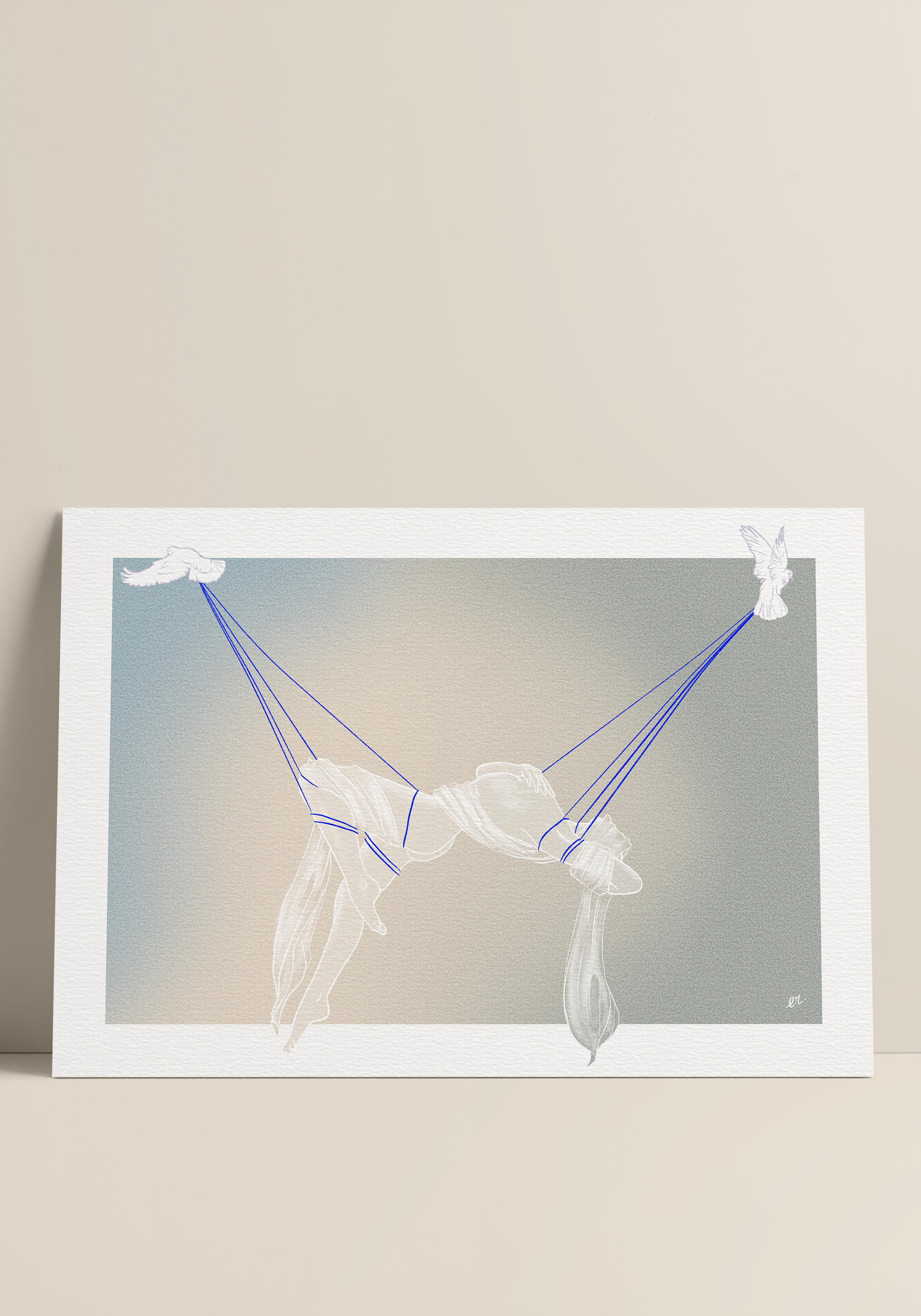 Sweetness and poetry perfectly describe the bucolic universe of the illustrator Édouard Rowehy from Lille. Her artistic creations, which carry dreams, are designed with finesse. Discover its unique universe. Using the Procreate software and his graphics tablet, he takes great pleasure in recreating, digitally, more traditional artistic effects. He strives to digitally reproduce pencil lines, watercolor washes and brush strokes that imitate painting, for example. He is inspired by matter, flowers, nature and especially the body. His illustrations are revealed in a palette of muted tones enhanced by notes of vibrant colors. Life is the central element that guides all his pictorial poems. In his illustrations, Édouard Rowehy describes the movement of the body in their immobility through statuesque beings that he nicknamed “stone souls.” For ecological and responsible reasons, all his illustrations are printed in mainland Lille and on demand on premium French paper. Through his sense of detail and his search for optimal rendering, he pays great attention to print quality.