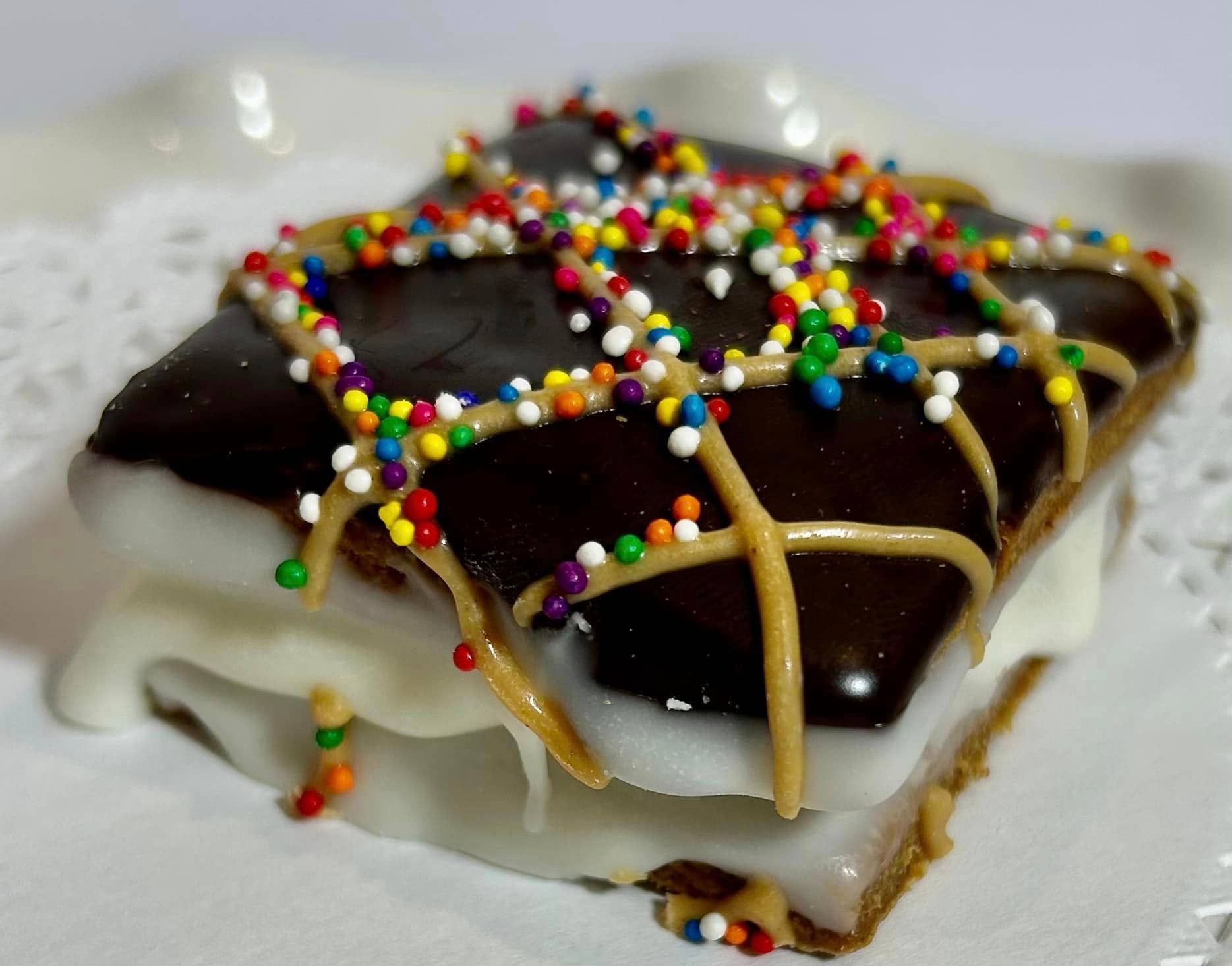 Delco Dog Company simply loves what we do!!! We love our dog, and we love making dog treats. Seeing a dog's tail wag for our treats is like making a person smile. WE LOVE IT! We are located in Delaware County, (DELCO) PA. Our handmade treats are made in small batches with all natural human grade ingredients. If we can't eat it, we don't feed it to our dog, and you shouldn't either! Our treats have no preservatives and are hand dipped. We take pride in our treats and look over every treat before packing and shipping. GOT TREATS? Let's get those tails wagging with some DELCO DOG TREATS!!! Some facts about our treats: Shelf life: Our designer treats have a shelf life 12 6+months Storage: Keep dog treats out of direct sunlight and keep no greater than 72 degrees. (Treat them like a human donut). If you leave them in a heated car they will melt! Ingredients: All natural human grade ingredients. Each case of treats will be labeled with ingredients. There won't be a word you can't understand because they are ALL NATURAL!