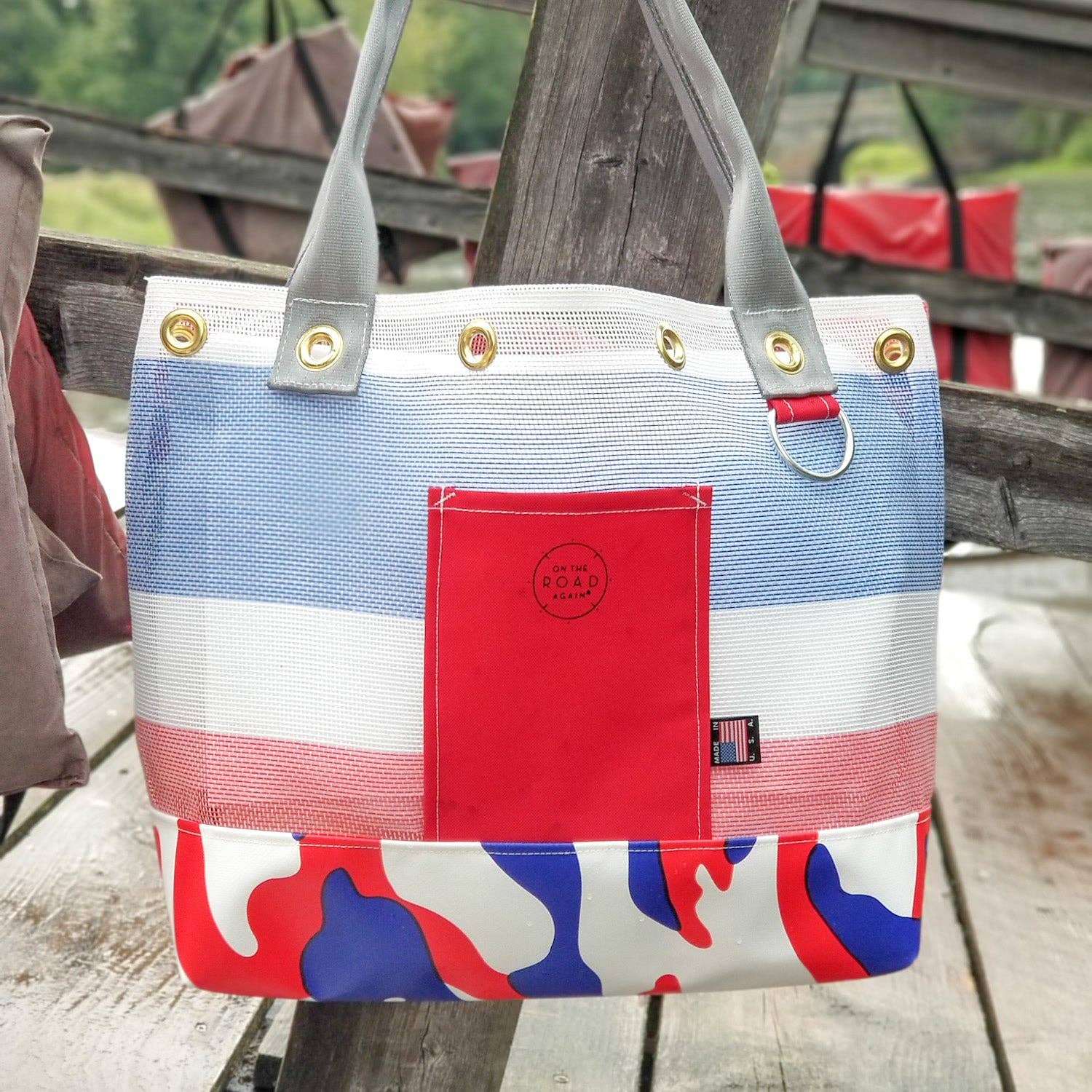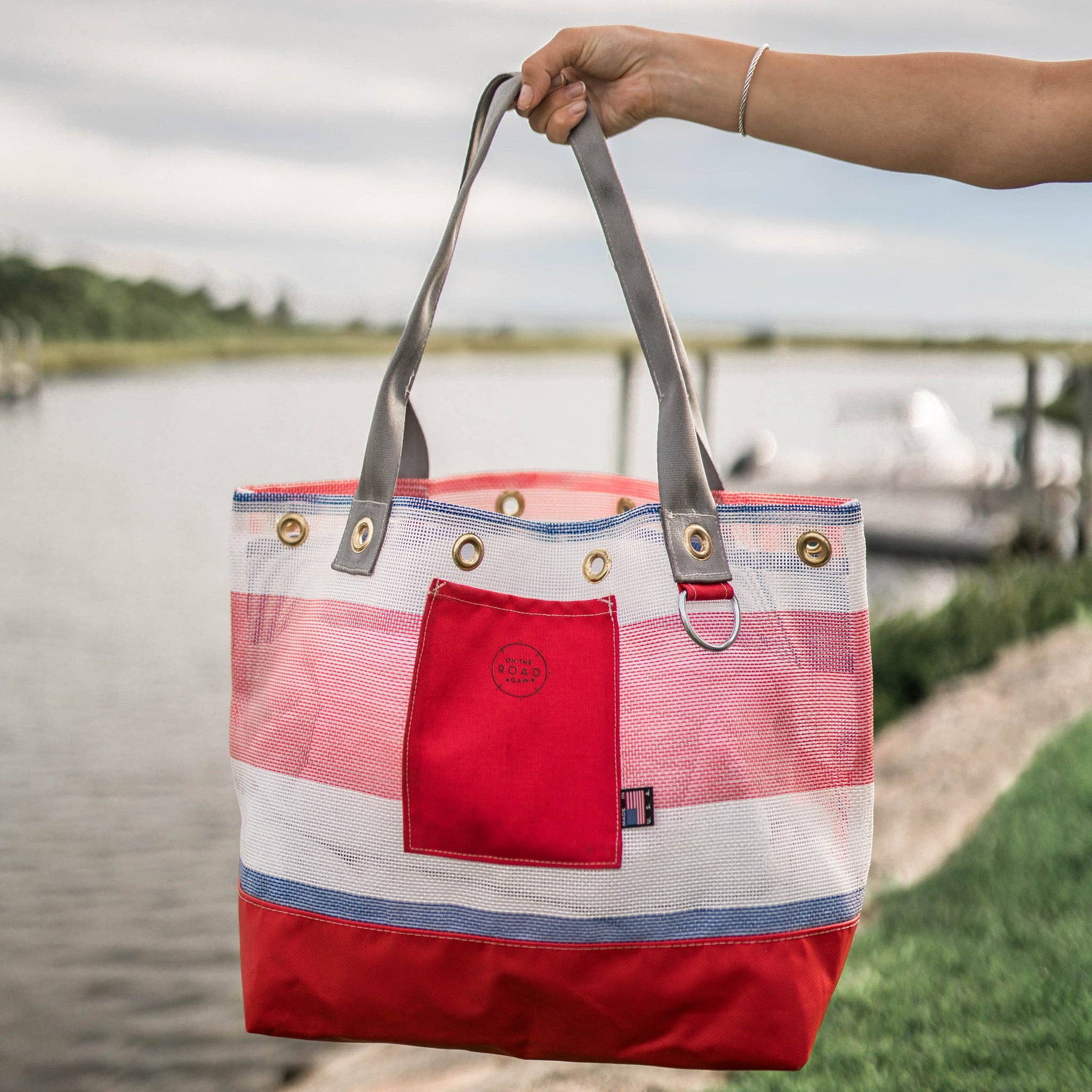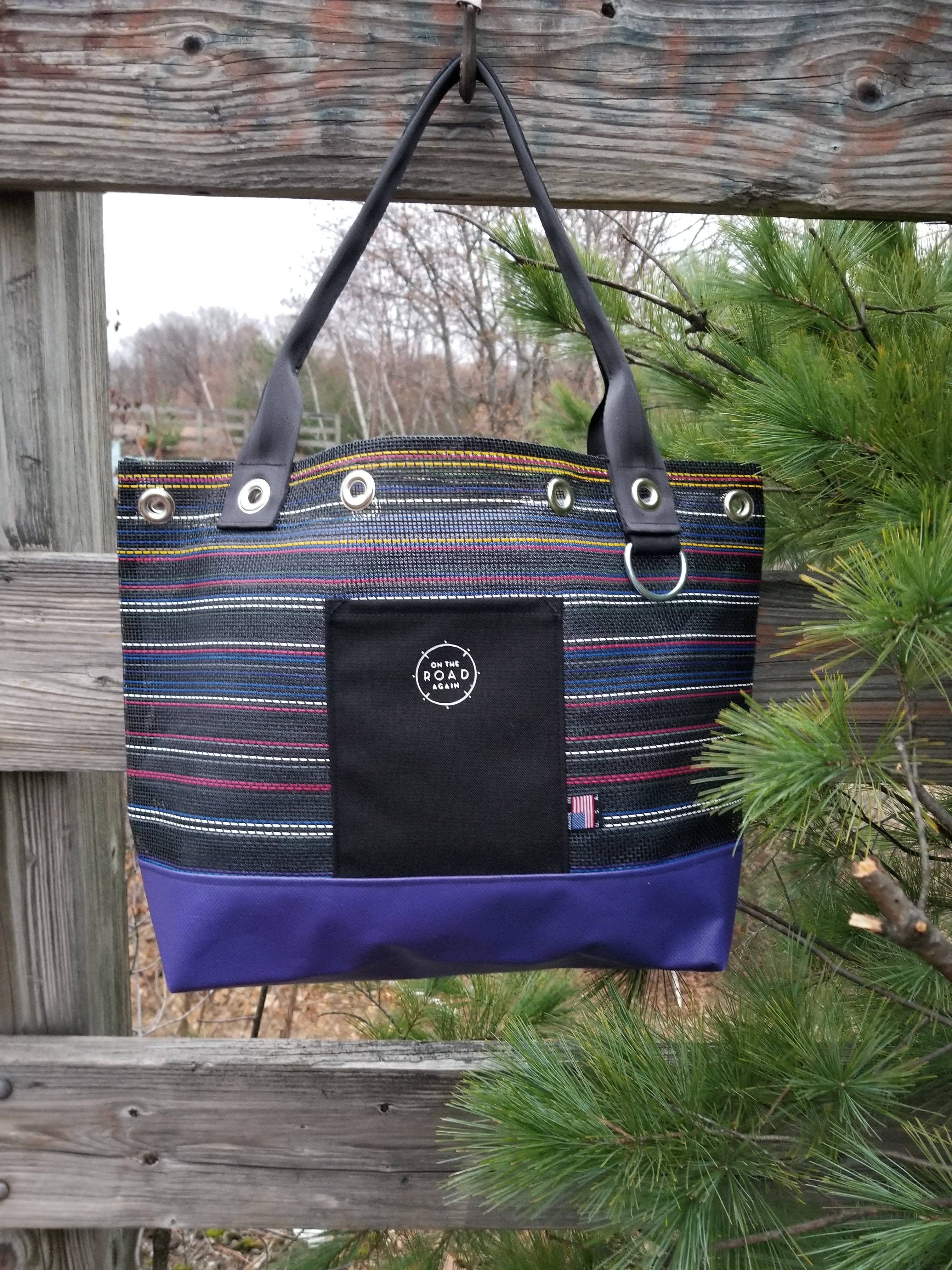 Our Mission On the Road Again minimizes waste going into our landfills by upcycling remnant materials into handcrafted goods. Our durable tote bags and home goods are fashionably upcycled in the USA. Handmade Goods Re/Designed for Adventure™ in Massachusetts. On the Road Again™ is a Registered Trademark. Upcycled On the Road Again began with a desire to eliminate waste in our landfills. We partner with other USA makers to turn remnant materials into handcrafted totes, handbags, and home goods that are Re/Designed for Adventure™. Limited Edition All of our goods are fashionably upcycled and one of a kind. Our bags are handcrafted from remnant mesh, fabrics, and marine grade vinyl, making each item unique in its patterns and colorways. Handcrafted in and Inspired By New England When our founder Mary Dimouro was a child, she enjoyed crafting items from the fabric scraps leftover from her mother’s business as a seamstress. Today, she is a proud part of the makers movement in New England. She handcrafts all On the Road Again bags in her studio in Massachusetts. Durable & Water-Resistant Always ready for your next adventure, our carryall bags are made from strong, durable mesh. On the Road Again bags are also water-resistant and washable - just rinse and air dry!