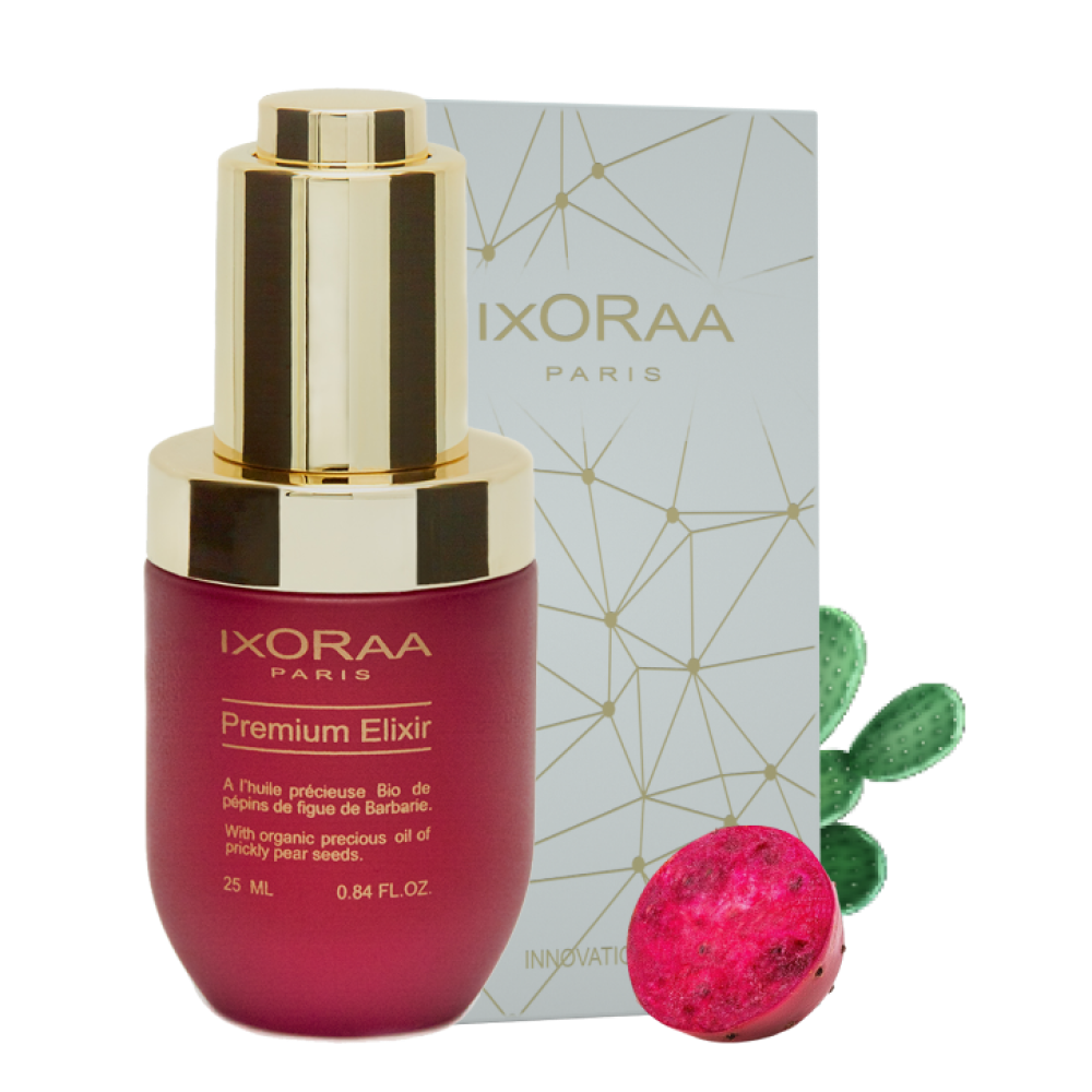 IXORAA Paris is a unique brand. It draws its authenticity from its Mediterranean origin combined with French know-how. We create a line of 100% natural, high-quality facial care products from organic ingredients, as part of a fair and ecological harvest. We believe in the continuity of ancestral know-how, generating beauty and well-being by using technologies and methods that respect the environment. For Berber women, American Indians or Aztec populations, the prickly pear has always aroused great interest. The oil from its seeds is now recognized as a powerful anti-aging ally. Applied to the skin, it offers a lifting effect coupled with protection against free radicals that fight against sagging skin. It is also known for its moisturizing and firming action. This rare oil diffuses into the heart of the epidermis, releasing its regenerating active ingredients and its subtle floral scent. Its richness in vitamin E, Omega 6 and 9, and sterols makes it a UNIQUE natural care product recognized throughout the world. The facial structure is firmed and redesigned. Plumped and intensely revitalized skin regains its radiance, vitality, and youth.