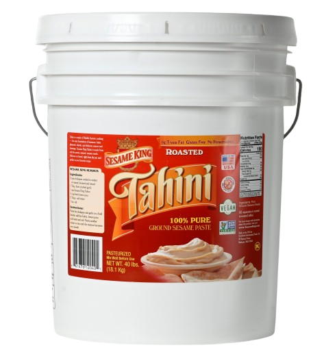 About Sesame King Tahini Sesame King Tahini prides itself on being a leading on being a leading brand and purveyor of premium quality sesame tahini. Of utmost importance is supporting our U.S. farmers by purchasing their finest sesame seed to make our Sesame King Tahini. Made with 100% pure ground sesame seeds, we roast and ground it to perfection in our own production facility located in Methuen Massachusetts. Our Tahini is the only pasteurized one made in the U.S. that is all natural, made with no additives or preservatives. Another wonderful note is that it is also peanut and tree nut free, trans fat and gluten free as well. Sesame King is OK Kosher Certified, Non-GMO Verified, 100% Vegan and lab tested to ensure a clean and great tasting product. We can assure you that you won’t shop anywhere else once you’ve tried our Sesame King Tahini. Won’t you try it today?