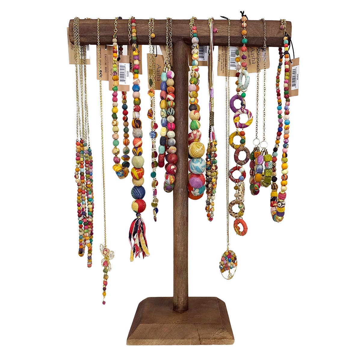 Anju Jewelry is a 100% sustainable jewelry brand committed to creating hope for artisans and their families through economic empowerment. All of our pieces are hand-crafted in India using traditional techniques. The roots of Anju Jewelry began in 1993 when India natives Anju & Gaurav Agarwal decided to invest in their future and move to America. While Gaurav spent his days working on his PH.D., Anju began designing and making jewelry to sell at local craft fairs. As her jewelry sales started to take off, Gaurav decided to quit his job and focus all of his attention on growing Anju's jewelry business. Business continued to grow and on a trip back home to India, they met a talented, but struggling group of artisans that could not keep consistent work. It was then, that Anju and Gaurav decided to partner with this artisan group and move manufacturing to India where they knew they could provide them with consistent work. We are happy to confirm that more than 9 years later, we are still working with this very same artisan group and over the years the quality of life for these workers has improved significantly. 100% Handcrafted Pewter, Mixed Metal, and Silver-plated Jewelry. Chokers, leather bracelets, rings, and jewelry crafted from re-purposed saris. Hand-carved block printed cotton bags with natural dyes. Ethically sourced horn jewelry.
