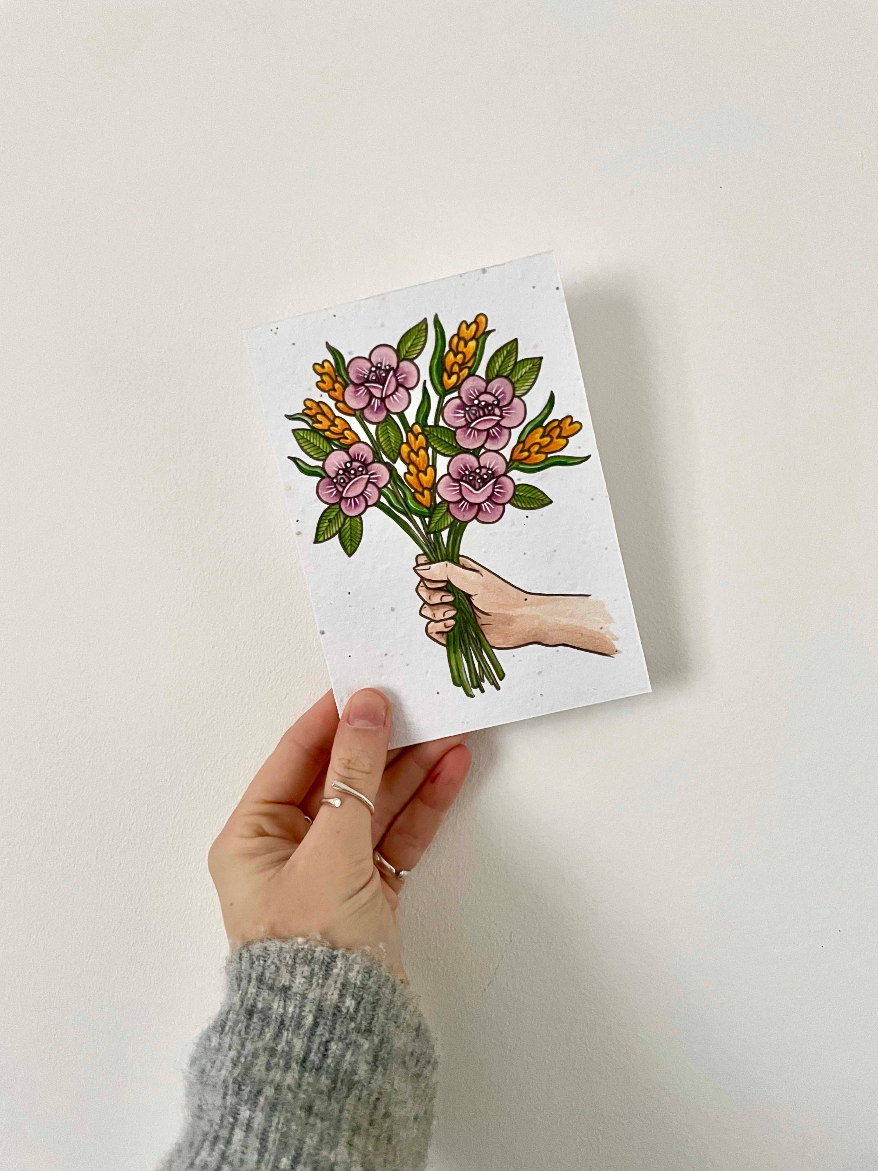 Hi, I am Ashleigh Lian, the maker behind The Flower Girl Studios, based in Bristol, UK. I am on a mission to make gifting a little more sustainable and always creating with this in mind. I mainly make plantable seed cards, 100% recycled and then embedded with a bee friendly range of wildflower seeds for planting after use. It's a little alternative to the mass produced cards that would simply end up in the recycle bin, giving a little something back to the planet instead. This thinking has also spilled over into some of my other makes, using the same seed paper in my organisers, list pads and planners. My designs and art styles are quite varied, with my three focus areas being bold tattoo style illustrations, intricately detailed lino prints and brightly coloured flowery fruity patterns. I used to tattoo for 6 years until anxiety got the better of me, so a lot of my inspiration comes from that past, along with my love of nature and everything outdoors. Always happy to answer any questions, queries or just have a chat!