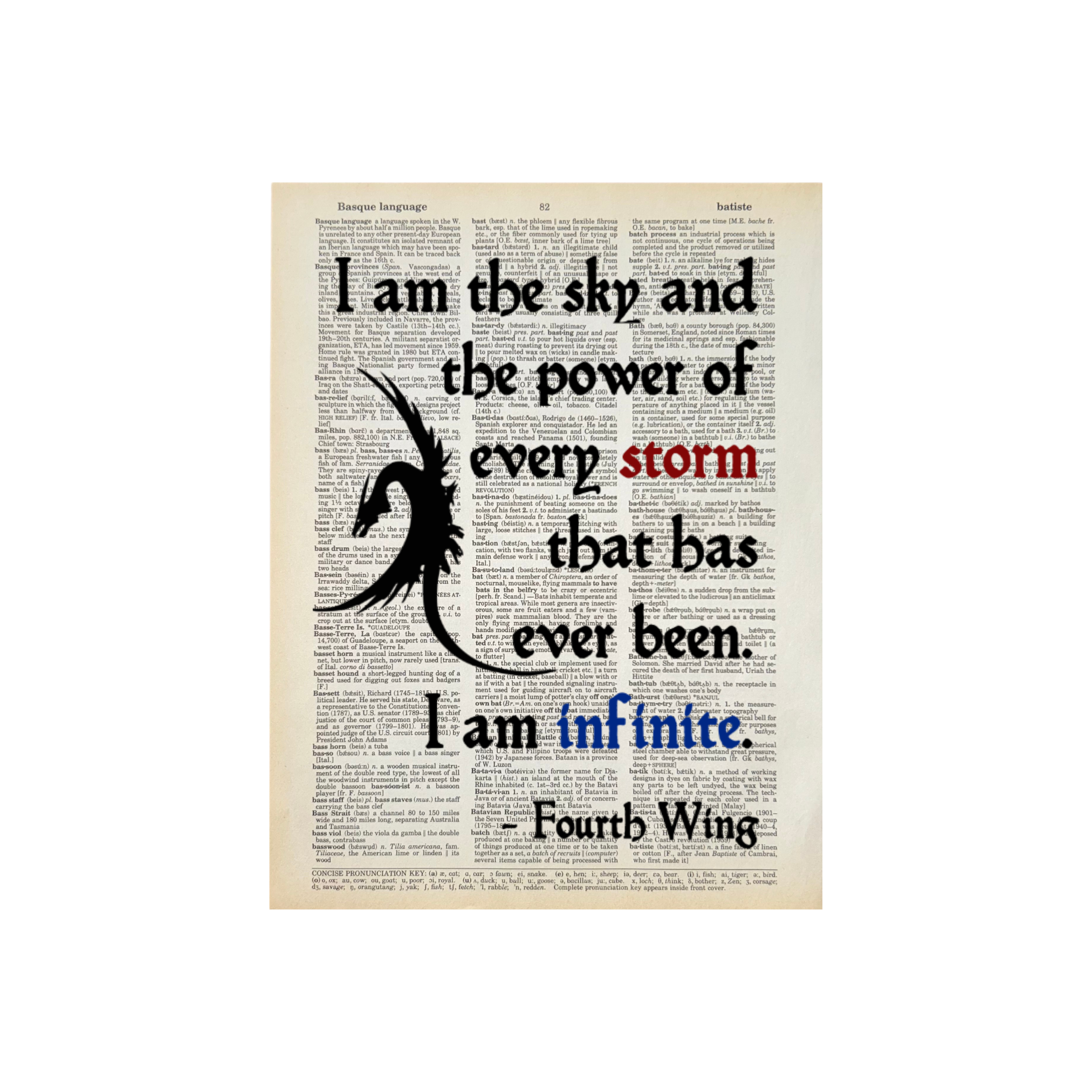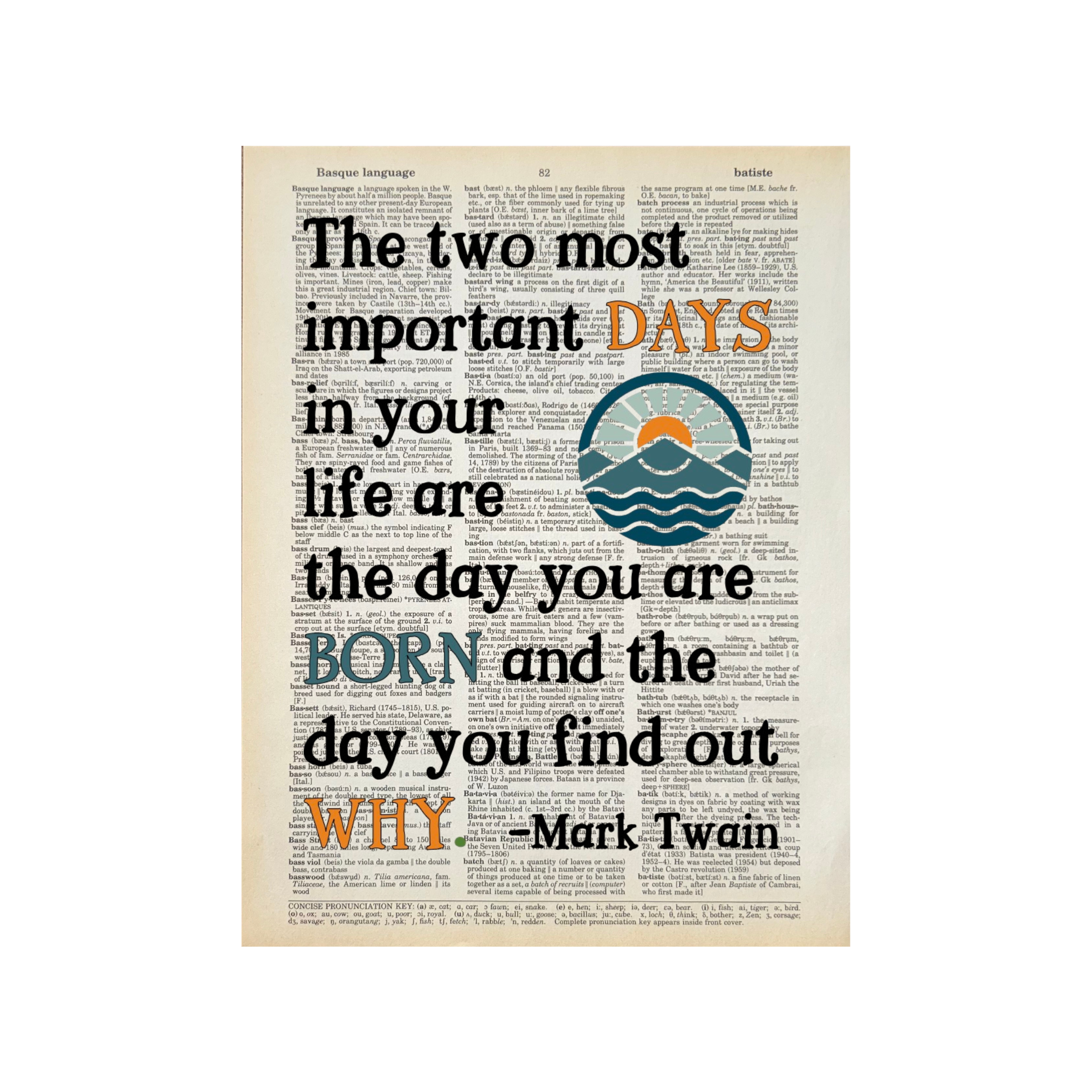 Diana and Roz (the owners of Bookish Birds) have been best friends since college and are serious book lovers. We repurpose old books (mostly dictionaries) into page art and sell them across the country to bookstores and gift shops. We are happy to work with stores to create custom pages for your spaces and customers. Just reach out. For all Bookish Birds Prints: - Quotes are printed on real dictionary pages, so no two pages are exactly alike. - Patinas will vary across pages because each dictionary has slightly different coloration. - Pages are printed on random dictionary pages so the print will not necessarily be on the exact page from the picture. - Frame not included. - Pages come in sealed sleeves with cardboard backer. We can leave them unsealed upon request. - Pages frame up beautifully. Dictionary page size is roughly 8.25"x10.75" - No minimum purchase. - Free shipping on orders of $250 or more