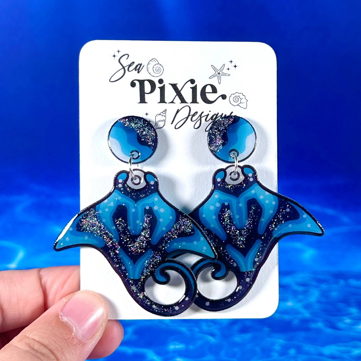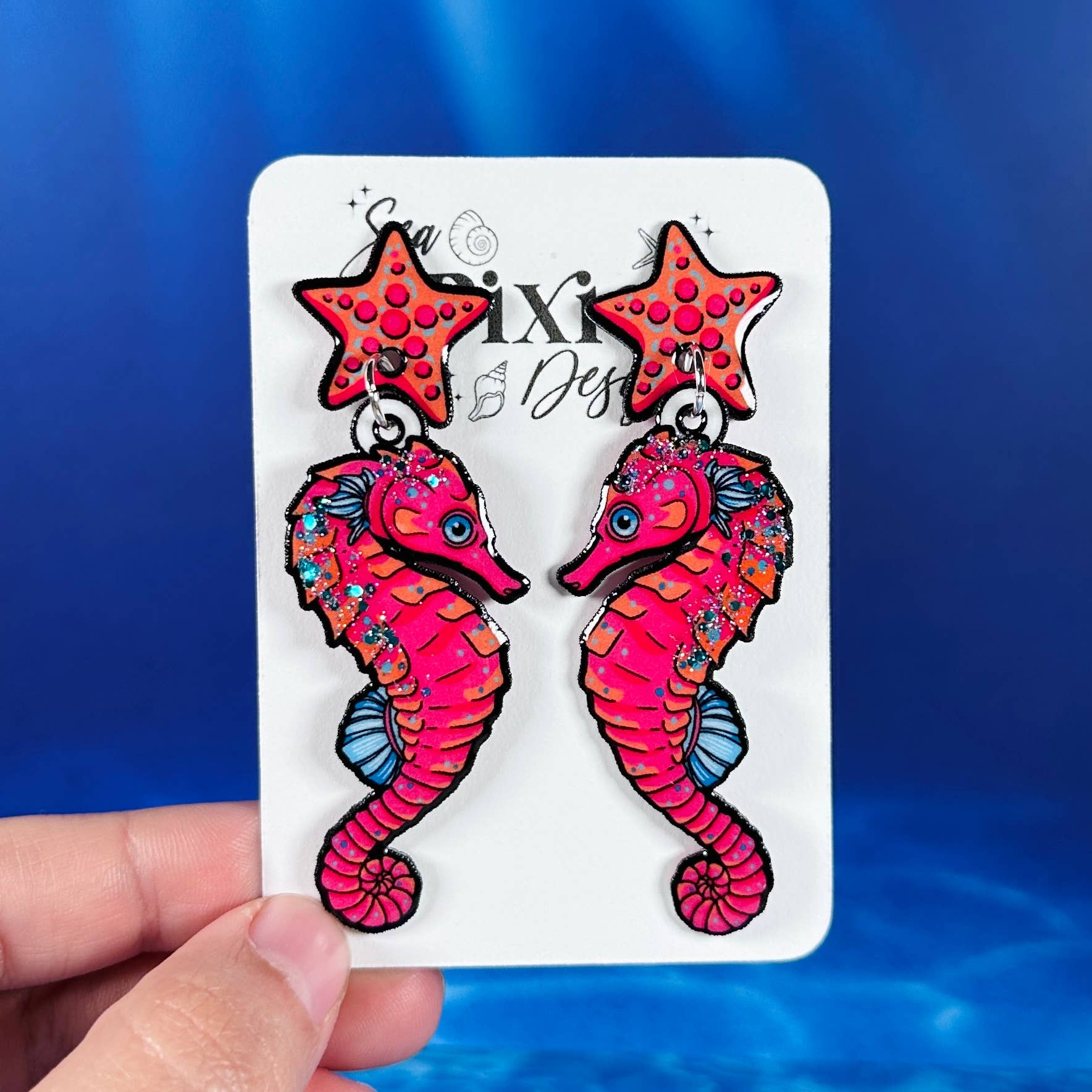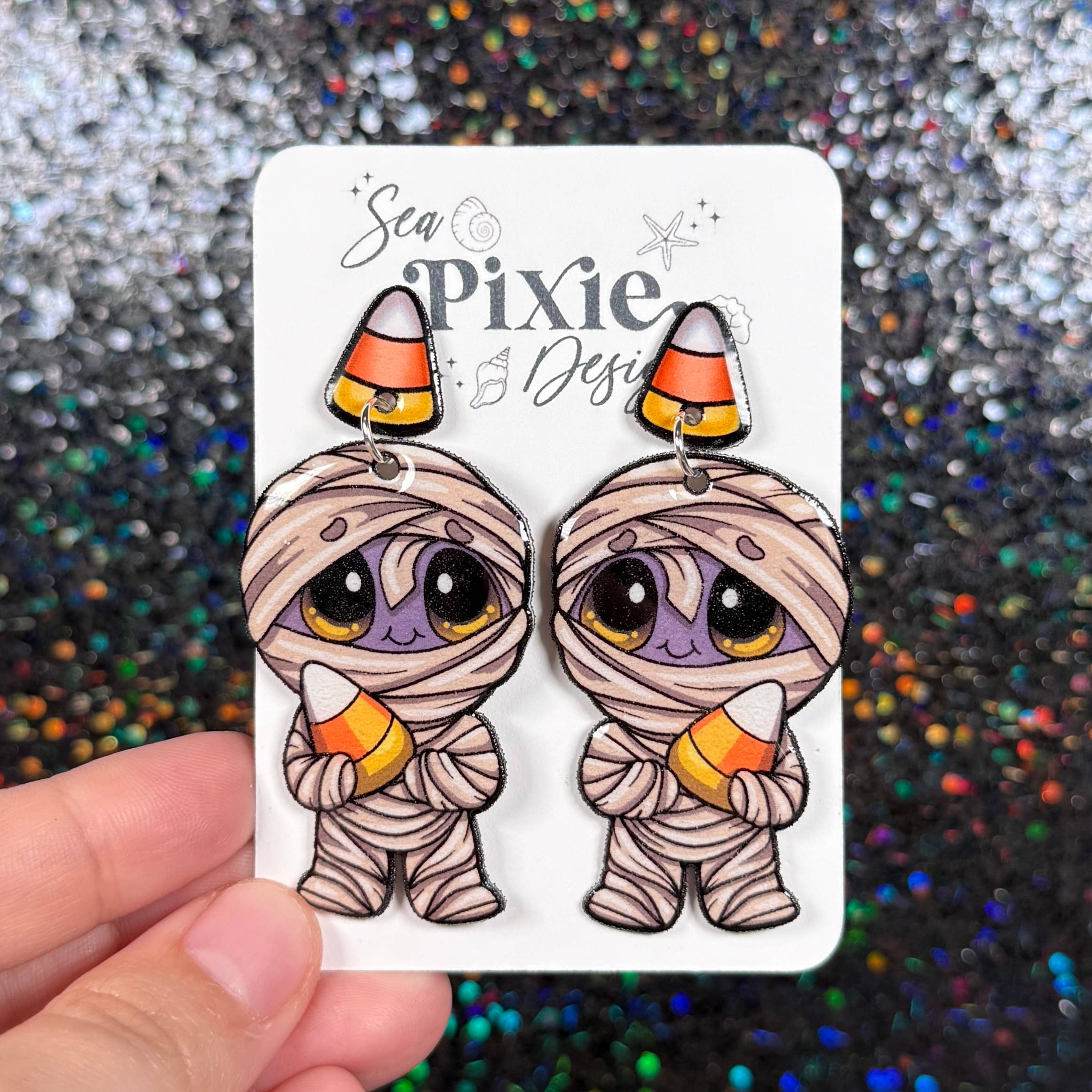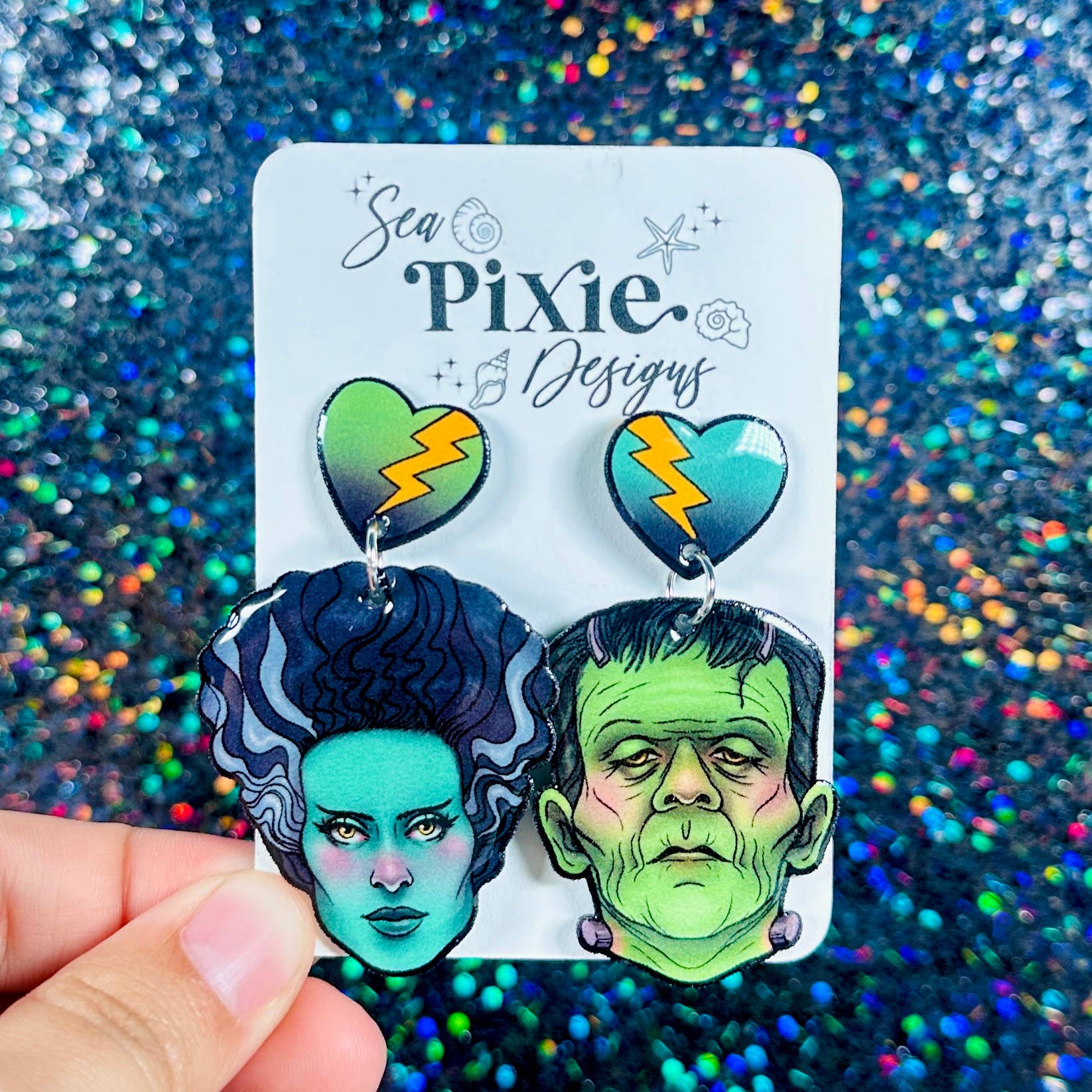Sea Pixie Designs is a brand that focuses on original artwork and celebrates unique, whimsical, and statement jewerly. Sea Pixie Designs was founded by an artist and former high school teacher, who wanted to create wearable artwork which showcased her illustrations. Each pair of earrings features hand-drawn illustrations and are handcrafted with care and attention to detail. Each earring pair is a statement, with bold color, glitter, and unique designs, while still remaining lightweight for sensitive ears. Sea Pixie Designs also offers pins and stickers of these unique illustration designs.