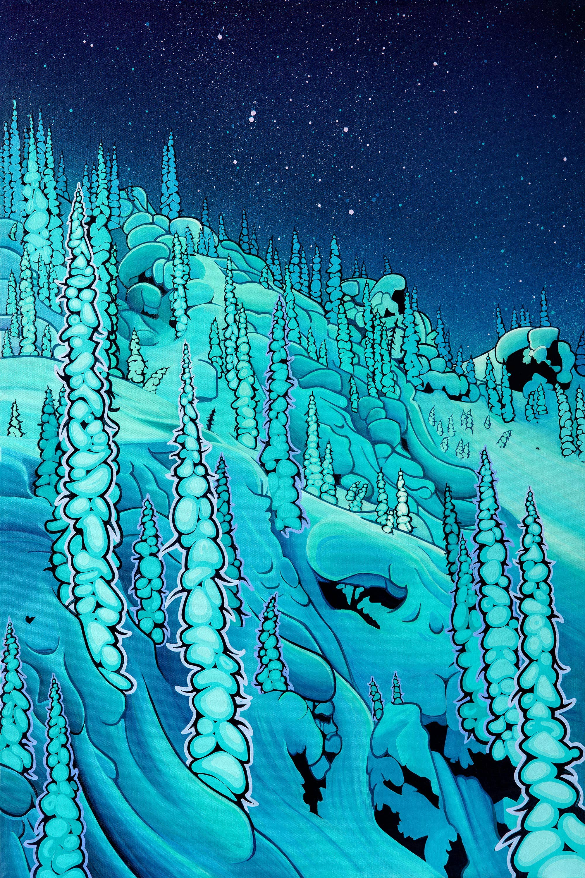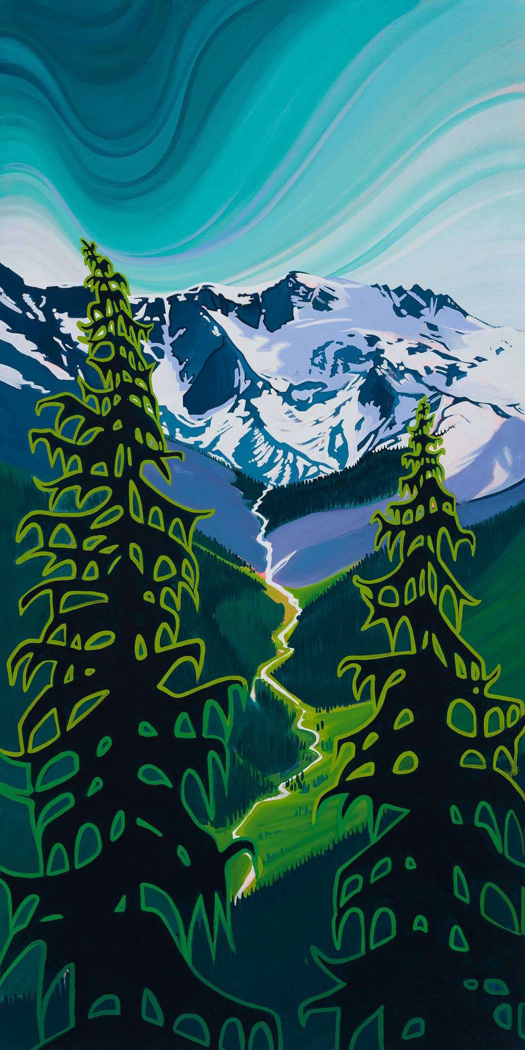 Originally from Southern Ontario, Hayley studied Fine Art at the Ontario College of Art and Design. Upon completed her degree in 2008 she travelled west, lured first by the ocean to Tofino and later by the mountains to British Columbia’s interior. Currently based between Revelstoke, BC and Baja California Surf, MX, Hayley is still immersed in mountain & surf culture. Experiencing the sublimity of nature and participating in the mind-expanding activities that engage the body and free the mind are the foundation of her work. Her most recently paintings - vivid atypical landscapes - highlight nature’s intricacies with a bold palette, smooth colour blending and concise brushstrokes. Painting allows Hayley to leap the barriers of language and share the abundance of inspiration she feels when immersed in nature. The mountains & ocean are her continuing education.