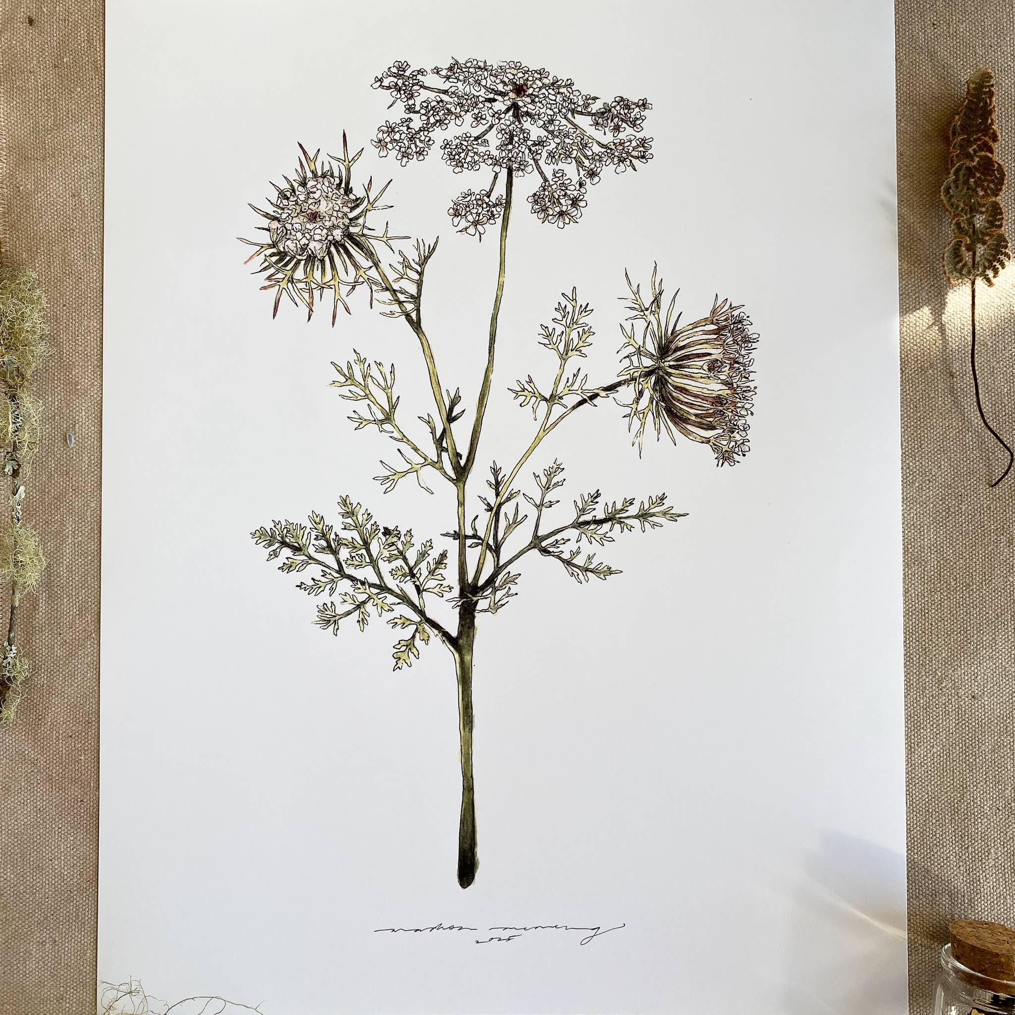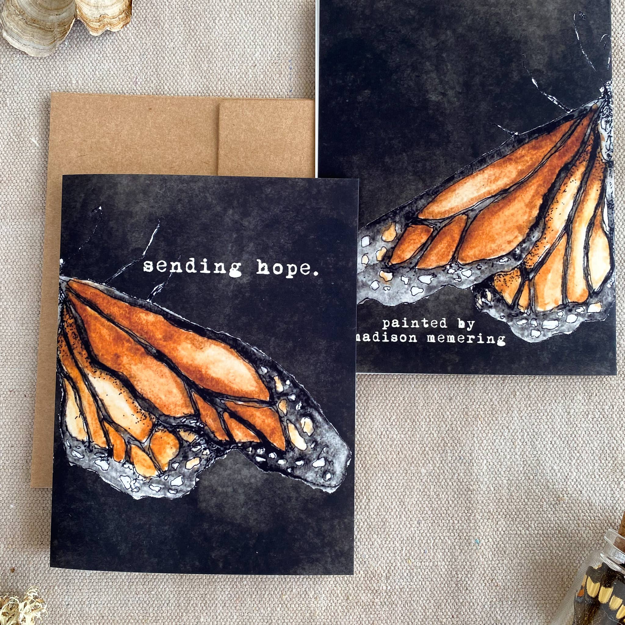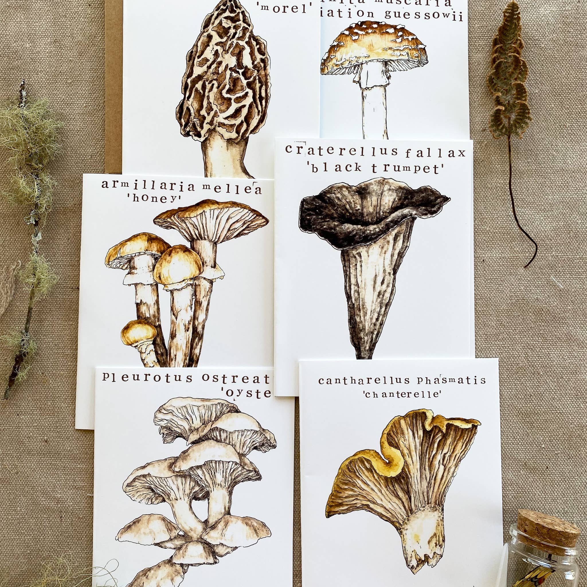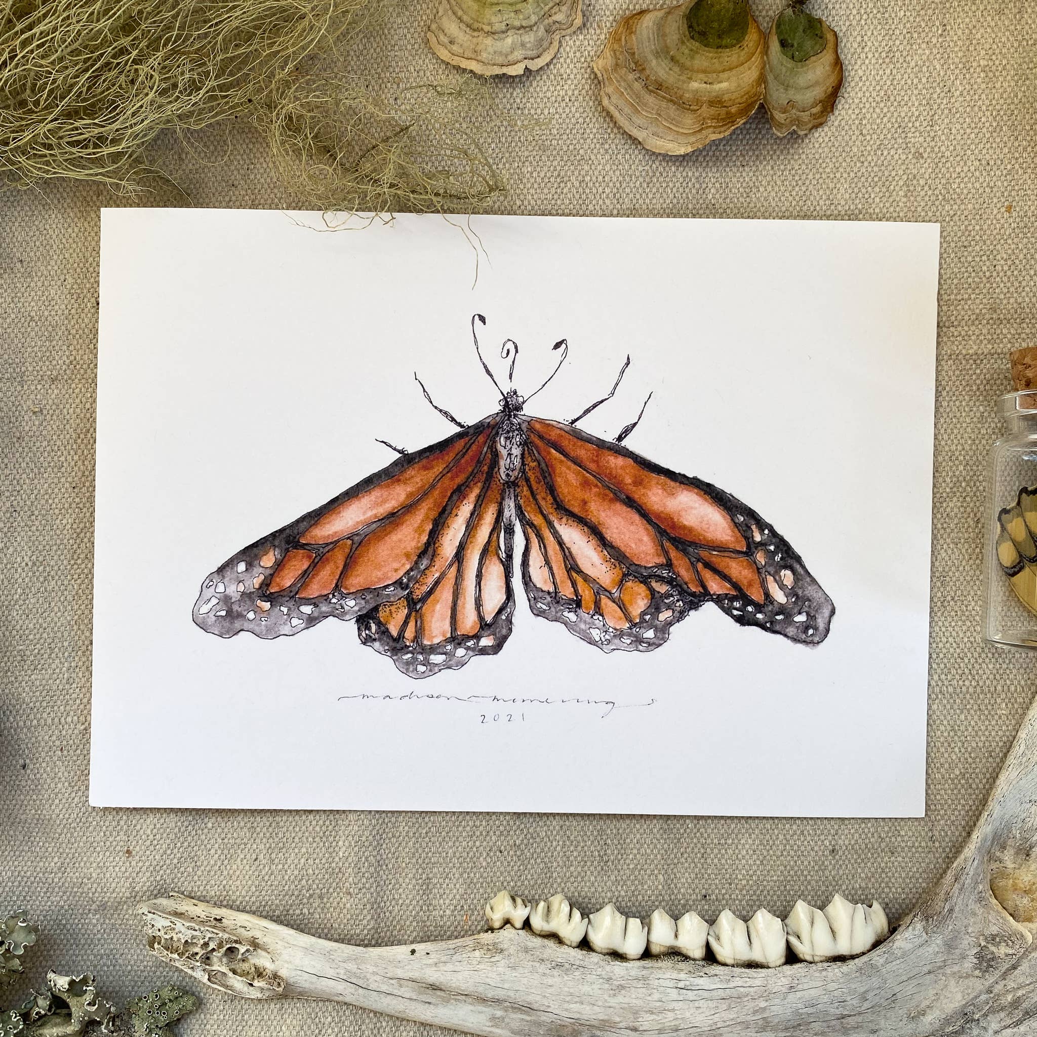 Madison Memering is a nature inspired artist whose focus is to pay tribute to the local funga, flora, & lepidoptera through delicate observational studies painted in watercolor. She studies, illustrates & paints the beautiful mushrooms, plants & various insects that she stumbles on while hiking & foraging in Michigan nature. This admiration deepens the love for the outdoors & possibly each other; the artist hopes her work sparks education & inspiration to strengthen our connection to & conservation of the magical outdoors. View more of my artistic process on Instagram & TikTok: @mamemering.