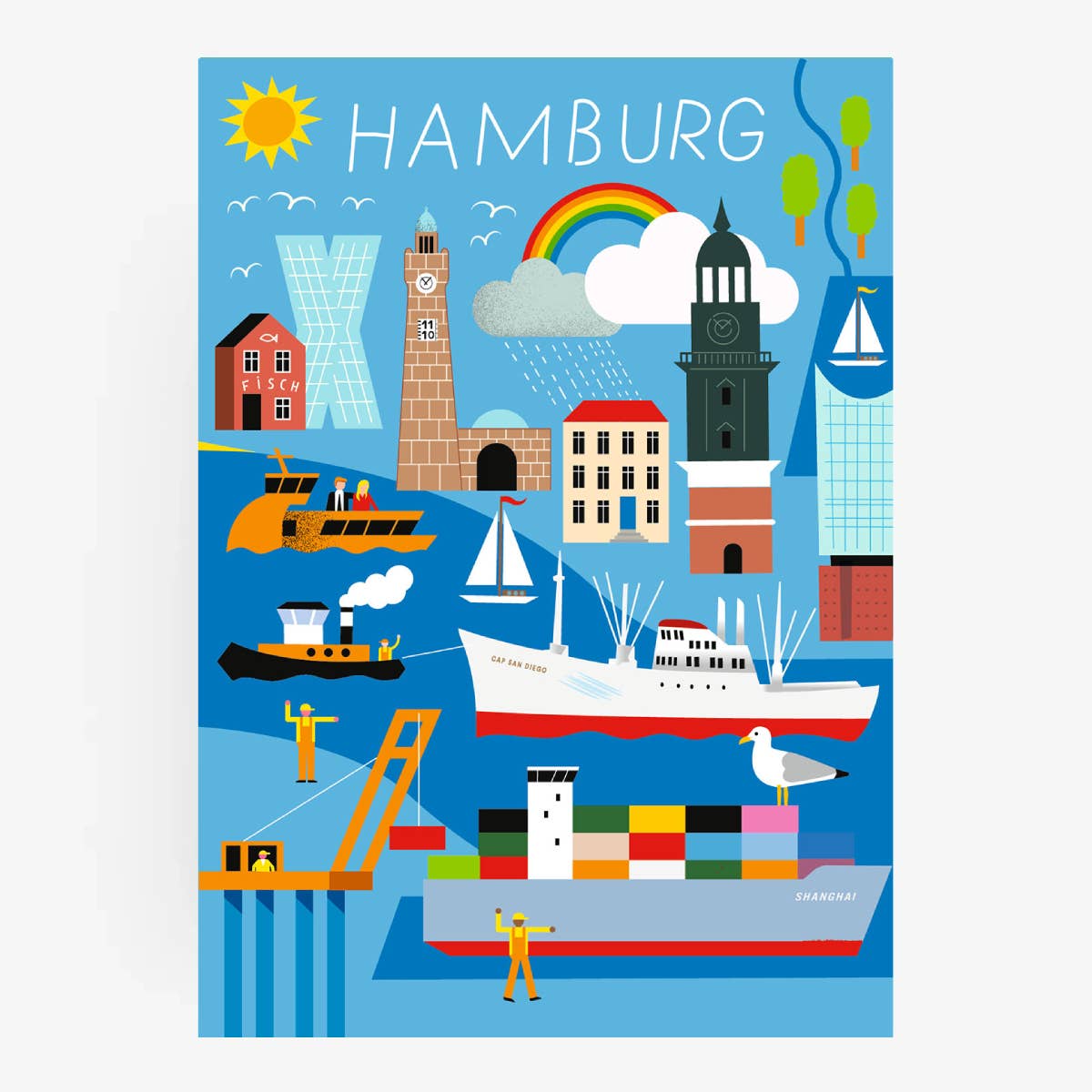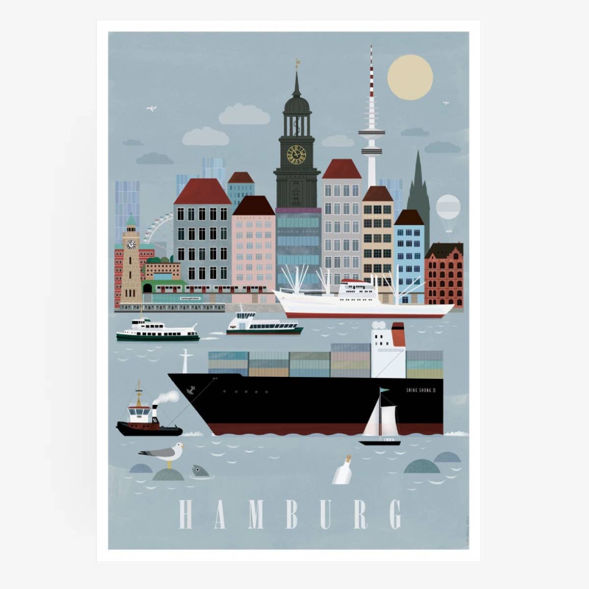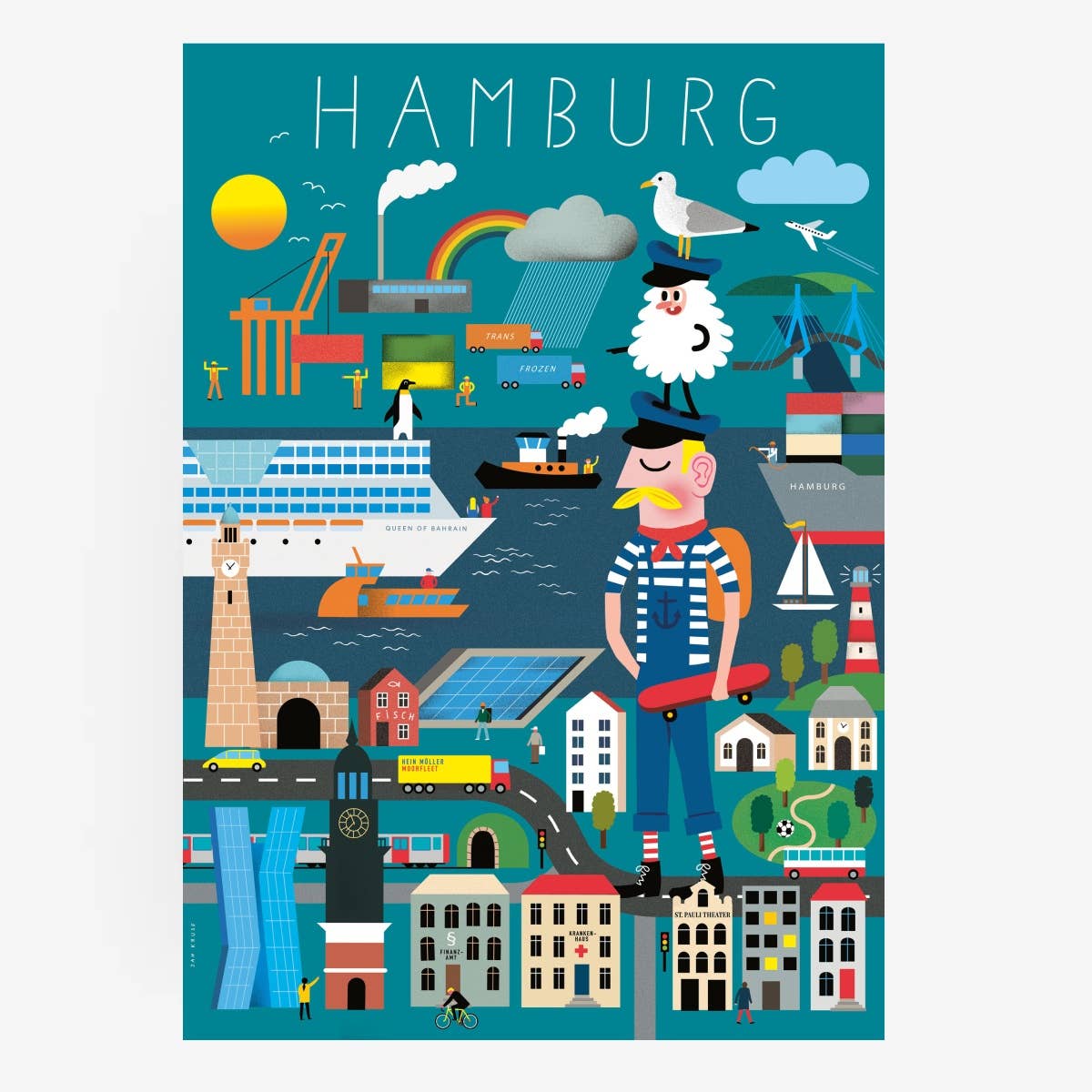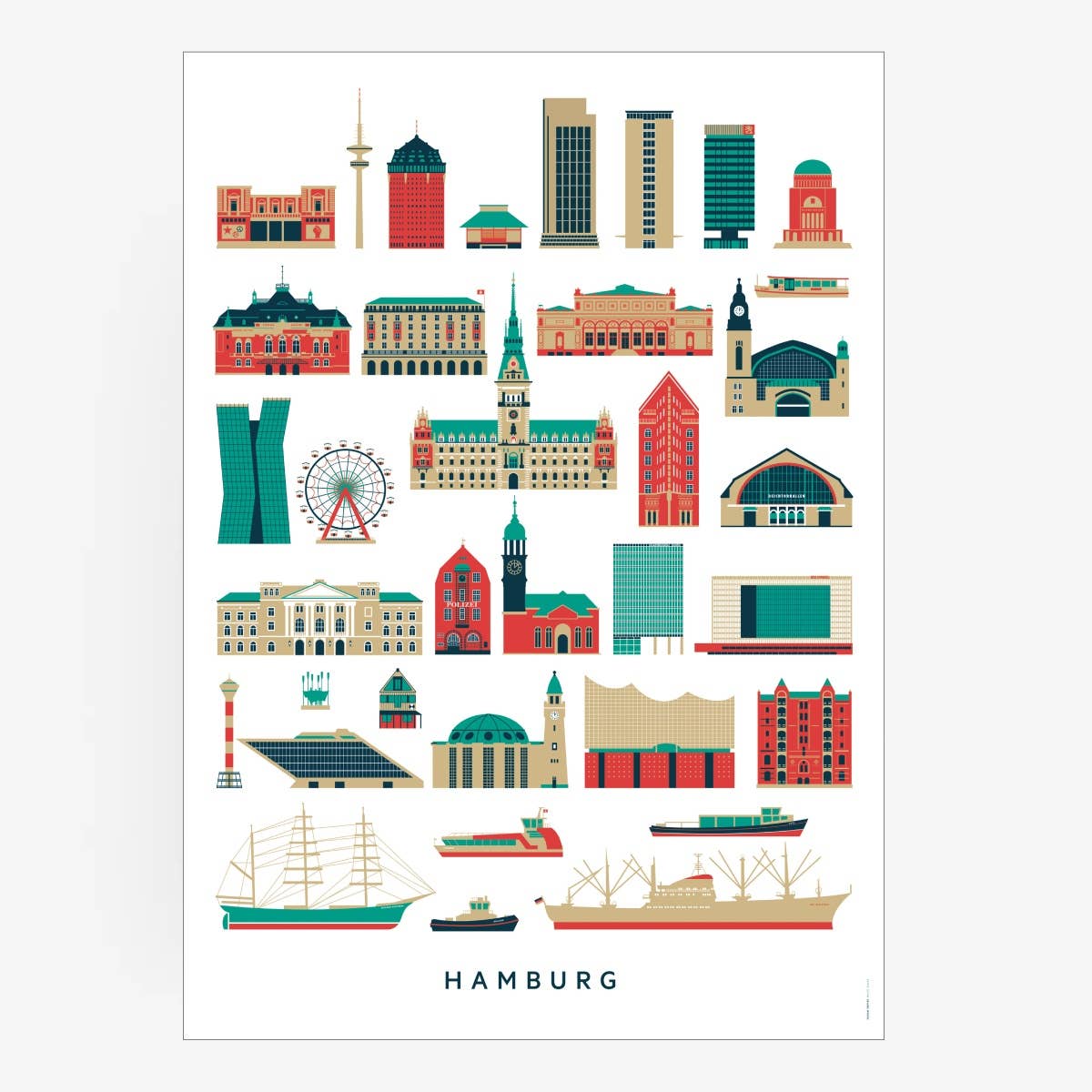 What do we think of when we think of Hamburg? At the harbor, huge container ships with colorful boxes, lots of dark gray water clapping against the harbor basins, seagulls screeching in the ears, the smell of motor oil and fish rolls, the Reeperbahn with its dazzling figures, where life only awakens at dusk, the Elbphilharmonie with its elegant wave roof, which sparkles in the sun on bright days and is loved by the people of Hamburg.” Elfie” was baptized, the culture in general, the many theaters and museums, publishers and agencies, hipsters and tough boys, merchants and celebrities, glamor and unscruffled cordiality. This is a declaration of love to Hamburg, the city we live in, which we also hate sometimes, for its arrogance, its overpriced rents, its rain-wet climate. But anyone who comes here stays. Falls in love with northern German brashfulness, which is straightforward and sometimes hurts. To the people who may be a bit more reserved than in the capital, but who become friends forever. Without question, Hamburg is an inspiring city. We love to roam the streets and discover new things over and over again... Let yourself be enchanted by our Hamburg collection, find out who is behind the Hamburger Leuden and breathe in harbor air with the posters that talk about big trips and faraway countries. Your Human Empire