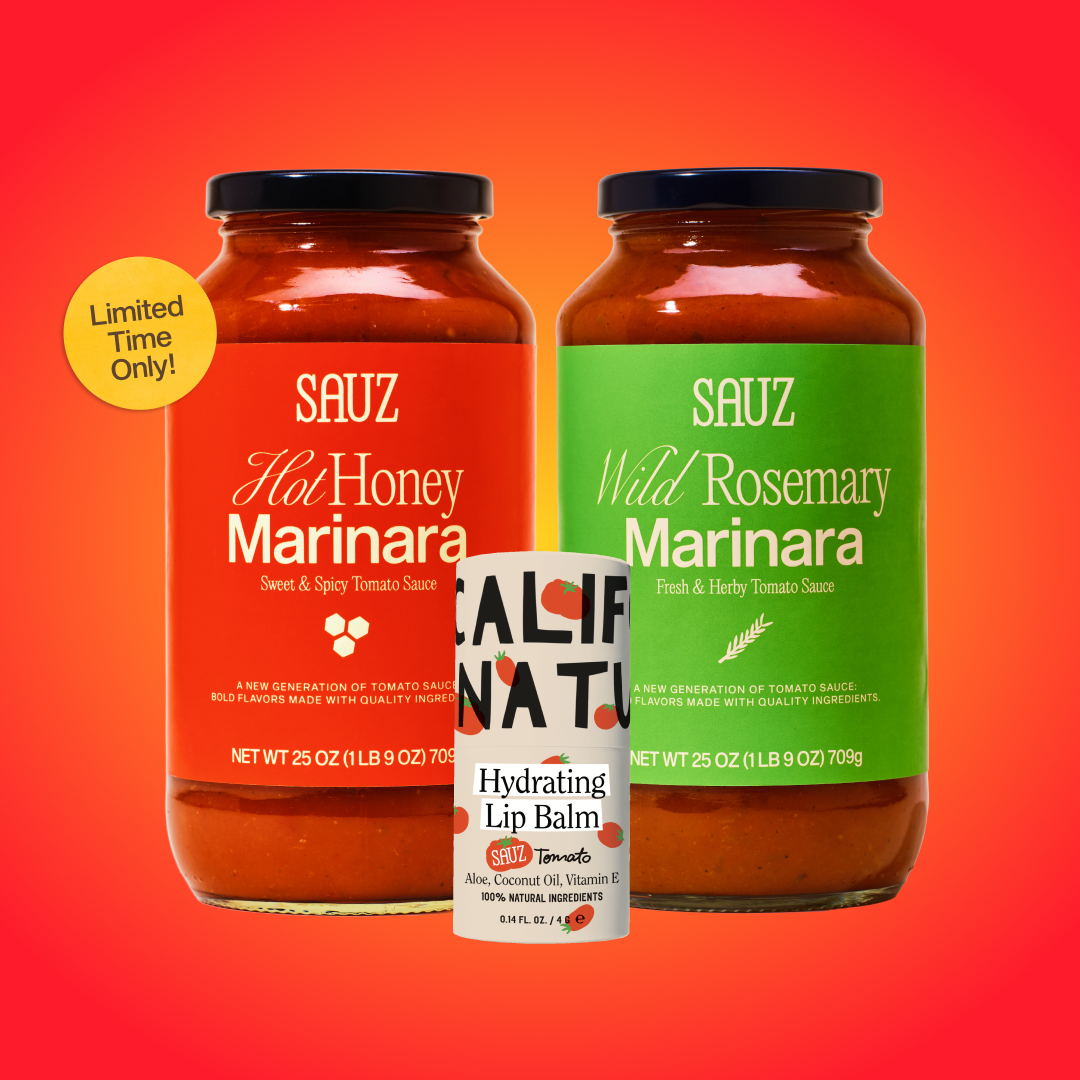 Sauz is a new generation of pasta sauce, bringing on-trend flavors and a cheeky, fun & dynamic brand identity to an archaic aisle of grocery. We’re Troy and Winston — childhood friends turned gravy-makers. We always bonded over a craving to stir sh*t up. By college we were tired of boring bland premade pasta sauce, so we set out to create a sauce that has more flavor & more fun than your traditional canned marinara. By blending equal parts nostalgia and innovation we perfected the art of the Sauz to share with the world. Our sauces aren’t just for spaghetti — they’re for late-night pizza parties, impromptu picnics, and cozy Sunday suppers. At Sauz, we believe any dinner can be a celebration. Every meal should blow your taste buds away. And that life tastes sweeter when shared. Pull up a chair, grab a jar of the good stuff, and set the table for a meal you’ll never forget with Sauz.