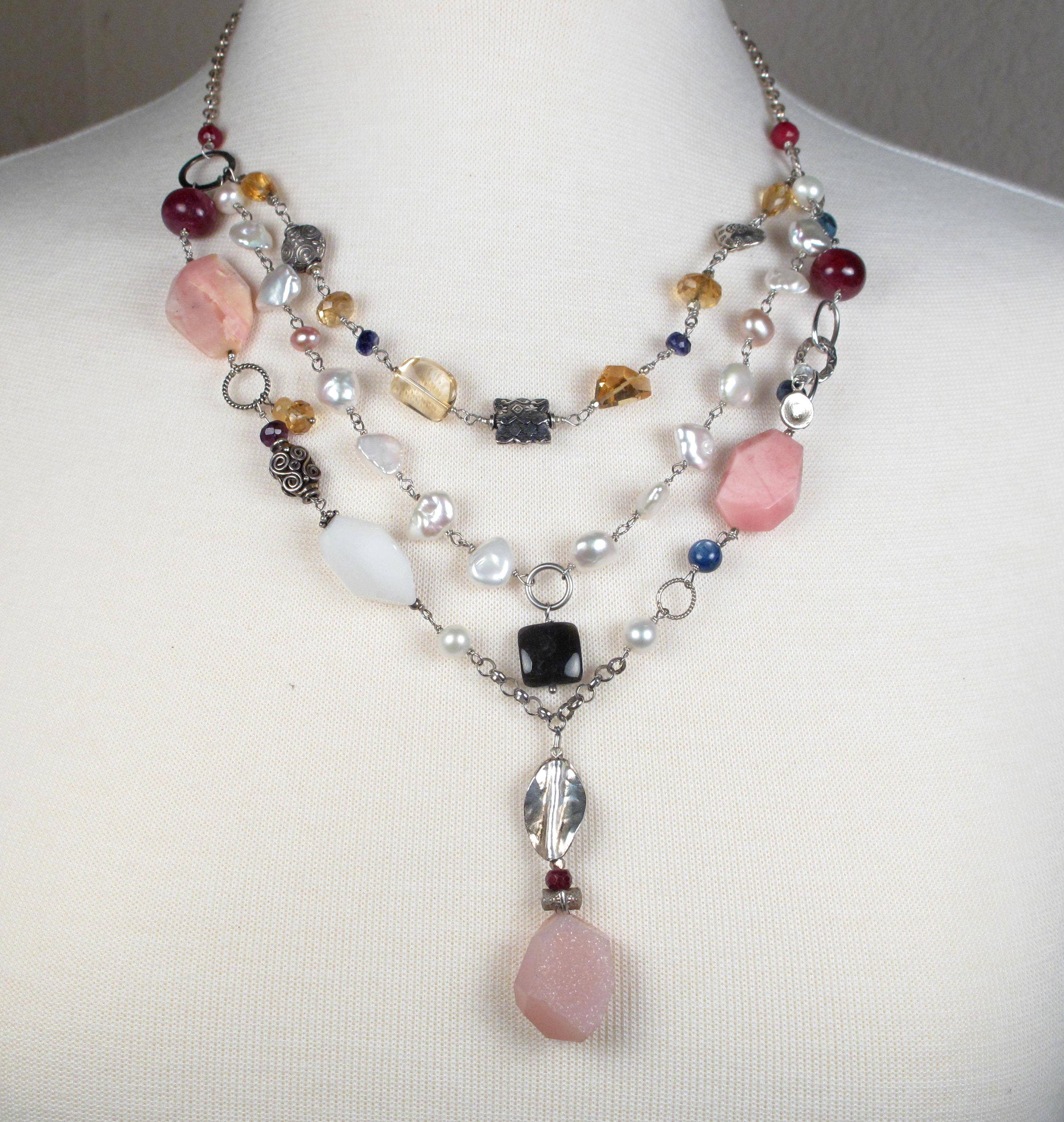 Kathryn Ross discovered her love of jewelry design with the very first necklace she made. She had been side lined by a medical condition for the summer and gardening was out. She decided that creating a unique necklace would be good therapy. Little did she realize the world that would open up to her and all the places this jewelry would take her. As the designs took shape, Kathryn quickly found that her custom, one of a kind pieces needed high quality, very unique gemstones and pearls. Sterling silver and gold filled chain and accent pieces would complete these necklaces, earrings and bracelets. It's been a very rewarding journey that has led to fine adventures in building the RitterRoss Designs brand.