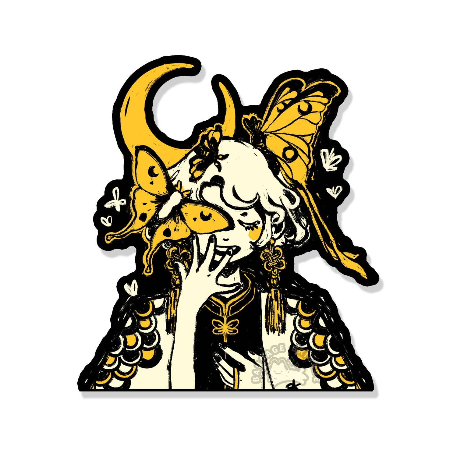 BANDAGE BRIGADE is an artist-owned apparel/lifestyle brand that specializes in creating silly original screen printed clothing and goods such as T-shirts, long sleeves, sweaters, jackets, hats, totes, socks, as well as offering paper goods such as stickers, enamel pins, decals, and charms. Their designs are inspired by black cats, long dogs, overripe bananas, cute ghosts, and strangely-shaped food.