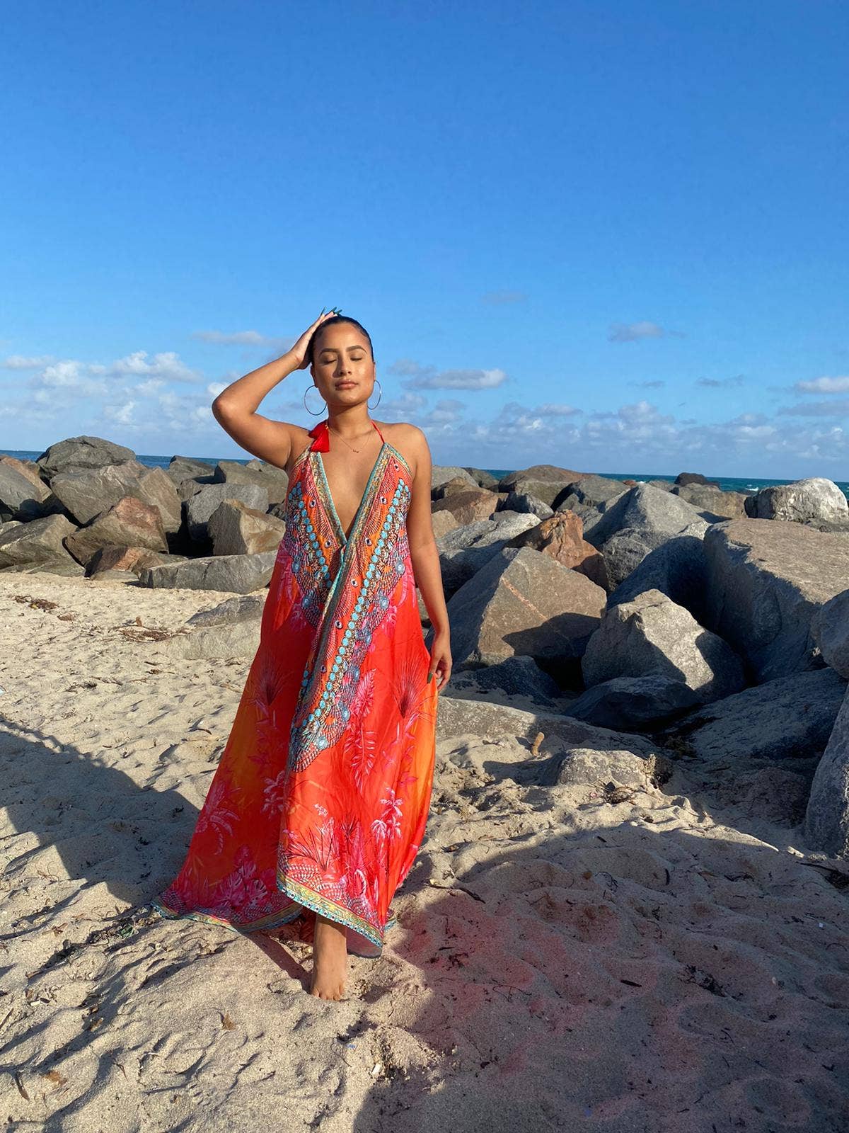 Ranee’s clothing is more than a resort wear, it tells a story, it makes a statement, it is inspired by different cultures, and is something every woman would love to own. Ranee's is created by a woman, for all the women who dream to fly on clouds, without any strings, and desires to look gorgeous every day and every where. Ranee’s prints are designed by Miami designer Kiran Khiyani, and belong exclusively to Ranee’s, said that you will not find our print with any other wholesaler. Kiran loves bold prints and exotic colors. The art of designing lies in combining both prints and colors on beautiful fabrics, along with perfect styling and intricate details. Every piece is handmade with several hours of labor invested in each piece, individually cut and sown, and intricate embellishments makes our piece one of a kind. Ranee’s clothing is perfect for social events, beach, cruise or a vacation. Its one dress you will never forget to pack.