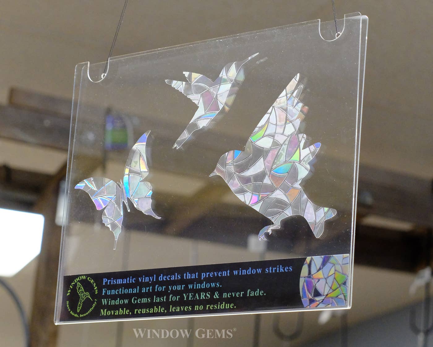 Window Gems is the original creator of prismatic bird strike prevention window clings. Our nature inspired designs elevate the bird strike decal to an art form. They are gorgeous, effective and long lasting, making excellent gifts and souvenirs. We are a women owned, women run company. Every design is created and produced locally in Mount Shasta, California.