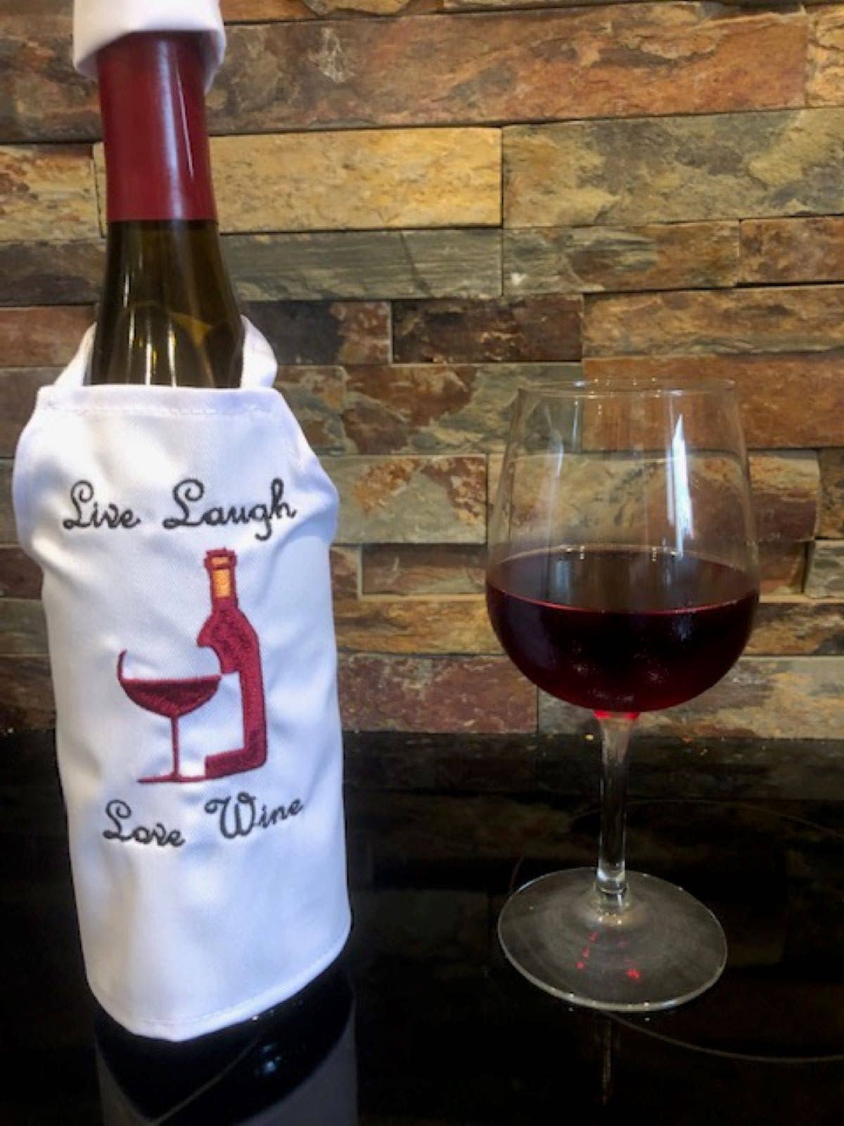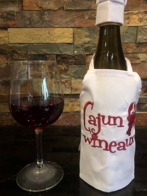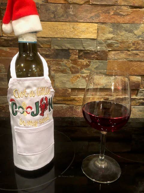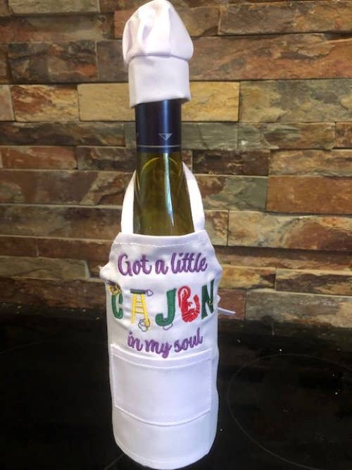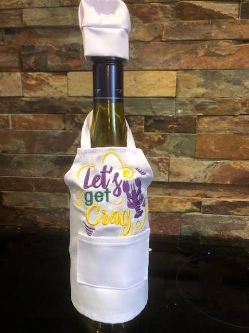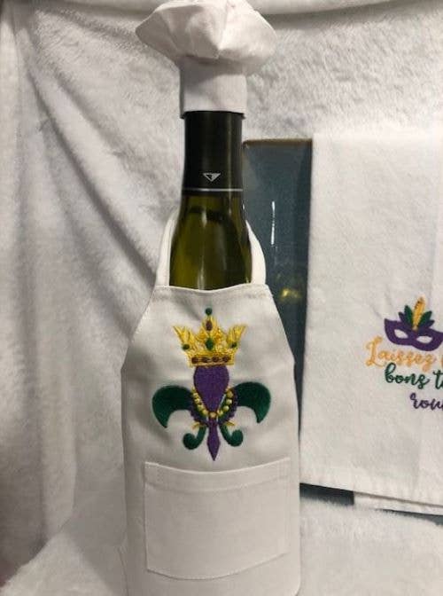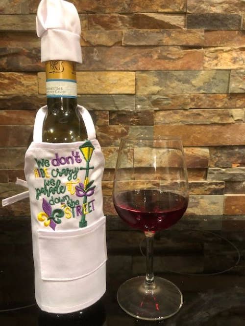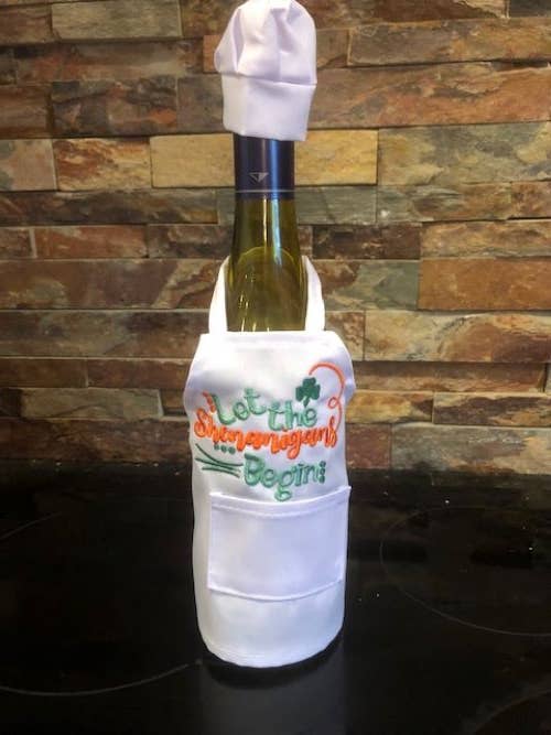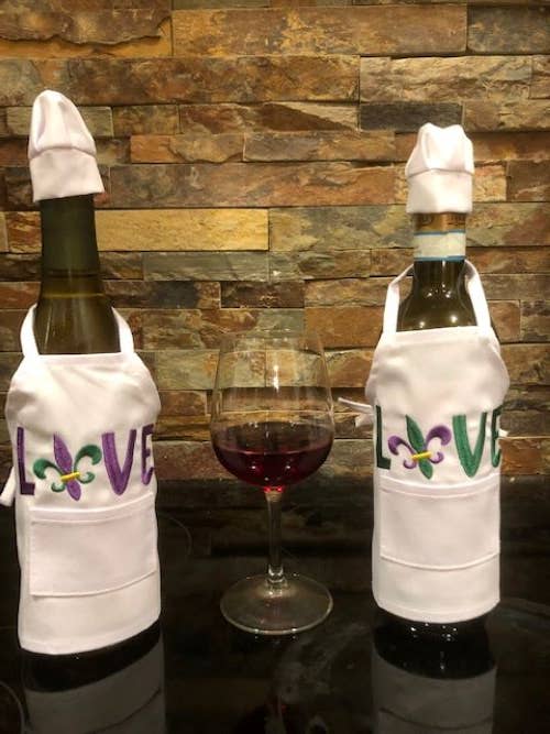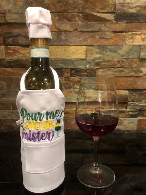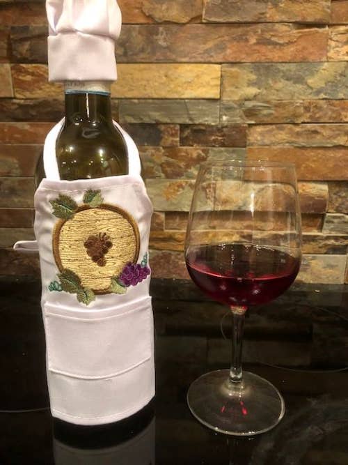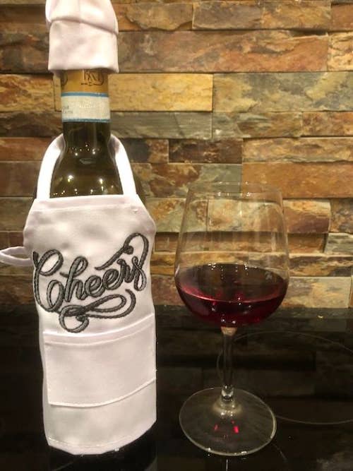 Julie and Lisa love to stitch. We would sit around in the evening with our mother, sharing ideas over a glass of wine. These wine bottle aprons are the perfect gift, great party decoration, and a unique touch to add to a celebration with family and friends. They are staple products of All Aboard Embroidery and we think you will love our fresh, creative designs.
