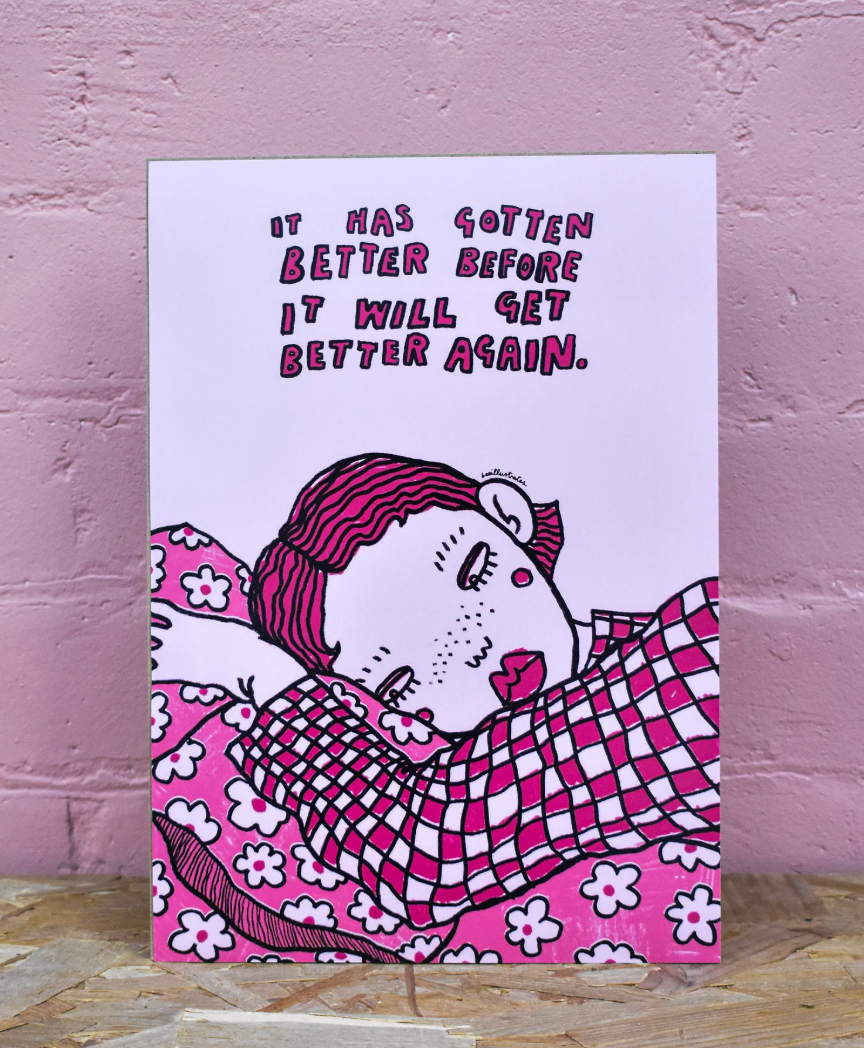 Beeillustrates is an award-winning artist and illustrator whose practice spans drawing, painting, printmaking, and installation. From prints and zines to apparel, cards, and homeware, each design brings thoughtful, original artwork into everyday life. Beeillustrates creates distinctive, quirky artworks that encourage reflection, curiosity, and connection.