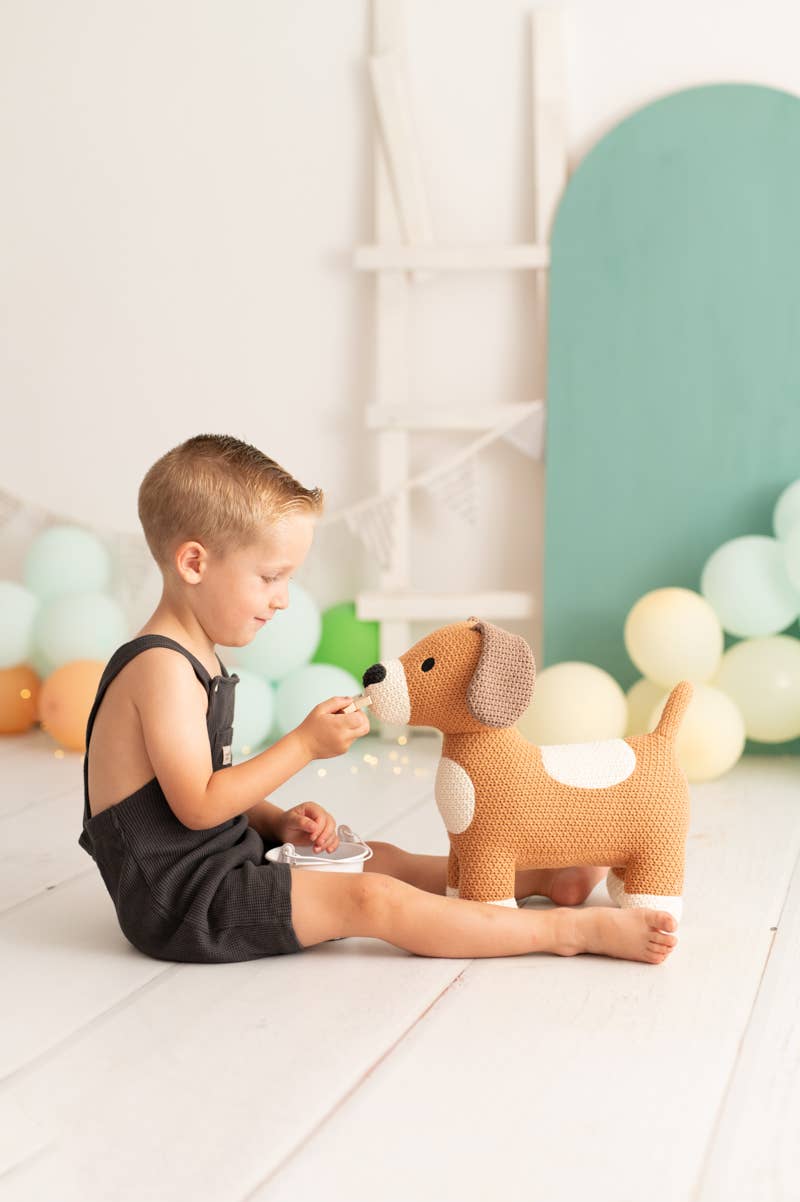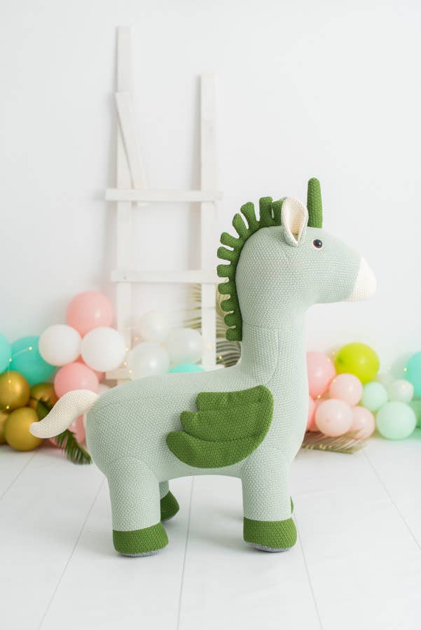 In our workshop, we design and manufacture a magical world of plush toys, backpacks, and children's decorative items, using crochet cotton fabric as a base. Our star product is the XXL-sized Amigurumi plush toys, beautiful plush toys knitted in vibrant and warm colors. All our amigurumis are covered with a soft 100% cotton and hypoallergenic crochet fabric, and inside they are filled with polyester foam. Only the large amigurumis have a pine wood structure inside capable of supporting up to 70kg of weight on top.