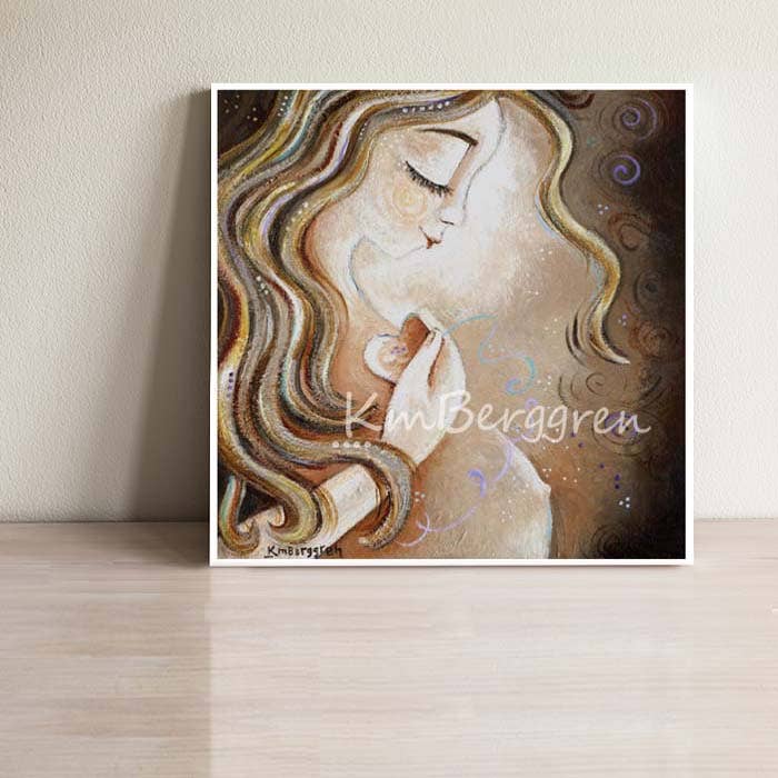 Katie m. Berggren is an American fine art painter focused on exploring the mother child relationship and the solitude and silence of women discovering themselves as the children grow. Katie has been cited as the #1 motherhood artist in America. Capturing the essence of mindful connection with her unique painting style allows Katie to explore imagery that validates women and mothers all over the world. KmBerggren artwork is collected in homes in over 80 countries, which has allowed Katie to give back to our local and global community. Selected organizations that have received support from KmBerggren include Food For Orphans, NW Mother’s Milk Bank, Pink Lemonade Project, Back To Healing, The Hope Effect, Bridge The Gap, Open House Ministries and Mary’s Place. KmBerggren paintings reach across the globe to say, in a quiet way, that you are not alone; there is a community of like-minded women supporting you and your choice to nurture yourself and your children tenderly, however that is defined for you.
