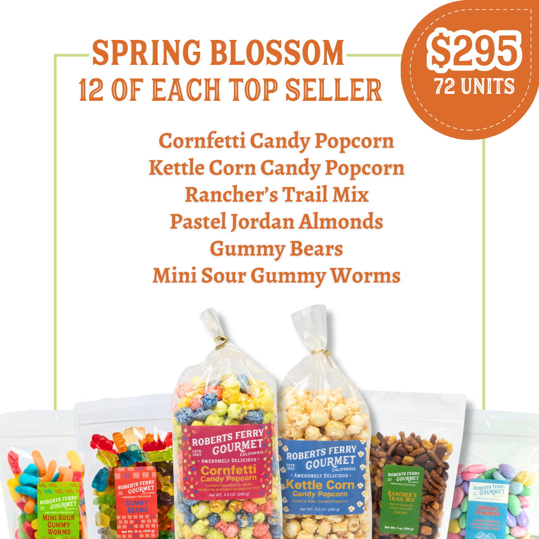 At Roberts Ferry Gourmet, our family story is all about legacy, passion, and the magic of handmade treats. Since 1983, our Famous Caramel Popcorn—originally the Almond Caramel blend—has been an Awesomely Delicious staple. Today, Nic & Kim West, along with their children—the sixth and seventh generations of Roberts Ferry—carry on the tradition of crafting Gourmet Goodies with heartfelt care. Our gourmet popcorn line has grown to feature 32 unique offerings, from holiday specials and candied delights to savory blends that keep our customers coming back for more. Every batch is made in small batches, cooled on sheets, and artfully broken into "bricks" to ensure every bite bursts with balanced, delicious flavor. Our small but mighty team hand labels and packs each bag with pride, adding a personal touch to every gourmet creation. We’re excited to partner with our wholesale friends to tailor products to your unique needs—whether it’s private labeling, custom packaging, or unique recipes. Thank you for joining us on this delightful journey, where family tradition meets culinary innovation, one gourmet treat at a time!