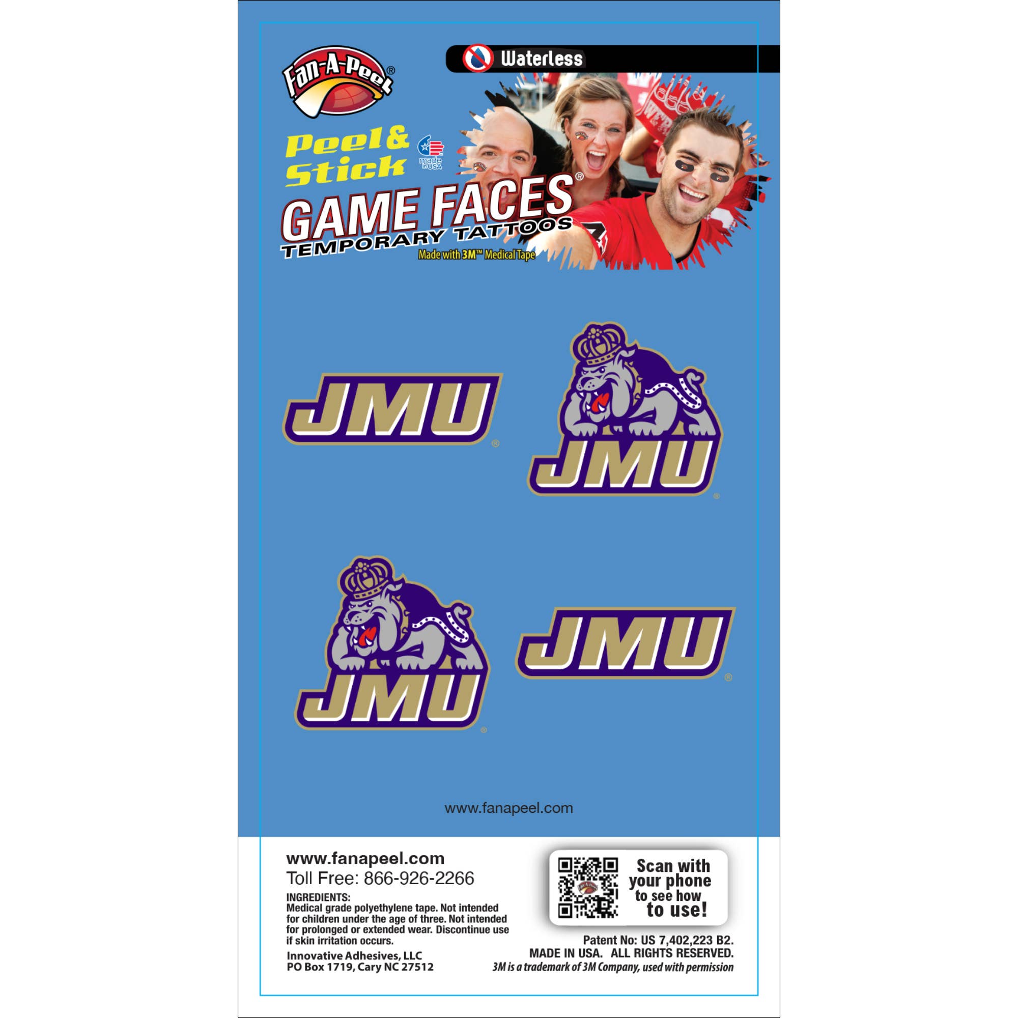 Fan-A-Peel / Gamefaces have long been a staple in the sporting world. First introduced over 25 years ago as a water applied tattoo in collegiate sports has now evolved into a fashion statement for fans, cheerleaders and players. Our products have embraced the fashion trends as well as impulse buy and immediate use by introducing several years ago a tattoo that can be used without water and used on most any surface. As the inventor and patent holder for peel & stick temporary tattoos we have revolutionized the market and made it easier to anyone to wear and remove their "GameFace" at will. We utilize the safest 3M Medical adhesives in our products and have expanded our lines to include metallic and glitter. A game day doesn't go by without seeing our products on TV, print and in the stands. In addition to our mantra for safety and convenance we have embraced sustainability by only using recycled materials in our packaging. All we want is for you to have fun and "put your gameface on"!!
