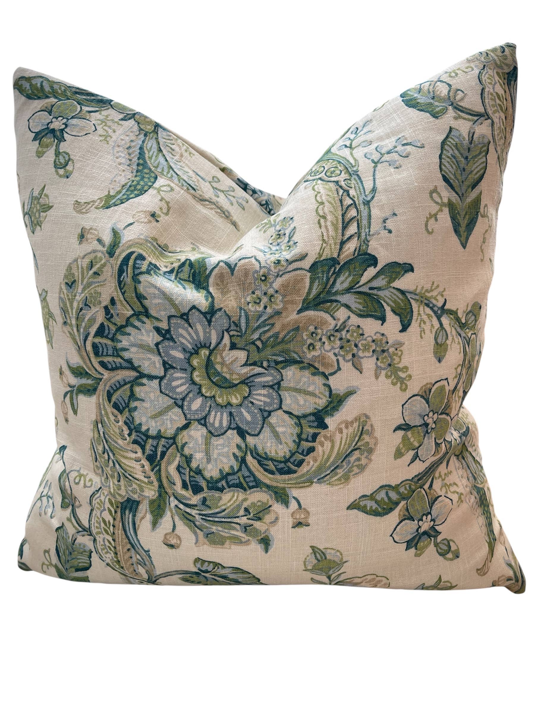Dahlia & Grace pillows are made in North Carolina using designer fabrics, including Thibaut, Scalamandre, Fabricut, Stof and Kravet. They are all sewn with invisible zippers and stuffed with feather/down inserts. Additional fill is used in the corners of the pillows to give them a lovely full appearance. If you need additional sizes or quantities, please contact us. Follow us on Instagram - @dahliaandgracepillows.