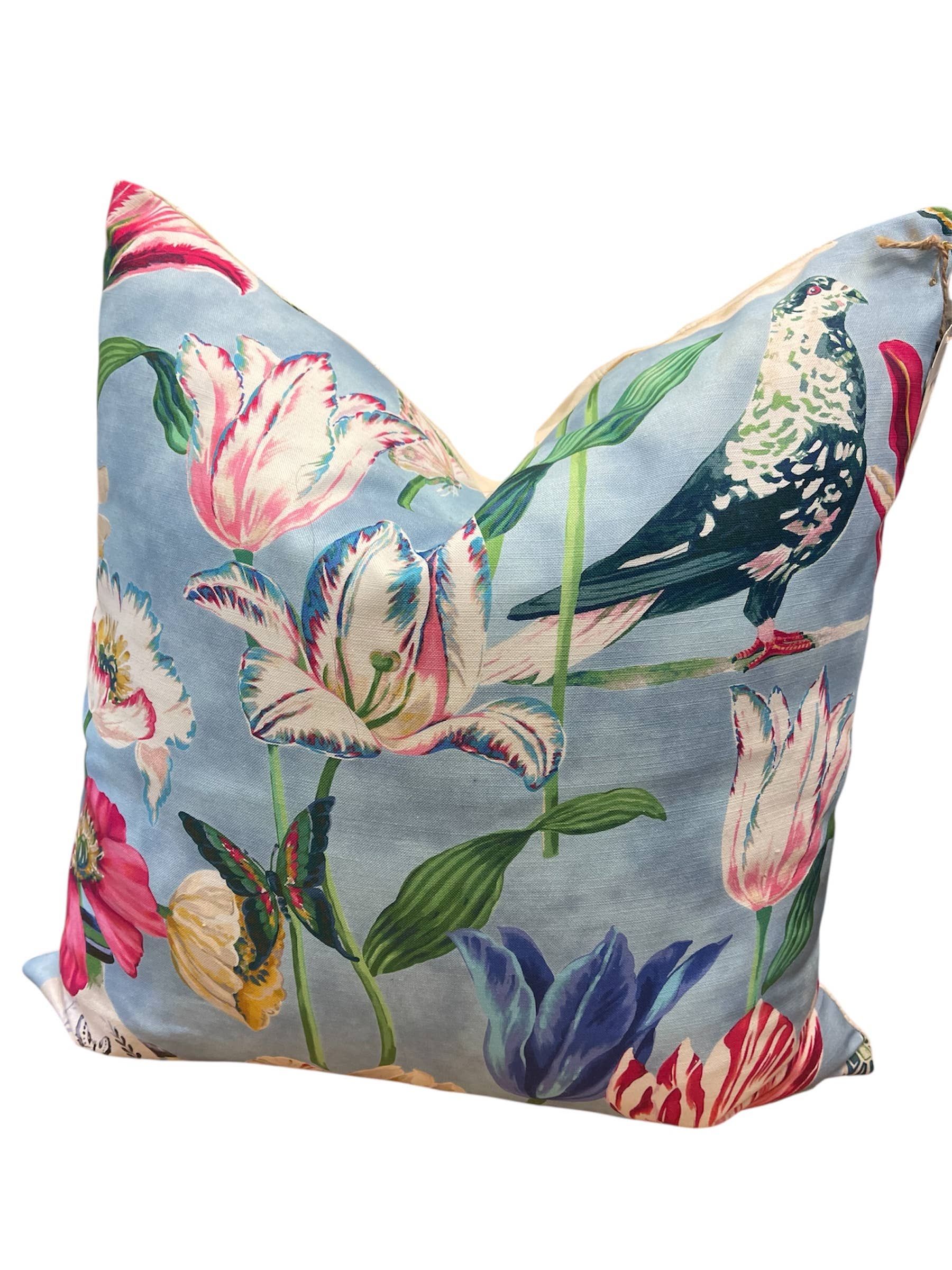 Dahlia & Grace pillows are made in North Carolina using designer fabrics, including Thibaut, Scalamandre, Fabricut, Stof and Kravet. They are all sewn with invisible zippers and stuffed with feather/down inserts. Additional fill is used in the corners of the pillows to give them a lovely full appearance. If you need additional sizes or quantities, please contact us. Follow us on Instagram - @dahliaandgracepillows.