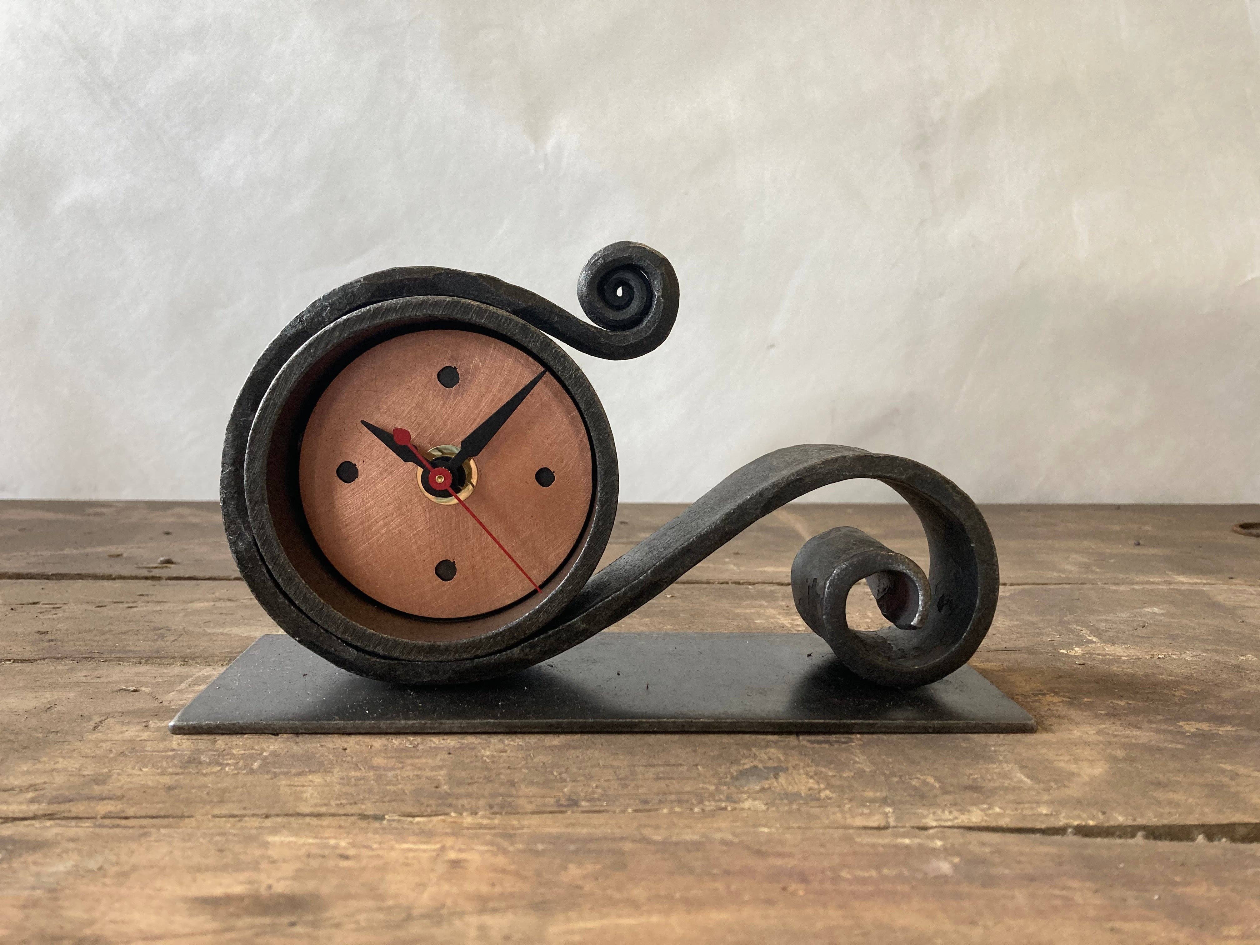 Blackthorne Forge is owned and operated by Vermont blacksmith Steven Bronstein. He and his helpers have been creating functional and sculptural ironwork for over 40 years. At the forge you will see both the traditional and contemporary tools available to the modern blacksmith. His designs strive to blend the primitive charm of ironwork with the energy and interest of more contemporary design. Clocks, vases, bookends, floor lamps, sundials, garden sculpture and fountains are just a few of the objects for which Steven has sought to blend the functional with the sculptural. Relying on the qualities that make iron such a beautiful material, Steven’s pieces are both delicate and rugged. Blacksmiths have a three thousand year tradition that has changed and grown with the ages. This capacity to adapt and evolve with the changing designs of the day is the blacksmith’s greatest strength. Just as the hot metal twists and bends to create beauty, so does the craft of blacksmithing itself. Steven celebrates this aspect of his art and looks forward to all of its possibilities. Steven’s work is available in more than 100 galleries around the country. Click here to see an ever-changing list of galleries around the country where you can find our work.