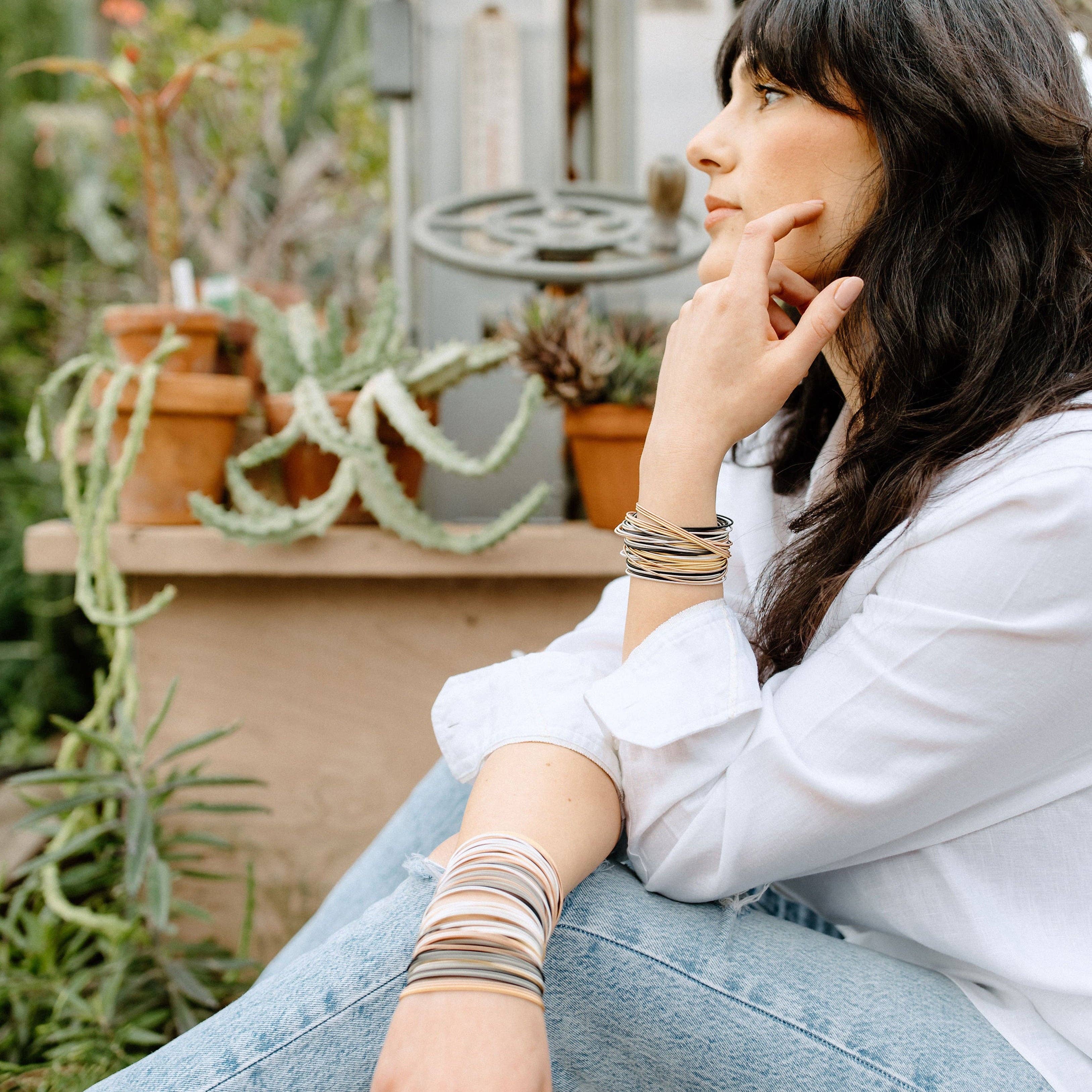 Welcome to Emerson & Oliver, where we believe that "a true friend knows your weaknesses but emphasizes your possibilities." I'm Mary Presutti, the founder and proud owner of Emerson & Oliver, a woman-owned and run company. Our journey began with a simple yet powerful idea: to create jewelry that seamlessly blends city life's sophistication with the beach's relaxed vibes. This vision gave birth to our iconic DIA Bracelets. The inspiration for our DIA Bracelets came from our fond memories of jelly bracelets and piano wire bracelets from our youth. We reimagined these nostalgic pieces, infusing them with a modern twist to make them uniquely ours. DIA Bracelets are stainless steel spring bracelets, sometimes referred to as guitar string bracelets, which are known for their high quality and durability. DIA Bracelets are a soft spring that we wear as bangles and are water-resistant thus, making it an effortless piece to add to any outfit. "DIA" is a Greek word, meaning "through," which resonates deeply with our philosophy. We believe life is not about "getting over" challenges but "going through" them together. Our woman-run team maintains a relaxed work atmosphere to encourage putting quality of life first. Our pieces are produced, assembled, and shipped locally by a team of hardworking, dedicated women who do it all themselves. - Mary