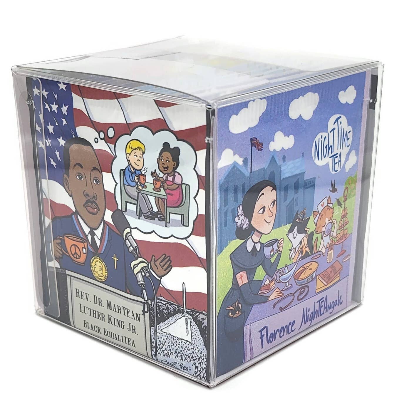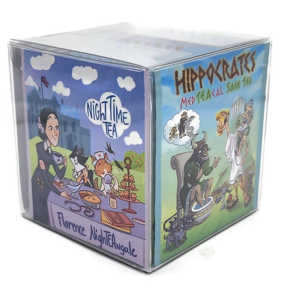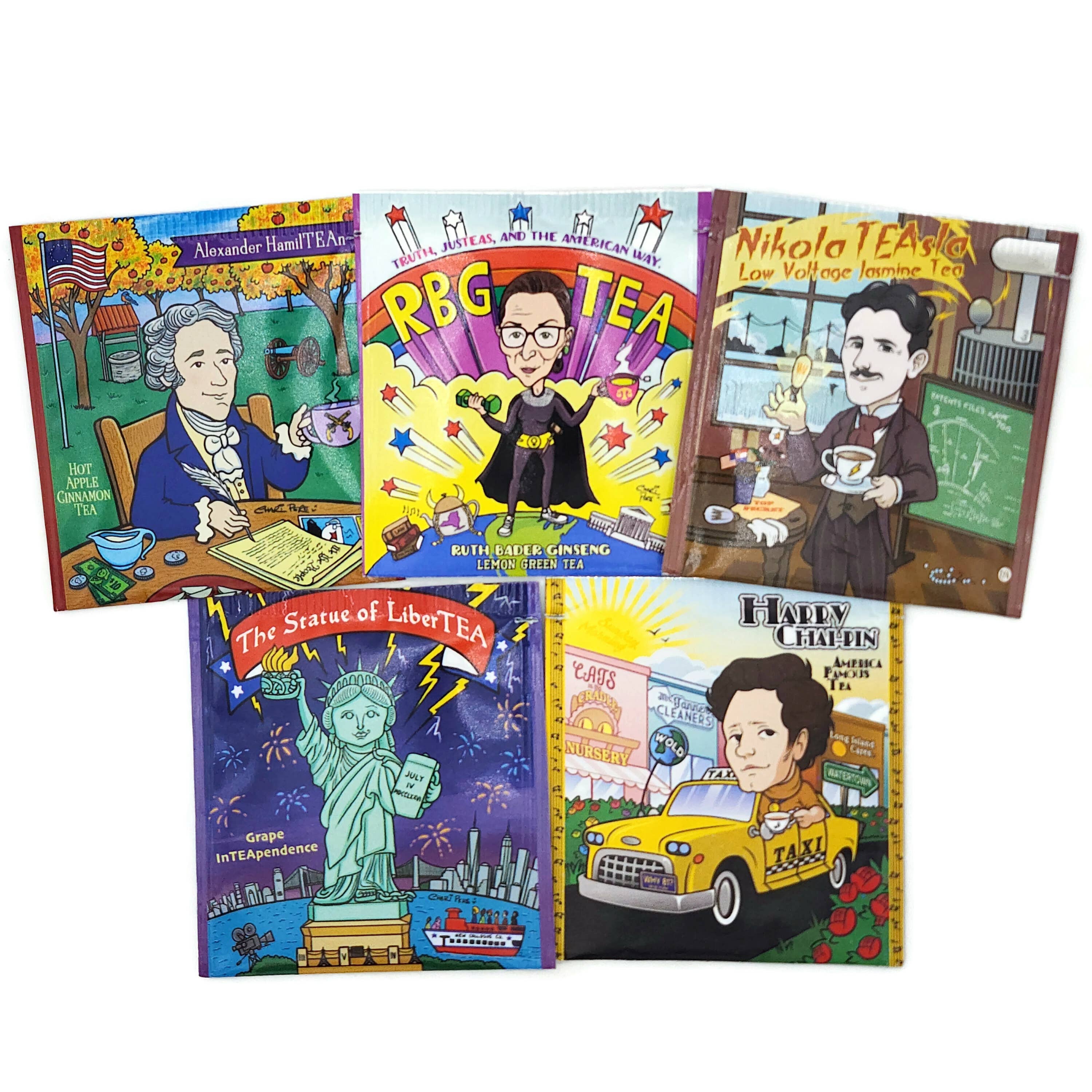 Our Teas: We make fun teas! Combining organic and kosher tea with art, humor, historical and political characters, and hidden Easter eggs in each design for you to find. Our goal is to make a gallery or artists on Tea (we are up to 5). We use these teas for social justice projects. From LGBQTea to EqualiTEA issues. We are also a zero waste company. Our TeaBook: The best new way to store tea: Noah the creator of The TeaBook would host dinner parties for 15 to 20 people. After the meal he would ask “who would like some Tea?” The first question he always got was “what flavors do you have?” This was a hard one, he had over 20 flavors. He turned to his vast collection and figured there has to be a better way. He thought “What if there was a light-weight, easy-to-pass-around book that organized the teas, making it easy to find the one you wanted?” Noah told his idea to his mother “a book to store his hundreds of teas”, but then he gave up on it. Mothers never forget and mailed him a prototype 1 year before she died battling ovarian cancer, and she never gave up. She made it from household products. and sent it to him with a note that said "always follow your dreams." Made with love, it is making lives, pantries, parties and the environment a little better!!