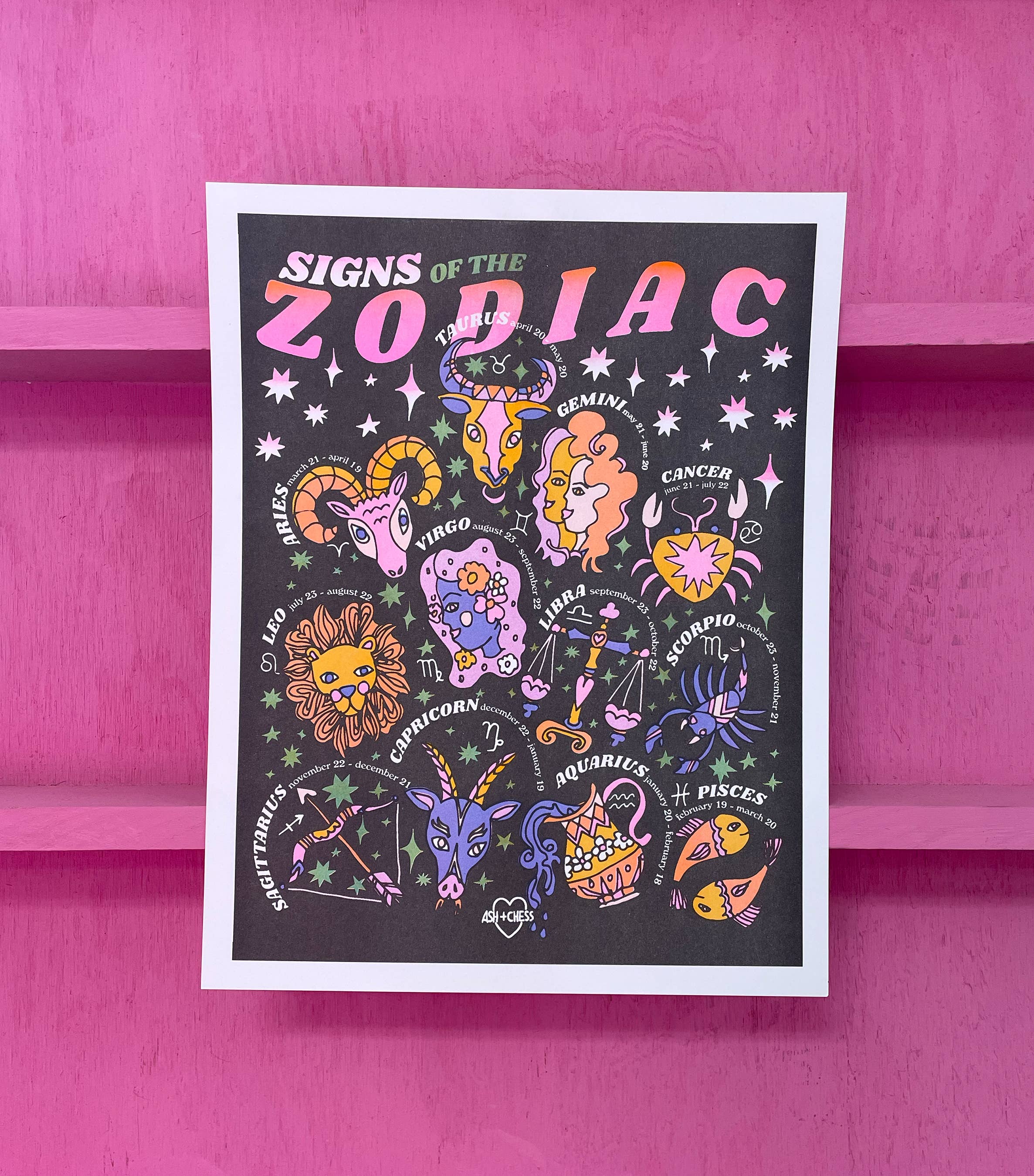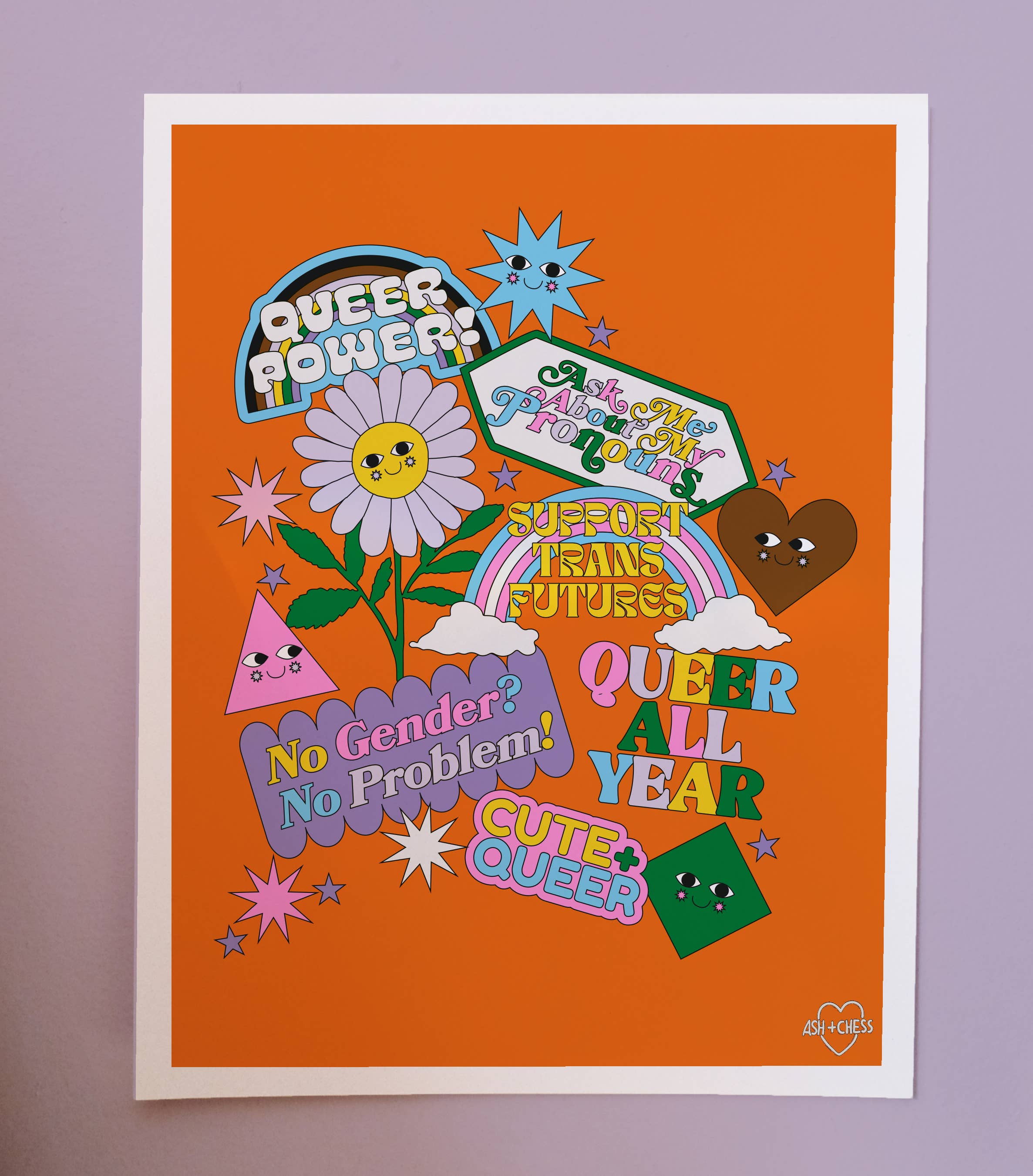Ash + Chess is a stationery & gift company run by queer and trans couple Ashley Molesso (she/her) and Chess Needham (he/him), based out of Kingston, NY. They create greeting cards, art prints and more in bold, retro color palettes, often using their artwork to uplift the queer community. Their company made its debut at the National Stationery Show in May 2017, and since then over 1,000+ retailers throughout the United States, Canada, Europe, and Asia sell their art and stationery. In the short time they've been in business, Ash + Chess have worked on many collaborations including artwork for Target, Smartfood, Skittles, Nooworks, Belletrist, Plaza Style, Brooklyn Roasting Co.; Transfigure Print Co., HarperCollins, Workman Publishing, Running Press Studio, Macy's STORY and more. They are the authors of multiple publications, including: The Gay Agenda: A Modern Queer History & Handbook (Morrow Gift) 2020 Queer Tarot: An Inclusive Deck and Guidebook (RP Studio) 2022 My Queer Year Guided Journal (RP Studio) 2022 ABC-Deconstructing Gender (RP Kids, May 2023) Just Like My Family (RP Kids, May 2024) Queer Animal Oracle Deck (forthcoming, RP Studio, Spring 2026) They are the owners of recently opened brick & mortar store Everywhere Shop in Kingston, NY, a gift and stationery shop highlighting small business, queer makers, local artists and their own Ash + Chess line.