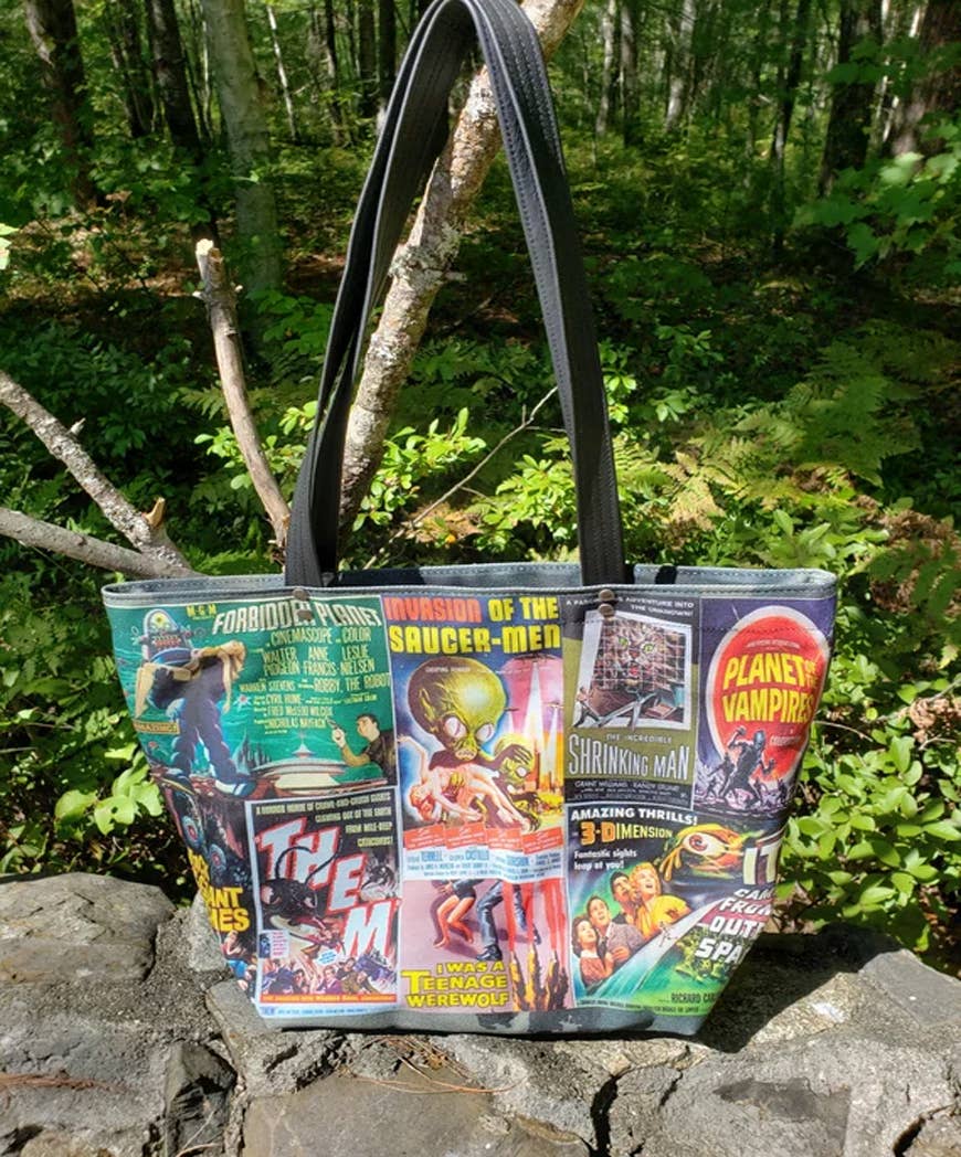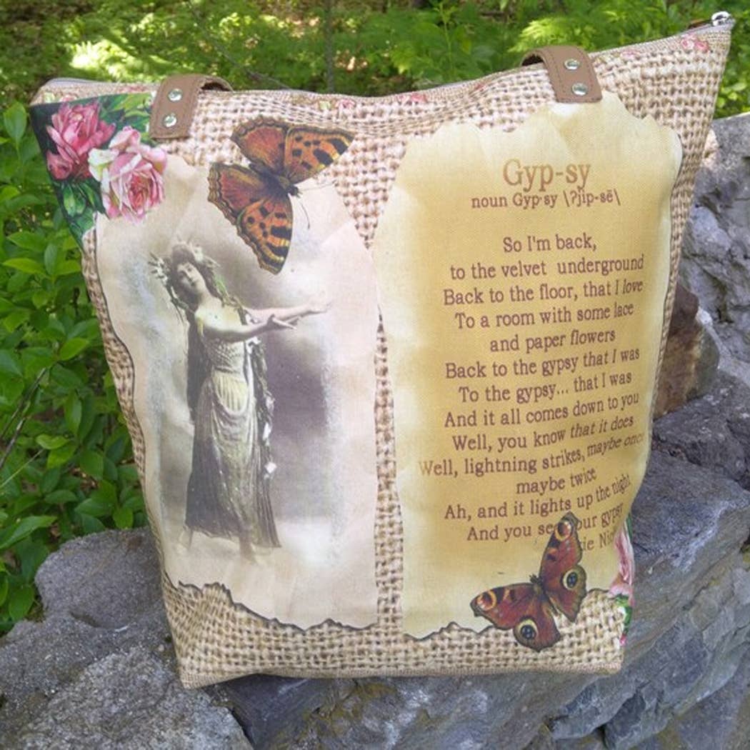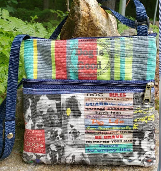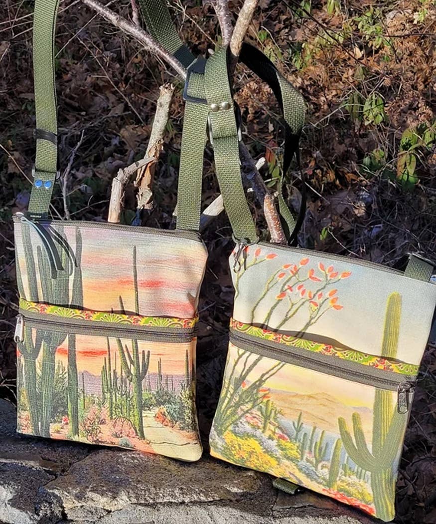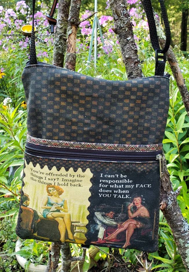 Old Bagzz was created from my desire for repurposing. I began making bags from vintage fabrics, reclaimed clothing like jeans and wool jackets. I began adding vintage graphics, old photos and postcards. Old Bagzz is now a combination of bags and accessories made with my originally designed fabrics that I have printed here in the United States, along with reclaimed leather and repurposed fabrics. I do all the designing and sewing myself in my Maine and Arizona homes, depending on the time of year.