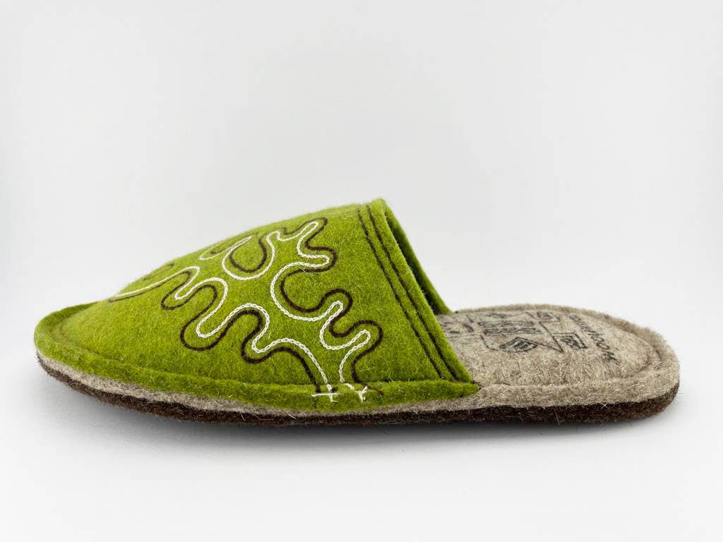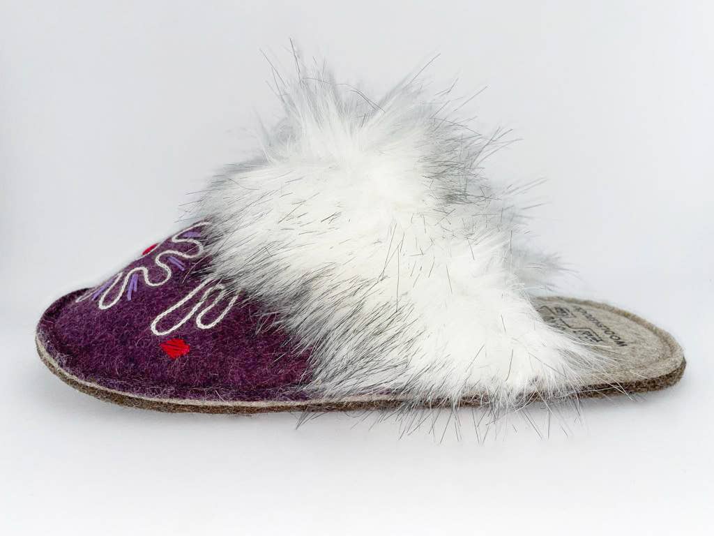 Comfortable and durable, with a bold, unique design, each pair of handcrafted Woolenstocks felt slippers is perfect for everyday wear. Stitched with love and precise attention to detail, felt slippers blend a time-honoured tradition with modern form and function. Why Felted Wool? For the artisans who make your Woolenstocks, felt is more than a fabric. It’s a natural material that’s ideal for creating comfortable works of art. Not only do felt slippers and shoes feel great and look amazing, but there are so many other benefits to wool slippers. – Wool slippers will keep your feet warm and dry indoors and out. – Felted wool helps to stimulate your neural systems, which promotes great circulation. – Wool shoes are lightweight and comfortable. – Wool retains its shape and won’t stretch over time. – A natural material, wool is eco-friendly and sustainable. It’s naturally durable and will withstand daily wear