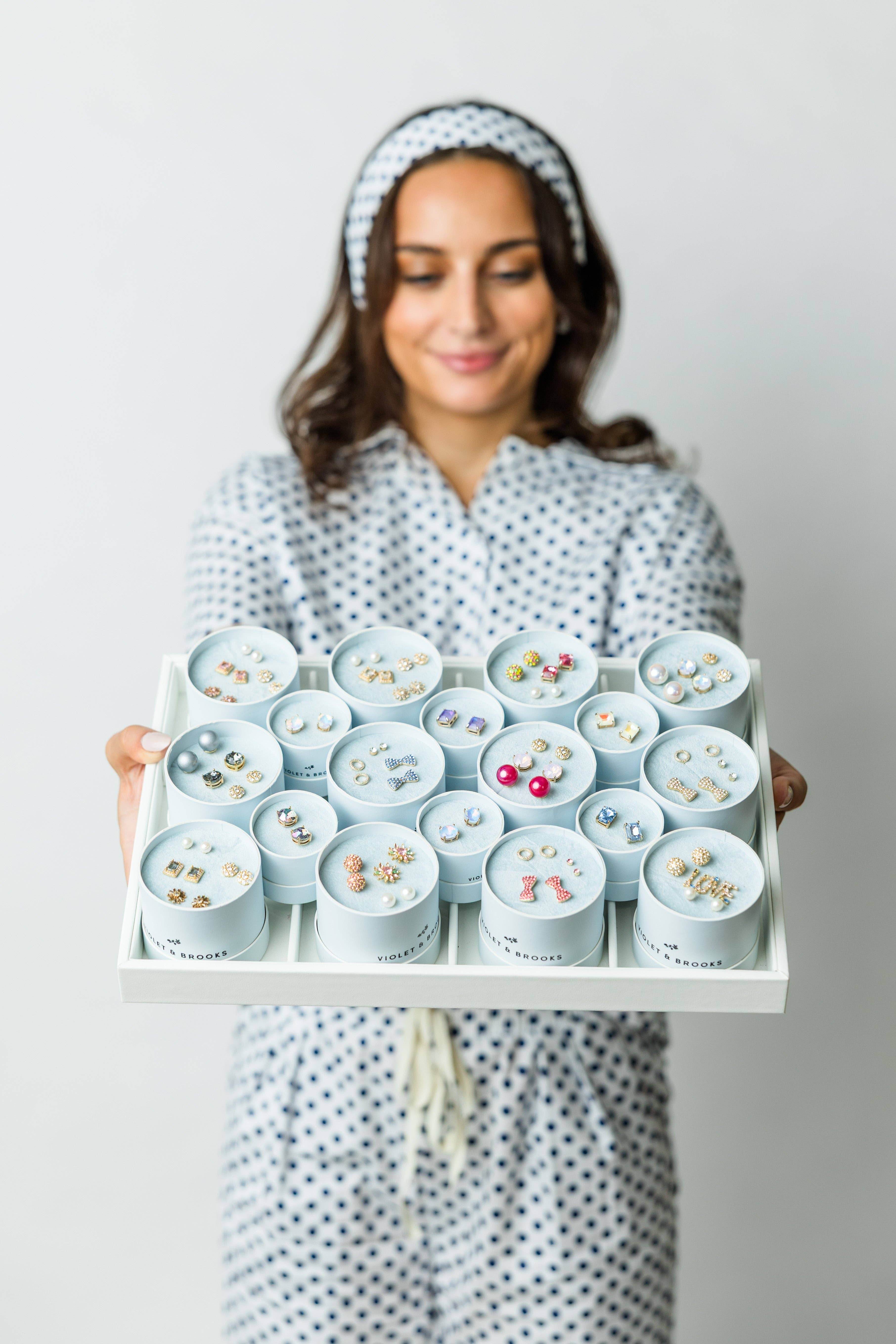 Violet & Brooks is a feminine, fresh, & fashion forward brand specializing in giftable jewelry, hair accessories & loungewear. Owner/designer Robbin Cook founded the brand in 2018 after 32 years in the accessories business. As a designer & merchandiser she creates with her clients in mind and with these goals: Design beautiful accessories that women of all ages want to wear and gift, package it beautifully - and all the while make it affordable. Our designs have been featured in numerous publications and was also one of O Magazines' favorite things. Designs have been featured internationally on QVC in Paris, QVC in the US and on the Today show during Entrepreneur week. We try to do whatever we do with a whole lot of heart. We listen. Care. And hope that you and your customers feel it too. We are excited to share with you our take on the latest, most feminine trends in jewelry and accessories - all designed with you in mind - ageless and beautiful. We invite you to "try the trend" without spending a lot and share with your customers. This season, we've made it easy for you! Lots of our assortments come in pre-pack kits that include a display so you can set up your shop with ease.