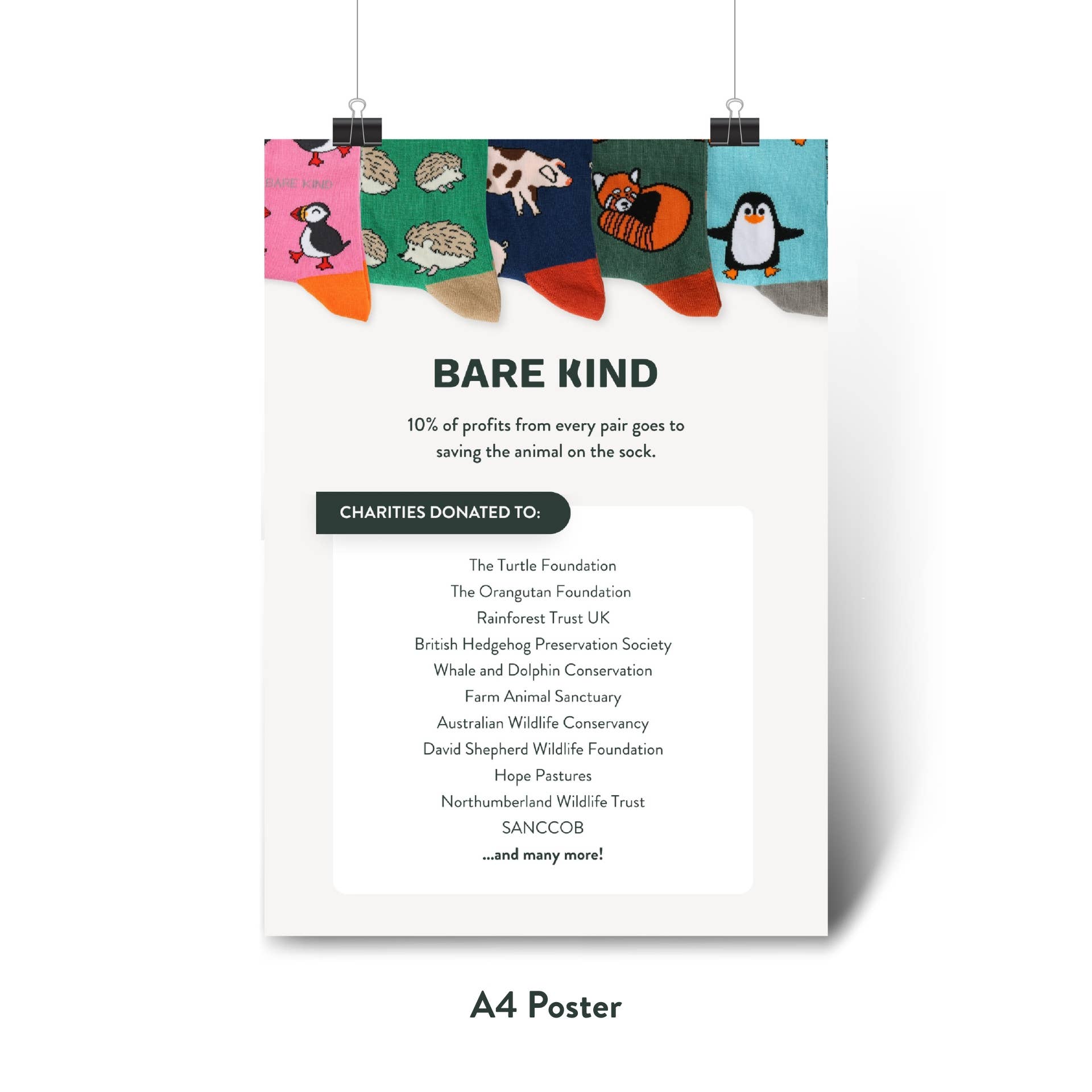 At Bare Kind we make socks that save animals. Free shipping over £200* | $255 | €235* Founded by Lucy Jeffrey in 2018, our mission has always been to leave the planet in a better state than which we found it, and that’s why every pair of our bamboo socks donates 10% of profits to a charity working to protect the animal on the sock. We are proud to use high-quality bamboo, which is soft, sweat wicking and thermoregulating. Our socks are sourced from a 3rd generation family-run factory in Istanbul, as well as ethical factories in India and China, made with OEKO-TEX certified fibre and packaged in FSC certified cardboard. We are also B-Corp certified, meaning we demonstrate high social and environmental performance. We have seen amazing growth in the last few years and are now stocked in over 700 retailers across the UK and beyond. As well as receiving over 1,000 5-star direct consumer reviews, Bare Kind socks are now trusted by the Royal College of Podiatry (RCPOD). If anyone knows socks – it's them! *There may be a slight variability depending on exchange rates.