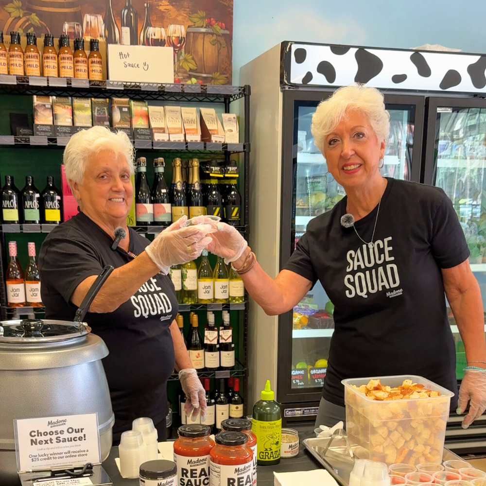 The Madone story starts with my mom, Phyllis, and my aunt Marie—two Brooklyn sisters who’ve been making real sauce for decades. They’ve spent a lifetime feeding family, friends, and anyone lucky enough to walk through the door. They joke that in their kitchens there’s always food, laughter, and at least three conversations happening at once. “We tried to bottle the chaos—it didn’t fit. But we got the sauce right here in a jar.” That’s Madone. As real as two grandmas from Brooklyn. No sugar. No shortcuts. Just the best sauce, perfected over 50 years of Sundays, now in a jar for you to see what all the fuss is about.