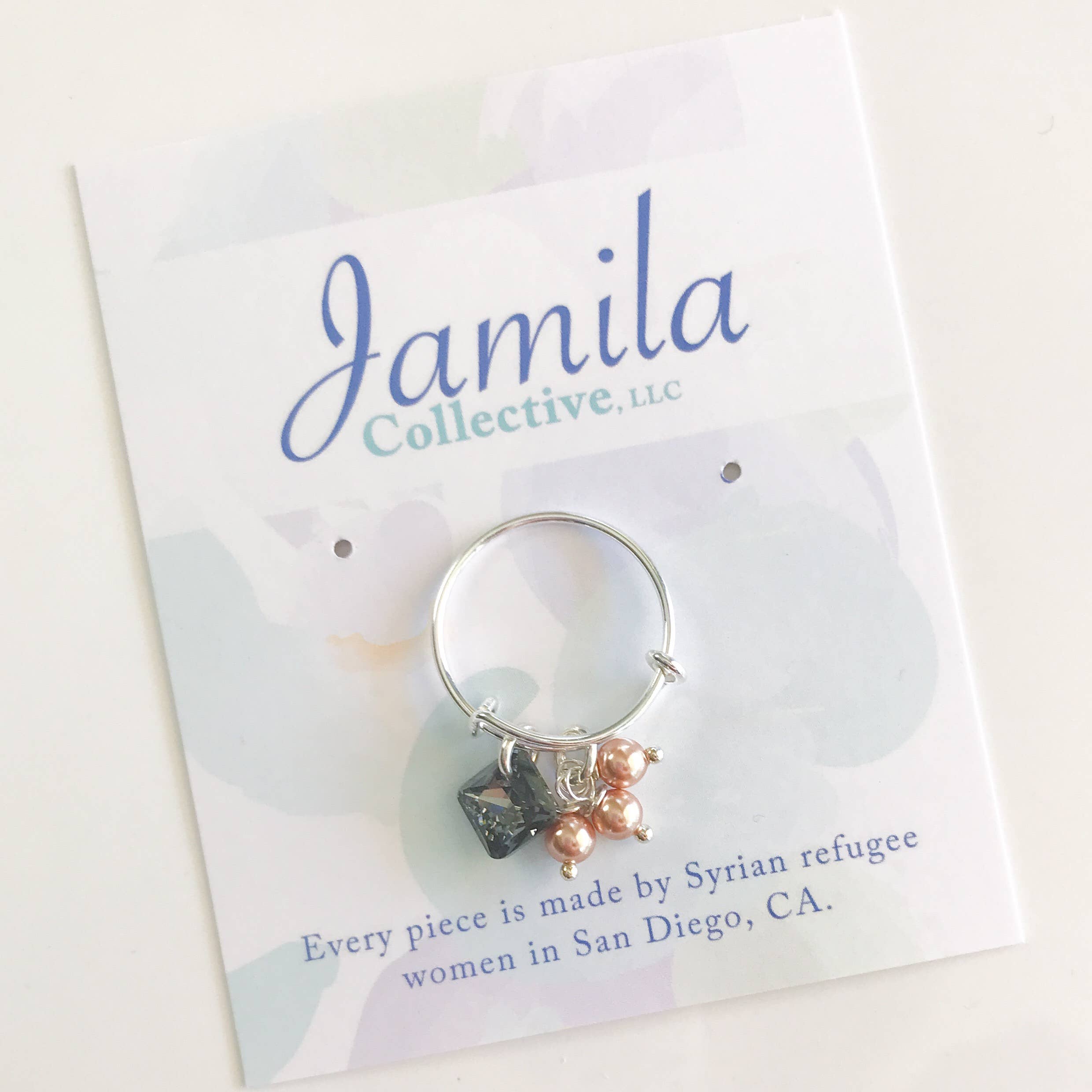 After connecting with the local Syrian refugee community in San Diego in early 2017, designer Megan Reynolds found “her people.” Now, the women in these refugee families need to enter the workforce for the first time. Megan works with these women to develop skills and produce all the jewelry designs for Jamila Collective. It's about more than pretty jewelry. Each of our Swarovski crystal, pearl, sterling silver, and stainless steel designs are timeless, yet modern. The mix of stainless steel and sparkly beads and shiny pearls makes our pieces extra unique! Each piece is named after a Syrian refugee that Megan as met. Each piece is made by one of our four Syrian refugee makers that currently work with us. Each piece comes with a maker card that tells the story of the women who made the piece.