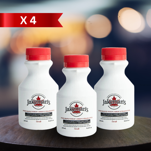 The Jakeman family has been producing our award-winning blend of 100% pure Maple Syrup since 1876. We work closely with farms and rural communities all over Ontario to bring you the freshest, purest, Maple Syrup we can offer. Our hope is that you will enjoy it as much as we enjoy making it! Certified Vegan, Kosher, and Halal, our Grade ‘A’ Amber maple syrup is the perfect balance of flavour: not too light, yet not too dark.