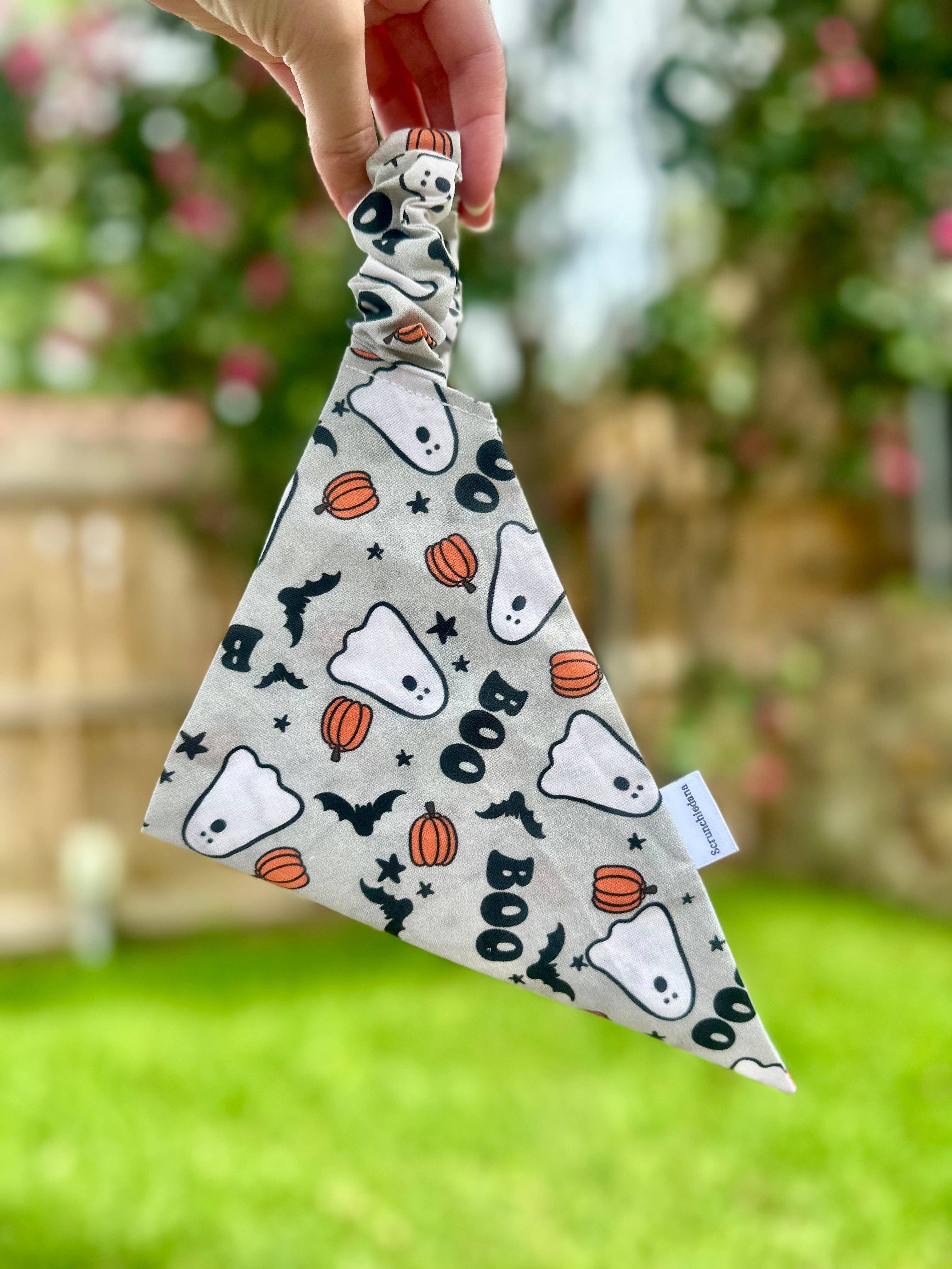Hi Hunny's!! I'm Sarah and I created the Scrunchiedana®! HPP is my fulltime job- you can catch me behind a sewing machine 24/7! Winnie and Hunny are my first babies and I'm also a toddler mom. I started HPP in 2020 out of pure desire to have cute bandana's for Winnie that were fashionable, yet functional. I'm driven by my passion to include my pups in all life's seasons and celebrations, and I love helping other dog mamas do the same! Here at HPP all dogs are family. In 2020 I quit the corporate world and hand stitched my first bandana for my golden, Winnie, just for fun. I enjoyed it so much that my husband surprised me with a sewing machine. From there I spent 3 months designing the first Scrunchiedana® prototypes before I began selling on Etsy. I created this scrunchie style because the tie-on bandanas always fell off and the over the collar bandanas were too much of a hassle for me. I wanted something that would be more functional and easier to use while simultaneously comfortable and cute for Winnie. The Scrunchiedana® is made with elastic that makes it super easy to slip on and off your pups head. No collar or tying needed, and they don't bunch up or fall off. Our goal is to help your pup feel included throughout ever season of life with a cute, yet functional, Scrunchiedana®.