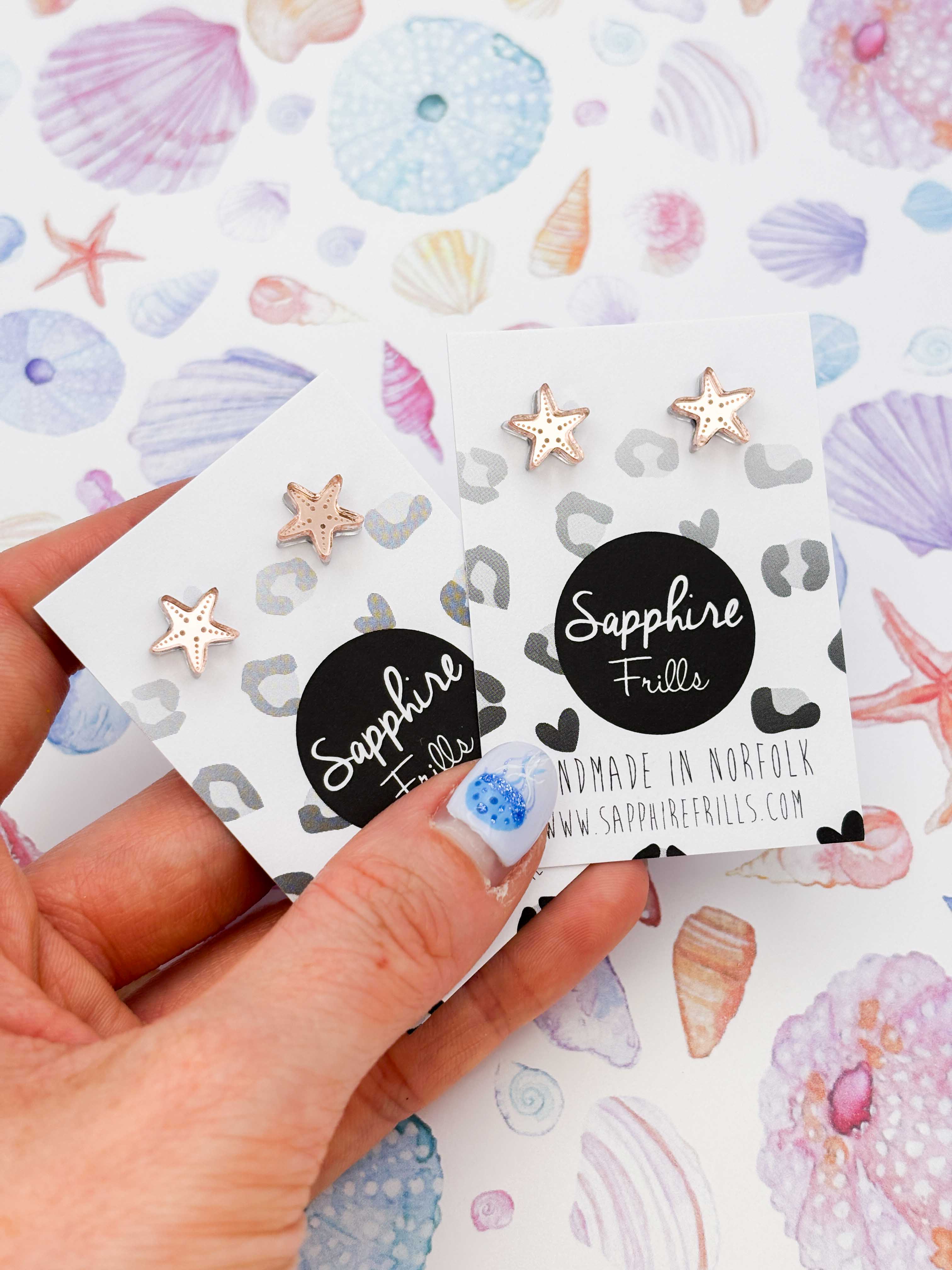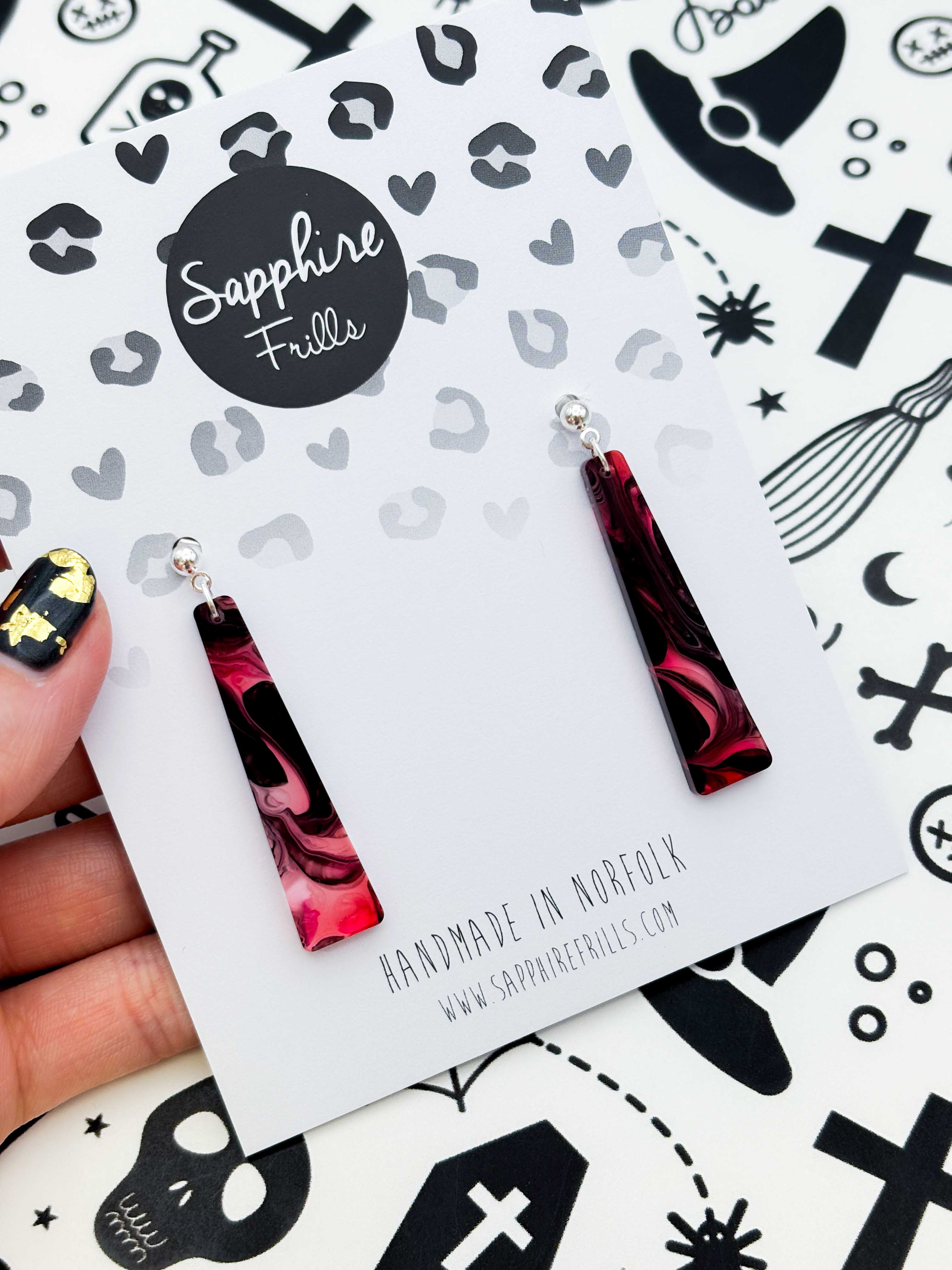 Sapphire Frills is a colourful, independent jewellery brand based in Norfolk, creating bold, playful and handmade pieces that celebrate personality, joy and self-expression. All of our designs are hand-drawn in-house at our HQ in Norfolk, and each item is handmade using high-quality acrylic. We craft statement earrings, everyday studs, and unique necklaces; all produced in small batches with love, care, and attention to detail. Every piece is finished with stainless steel backs that are hypoallergenic, nickel-free, tarnish resistant and water resistant, making our jewellery accessible and comfortable for everyone; even those with sensitive ears. From bold shapes to joyful colour combos, Sapphire Frills is all about making fun, wearable jewellery that helps you feel confident and seen. Whether you’re dressing up or keeping it casual, we believe your jewellery should bring a little spark of happiness to your day.