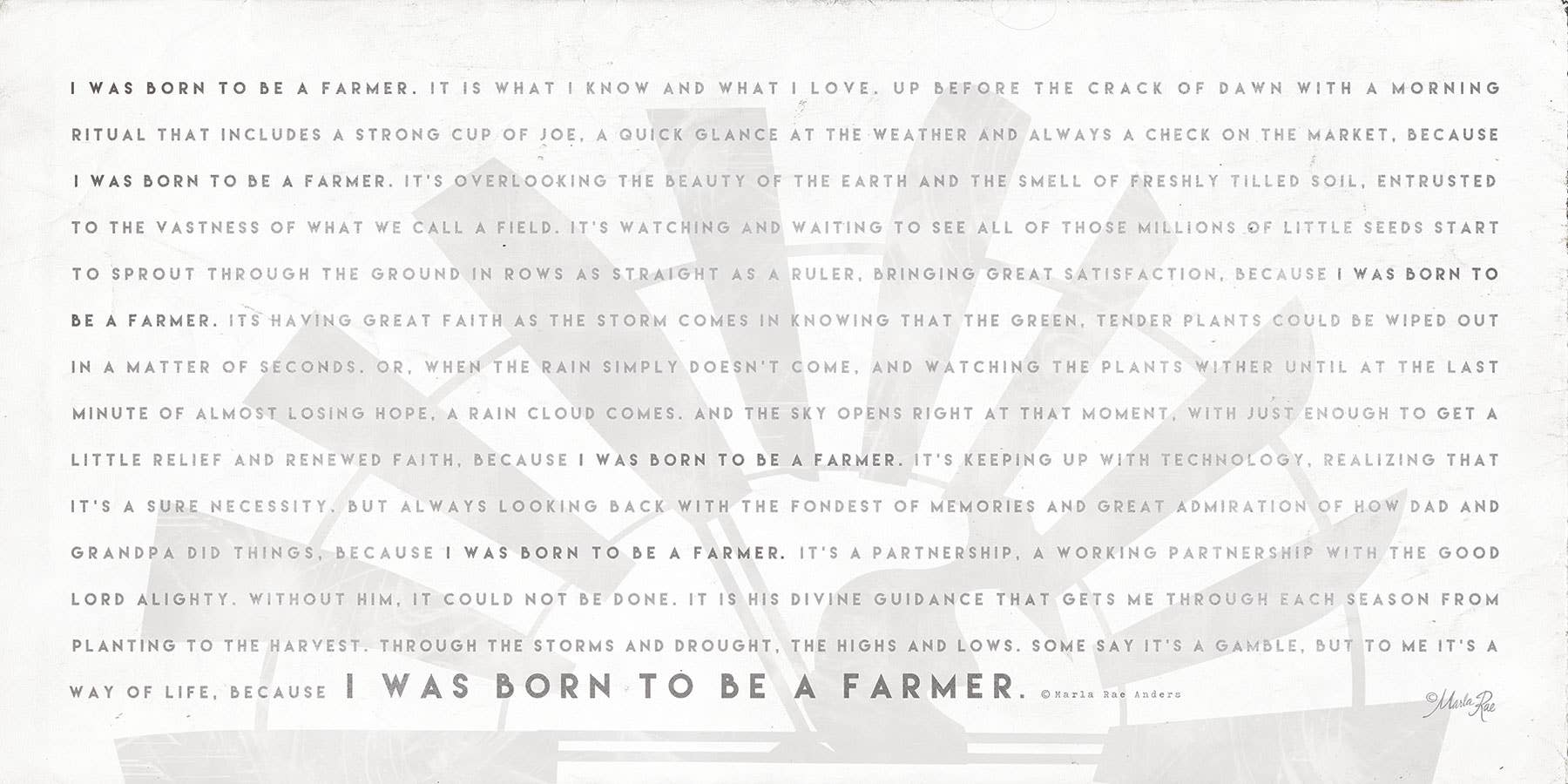 Artist Marla Rae has enjoyed being a full-time artist for many years. Marla and her husband and best friend, Brian, founded the Barn Festival over 25 years ago. The festival is on the grounds of her current home…a home that happens to be the upper two levels of a 1930 Sears and Roebucks Barn. The festival provides an opportunity for fellow artisans from across the country to sell their wares. Tens of thousands of customers spend a unique and refreshing time in the open-air country setting that the Barn events provide each year. In the fall of 2018, Marla’s life was changed forever when her husband was diagnosed with cancer. With Marla by his side at all times, Brian fought a hard battle, yet to no avail. Brian passed away in March of 2020. As Marla looks toward the future, her passion is to live life to its fullest, whatever that might look like. She immensely enjoys using her God given gift of creativity, and she prays that she continues to have the opportunity more than ever in this new chapter of her life.