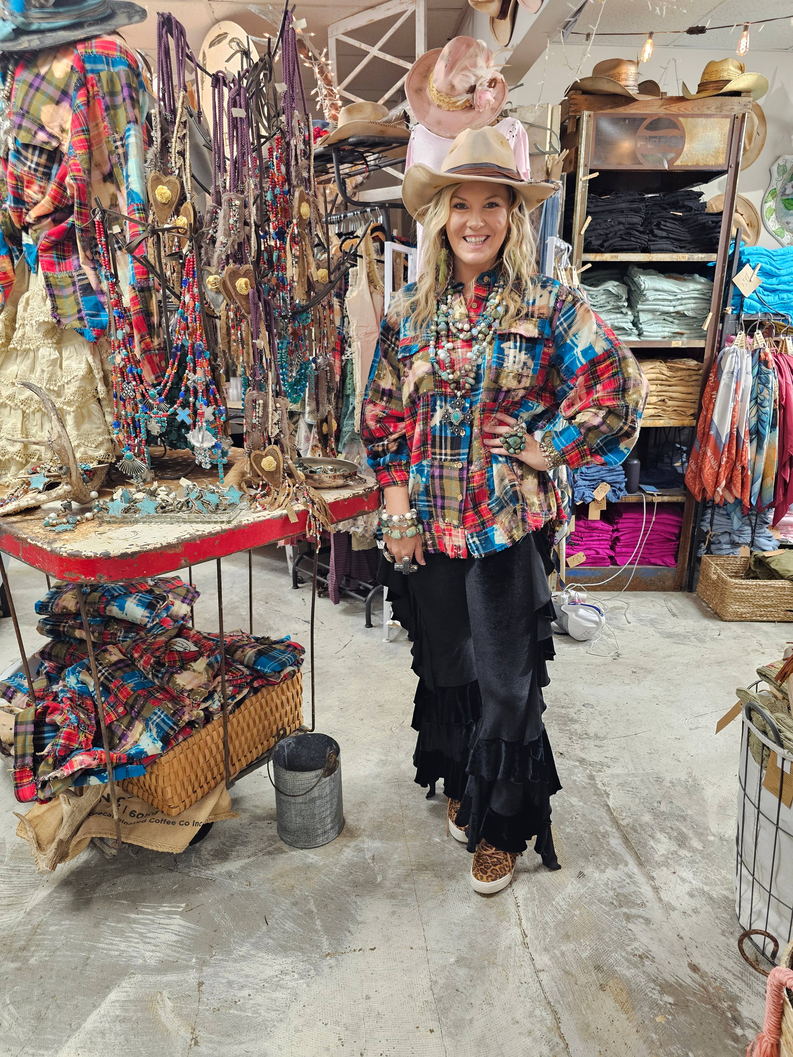 A Rare Bird Shop is just that....RARE! Our unique, one-of-a-kind pieces are all lovingly handmade with a whole lot of heart and a heap of spunk! Lisa began A Rare Bird Shop with a little bit of pocket money and a huge desire to share her crazy ideas with the world! With a mind for creating wearable art and a love for the unexpected, each piece is made in her home state of Texas by us for YOU! Welcome to a world where luxury and wearability meet with eye catching detail, a touch of Southern flair, and a ton of fun! Welcome to A Rare Bird, the ideal "feather" for any one's cap! ***Due to the nature of the wash process and the hand-made designs of each garment and jewelry piece, every item will have a unique appearance.***
