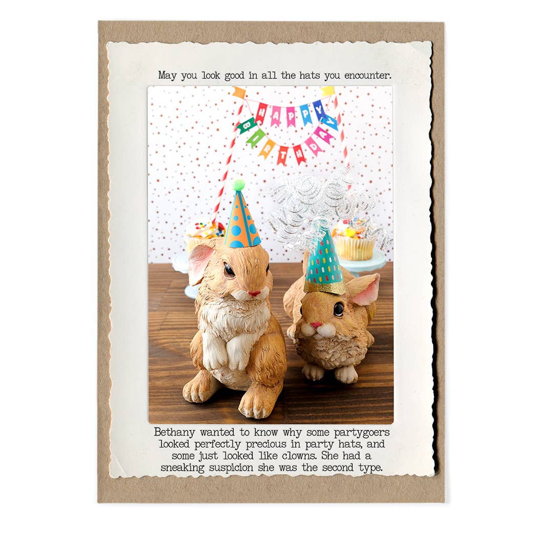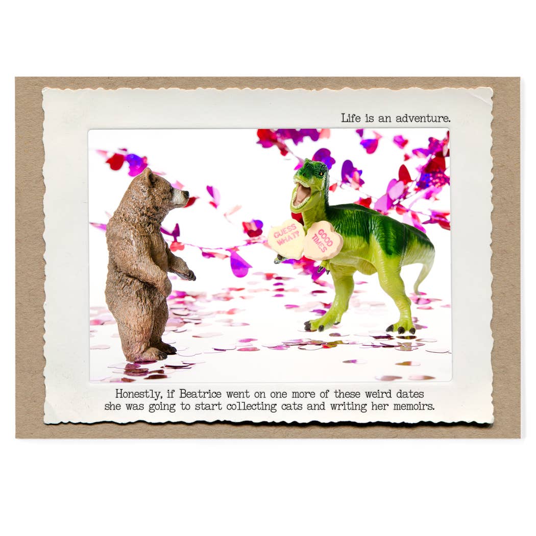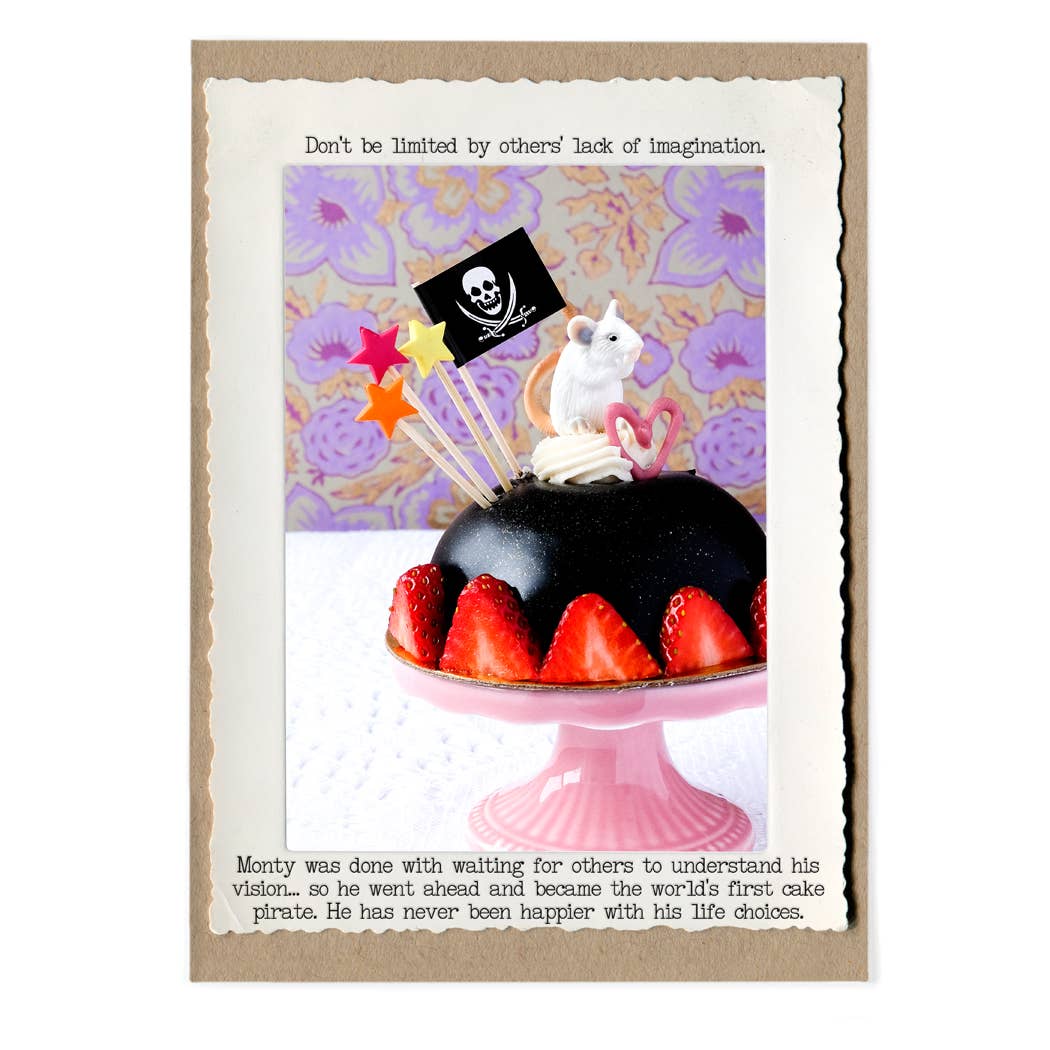 Welcome to the wonderful world of the Animal Tales: a line of greeting cards that celebrate and commiserate life’s lessons with a healthy dose of humor, wit, & snark. Each Animal Tale is written and photographed by me, Jamie Redmond (Hi!), in my Upstate NY studio. My love of stories, animals, and cake continues to fuel the ever-growing Animal Tales line. I love creating memorable, everyday greeting cards that focus on humorous empathy to give people an excuse to reach out and share a laugh.