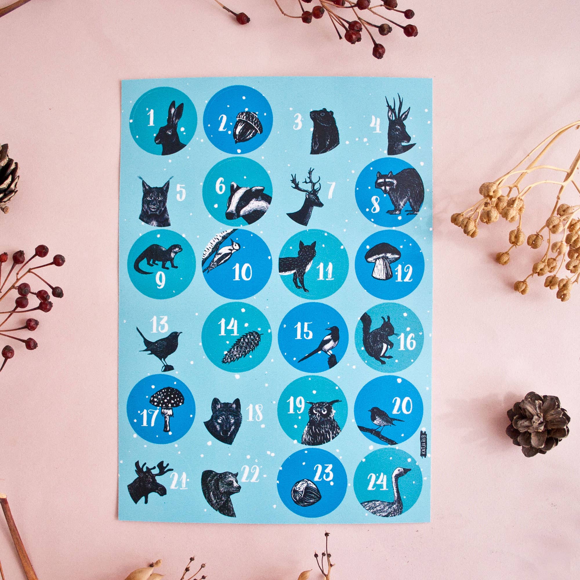 Eagles, bears, chameleons, badgers, elephants ... – the entire diversity of animals can be seen in the illustrations by Katja Rub. Scratched on scratchboard and colored on the computer, the numerous representatives of the animal world can be found on postcards, posters, calendars, and other stationery items. Great importance is placed on climate-neutral production and the most environmentally friendly packaging materials possible during the printing and shipping of the products. All products are printed in Germany.