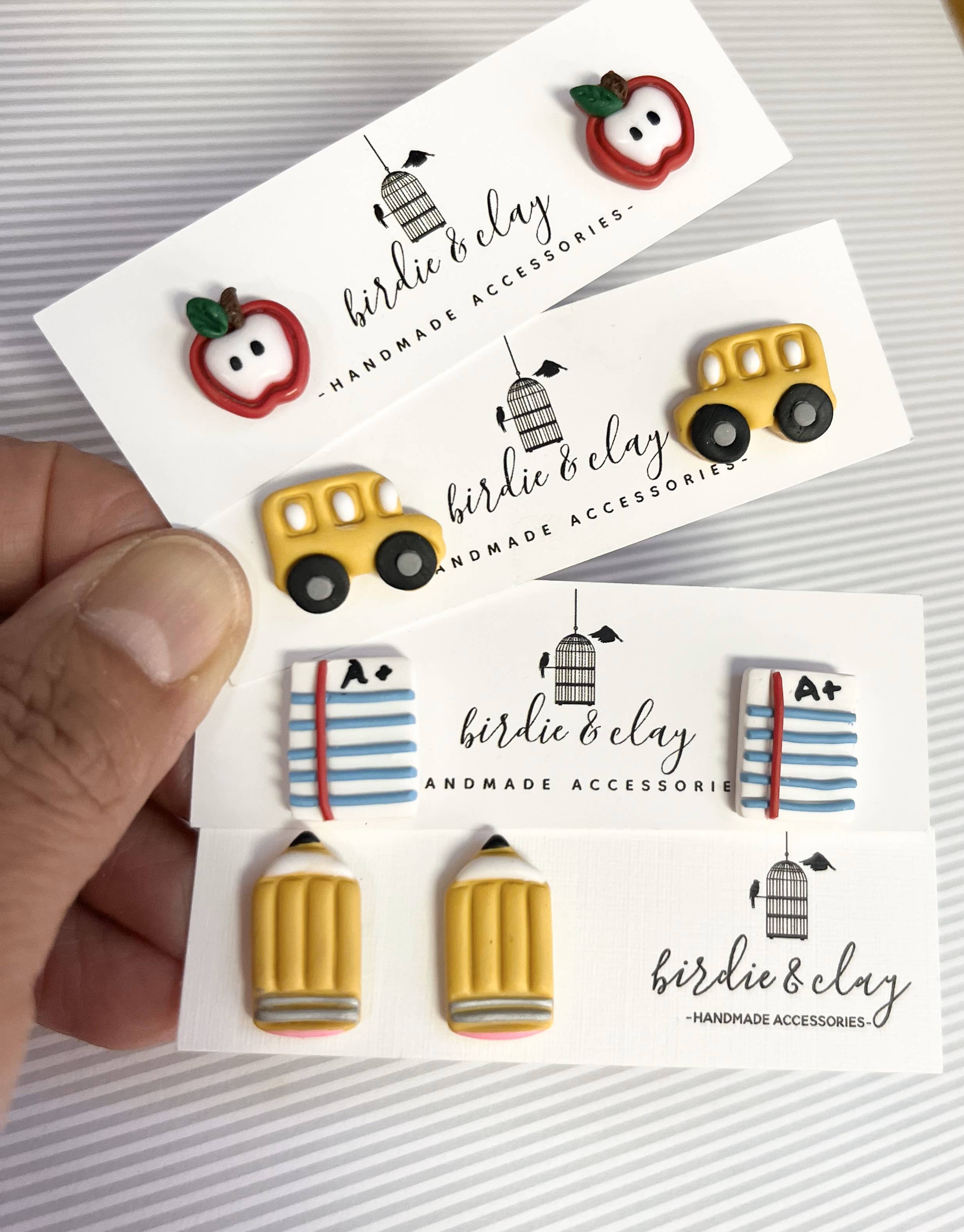 Birdie & Clay is an artist brand of handmade polymer clay earrings based out of San Antonio, Texas. What you will see is the passion and love for clay making poured into every single piece. Each pair of earrings is carefully handcrafted, showcasing the very unique details and/or vibrant colors that make them truly one of a kind. Thank you for considering our creations for your shop.