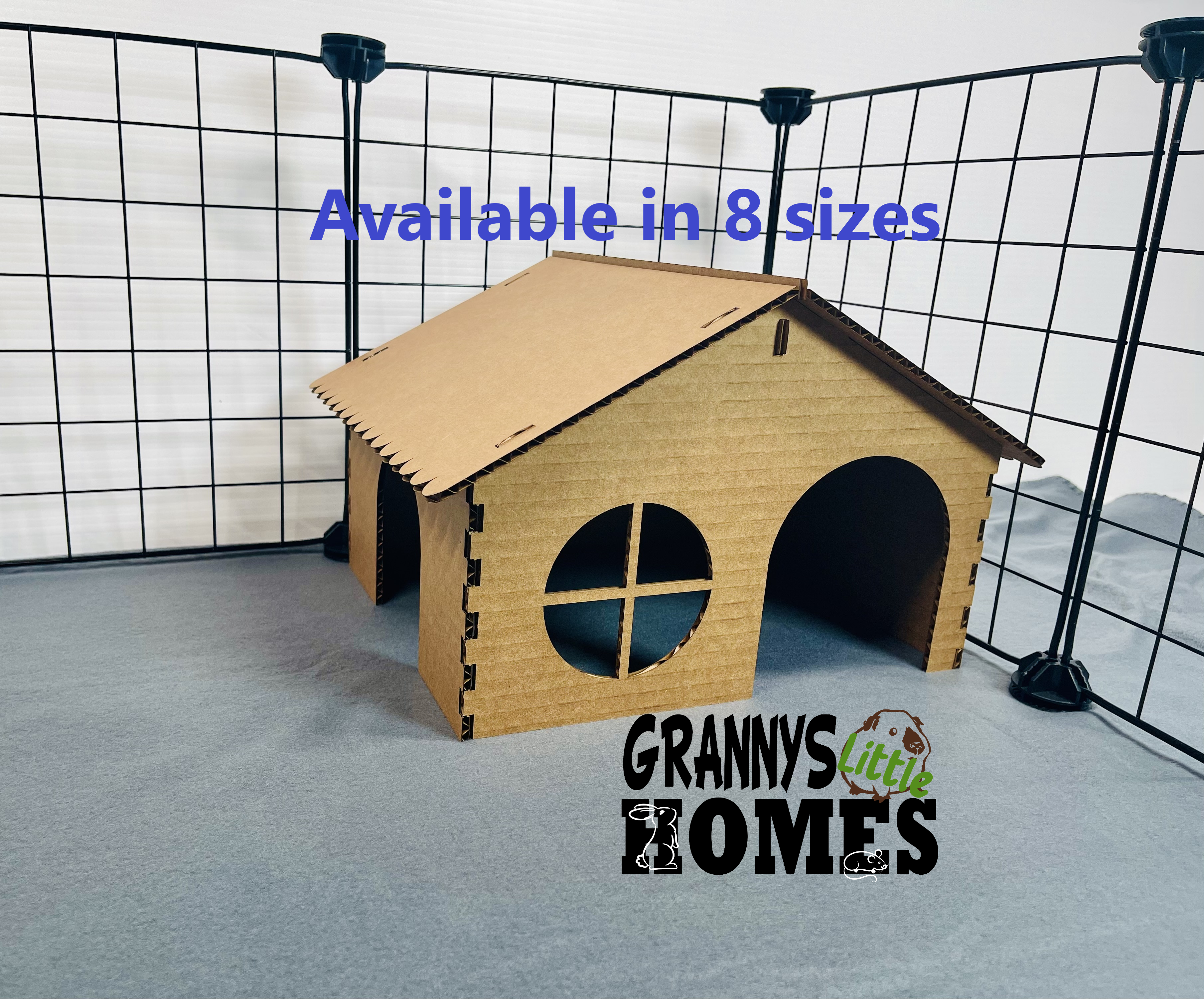 At Grannys Little Homes, we believe that every pet deserves a space to that they are both cozy comfortable and safe. Our story started with a simple observation: Small pets, like rabbits, guinea pigs, hamsters and so many other small pets deserve more then just a cage they deserve to feel secure and safe. We started our pet journey like so many others with a door cut into a cardboard shipping box. But there where so many questions that we couldn't answer: Is there any tape or stickers that could be harmful on the box? What type of product was in the box? What kind of warehouse was the box in? Any chance that another animal that could carry a disease was around the box? How many hands have handle this box? These worries along with being unable to locate a house that had two doors for our male guinea pigs started everything for us. Our homes are designed with creativity and care, offering a variety of shapes, sizes, and themes to match your pet's personality or the holiday season. From fun tunnels to cozy cabins, each home sparks joy for both the pet who lives in them and for the pet parent that cards for them.