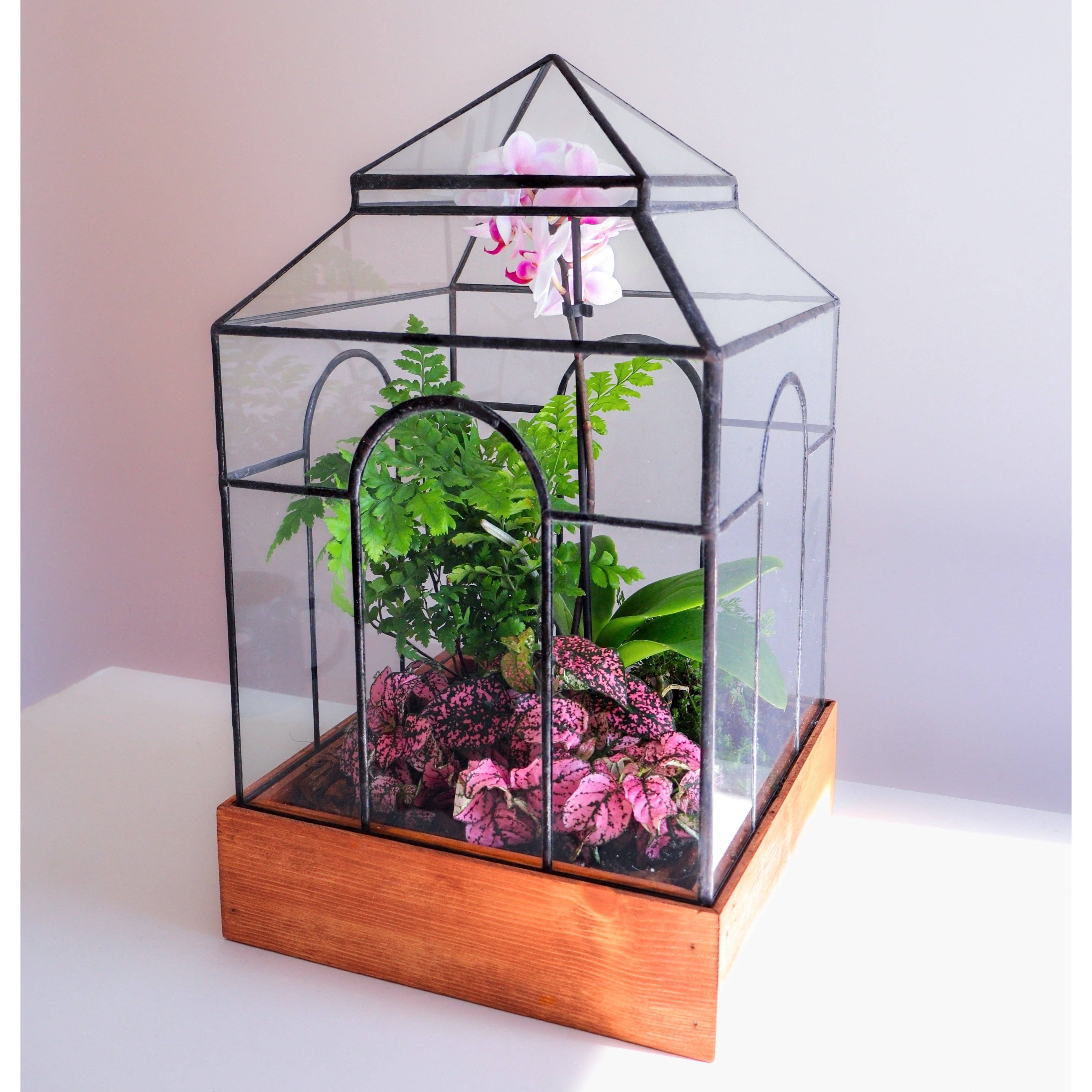 October 12-19 5% off orders over $250 Two free mini terrariums for orders over $500 Lead Head Glass terrariums are handcrafted out of reclaimed glass from deconstructed homes in Detroit. We model our terrariums after 19th century Wardian Cases, with an updated design. The Wardian case was originally used to transport exotic plants around the globe, and is an ideal environment to raise your own miniature garden in. Every Lead Head Glass Terrarium is made to order,and as unique as the glass it comes from. We only use responsibly sourced materials from hand deconstructed homes.