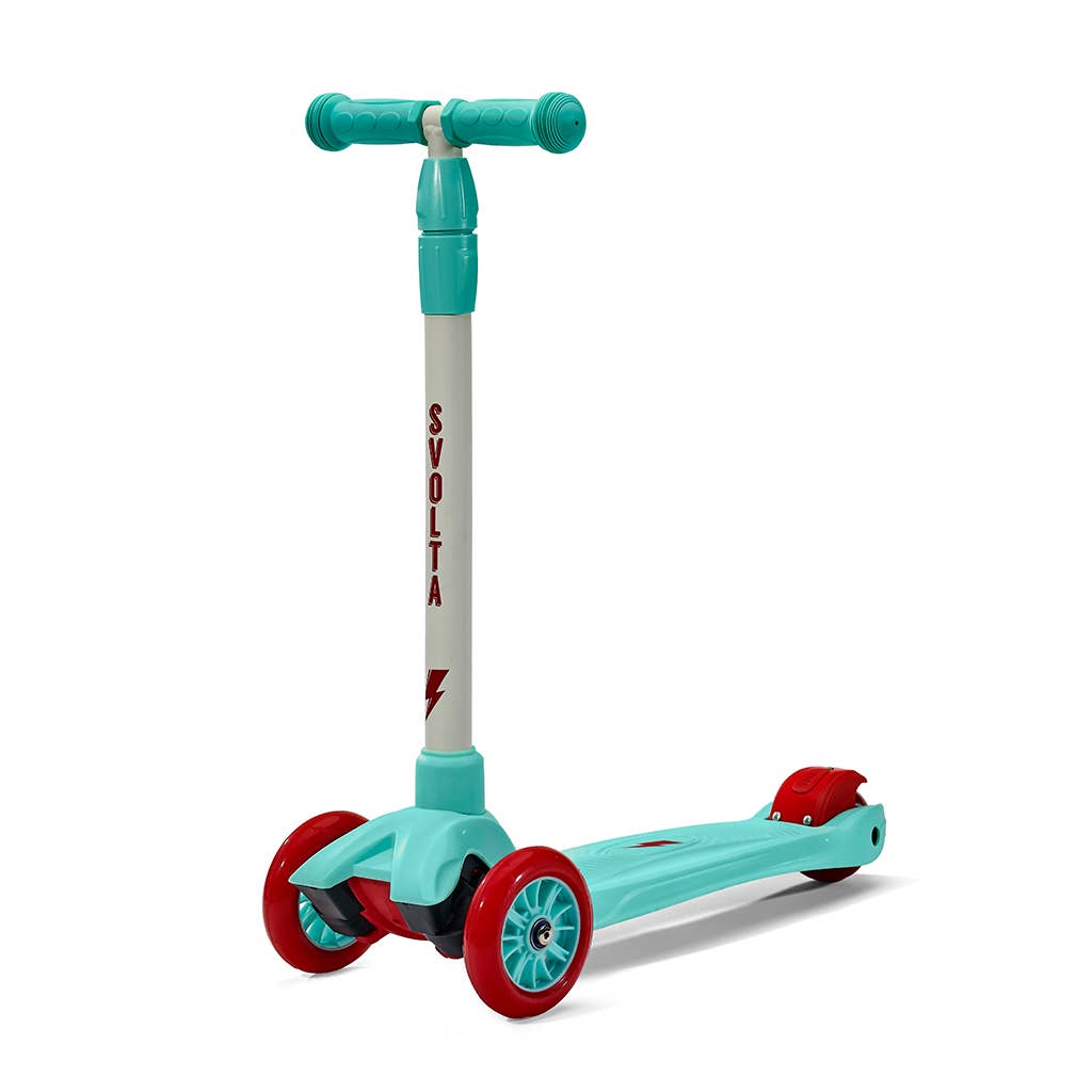 SVOLTA - style-centric kids scooters in gender neutral colors When designing SVOLTA scooters, we essentially made scooters we (adults) wanted to ride, but in kid sizes. We opted for premium materials, so the construction is solid and sturdy. The scooters ride smoothly and have a variety of added style details like matte satin finishes, champagne gold accents and lightning bolt patterns. We have different scooters for little ones (Ace, the 2-in-1 sit and stand convertible), toddlers+ (Mega, 3-wheel scooter) and bigger kids (Legend, 2-wheel kick scooter).